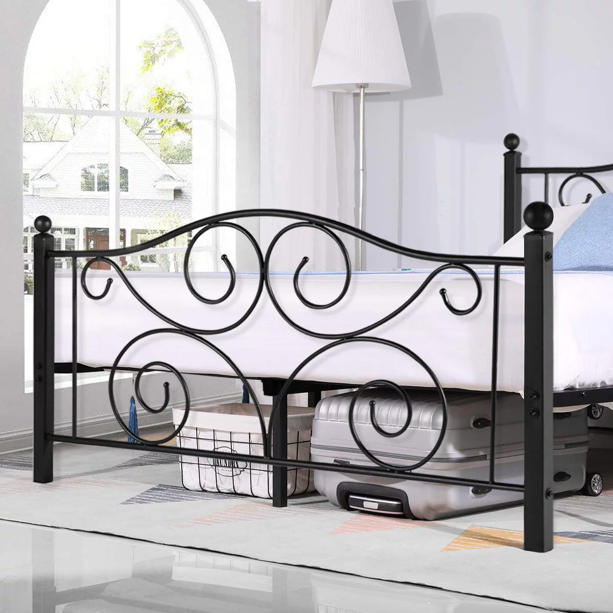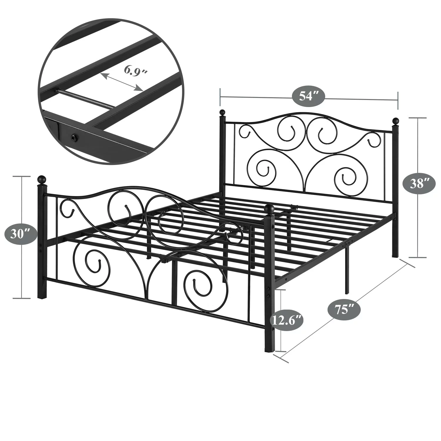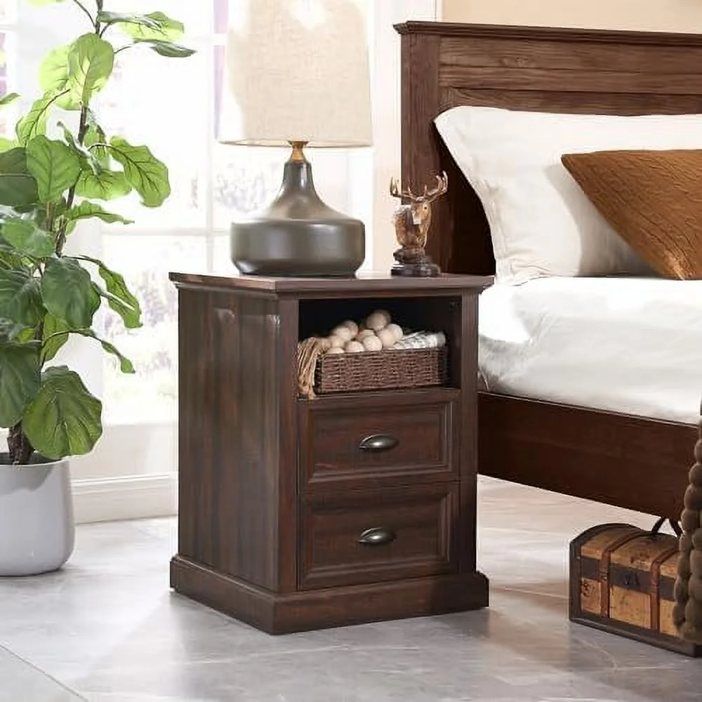 VECELO 3-Piece Bedroom Set, Full Size Metal Bed Frame and 2 Black Nightstand