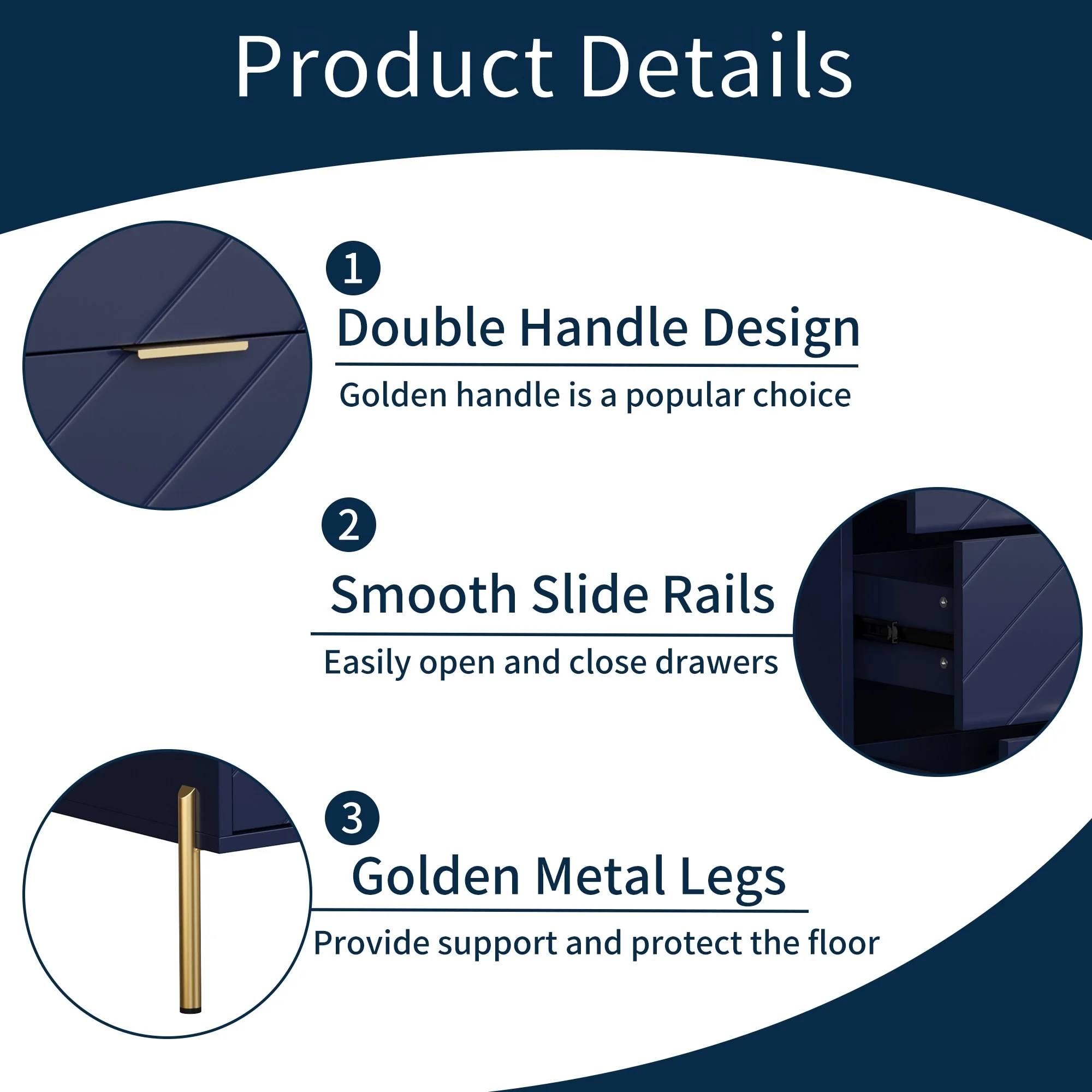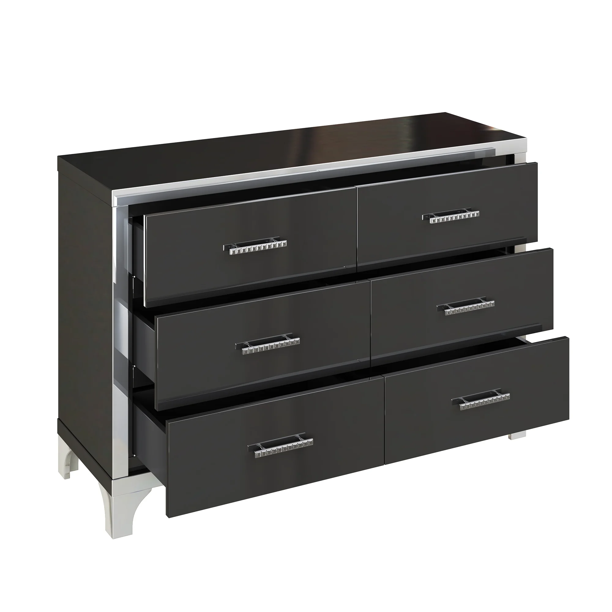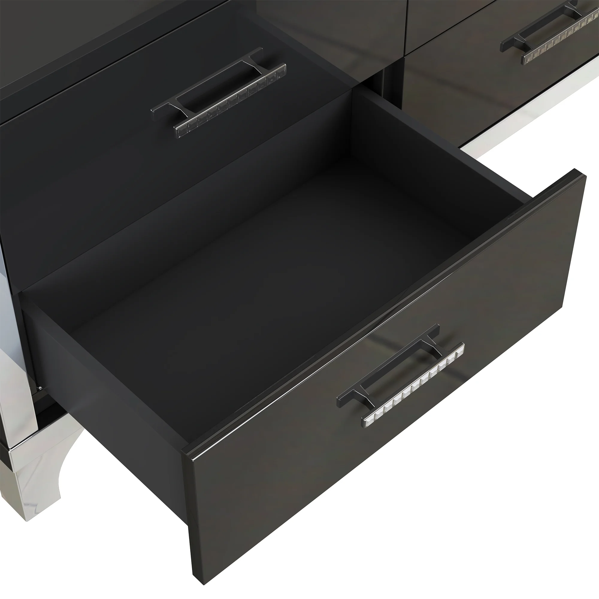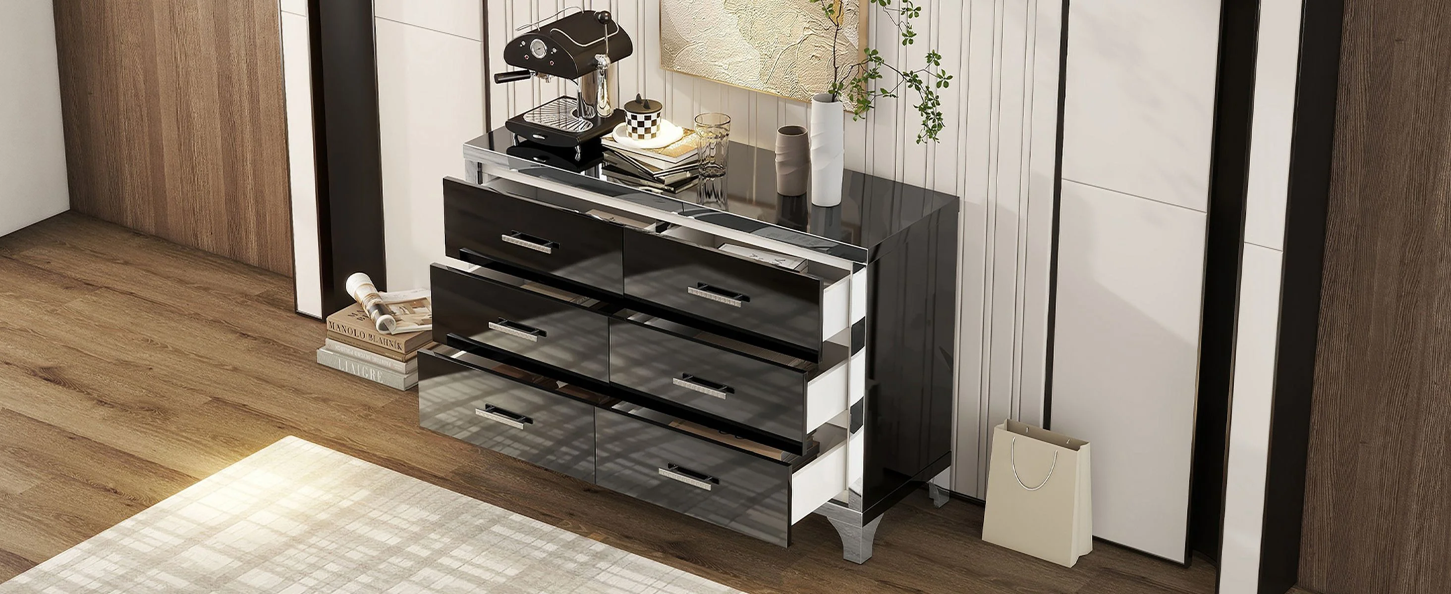 Elegant High Gloss Dresser with Metal Handle,Mirrored Storage Cabinet with 6 Drawers for Bedroom,Living Room,White