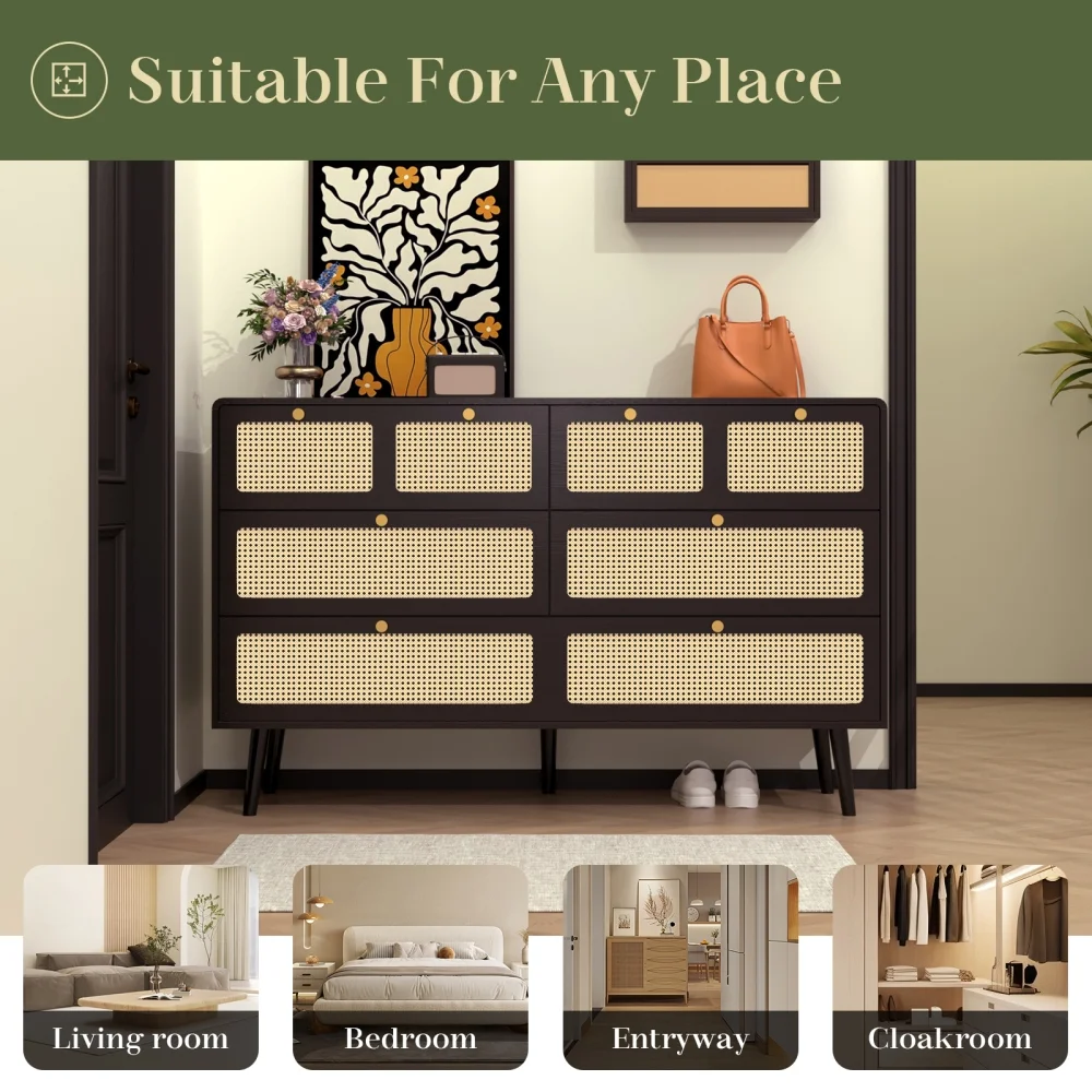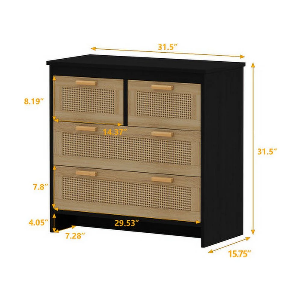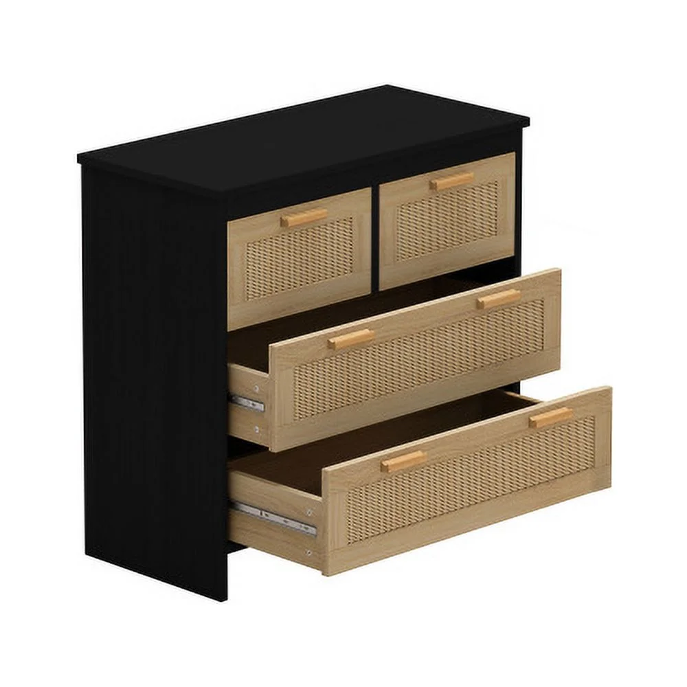 4 Drawers Rattan Cabinet,for Bedroom,Living Room,Dining Room,Hallways,Easy Assembly, Black