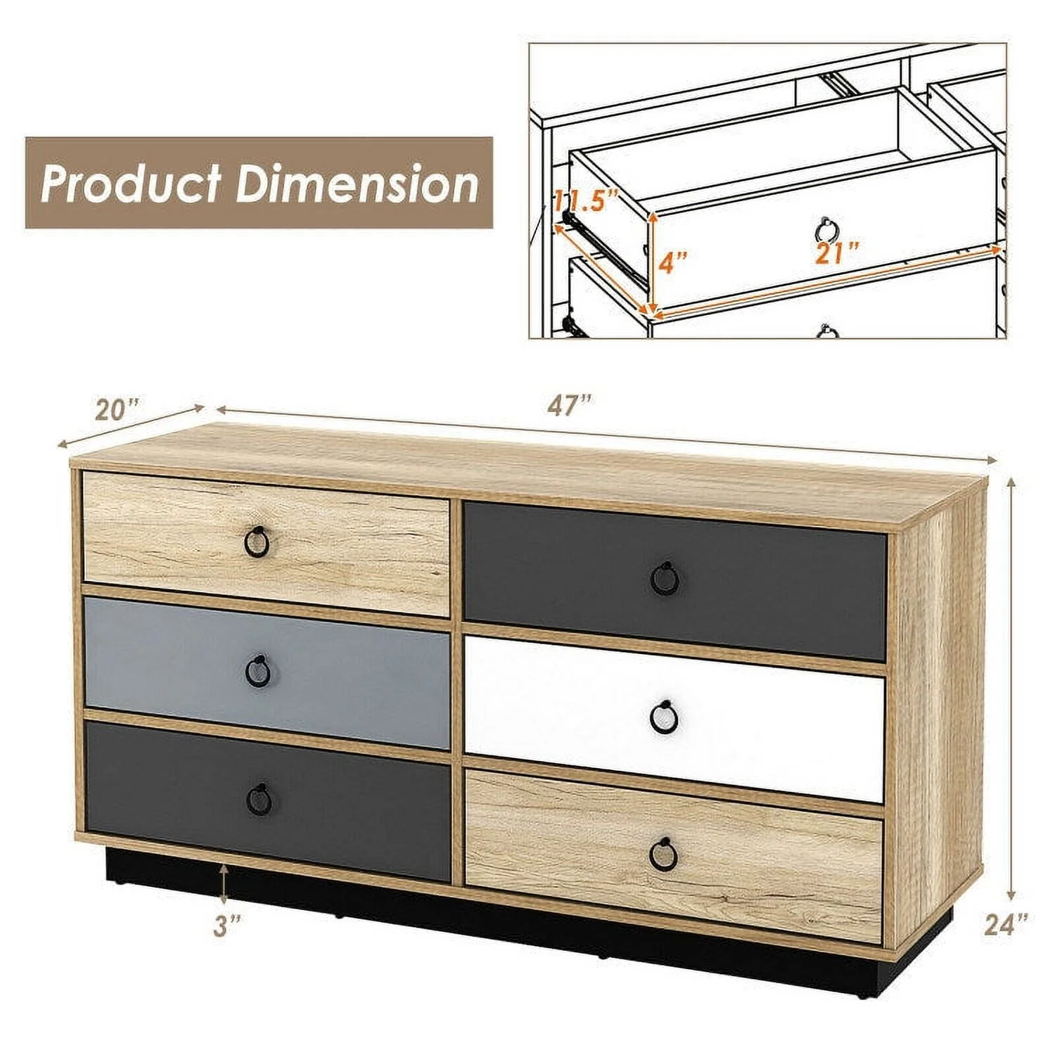 6 Drawers Double Dresser Accent Storage Tower for Bedroom Hallway Entryway