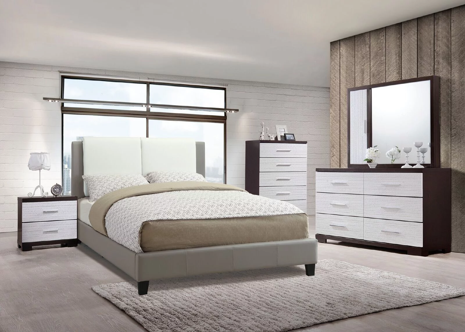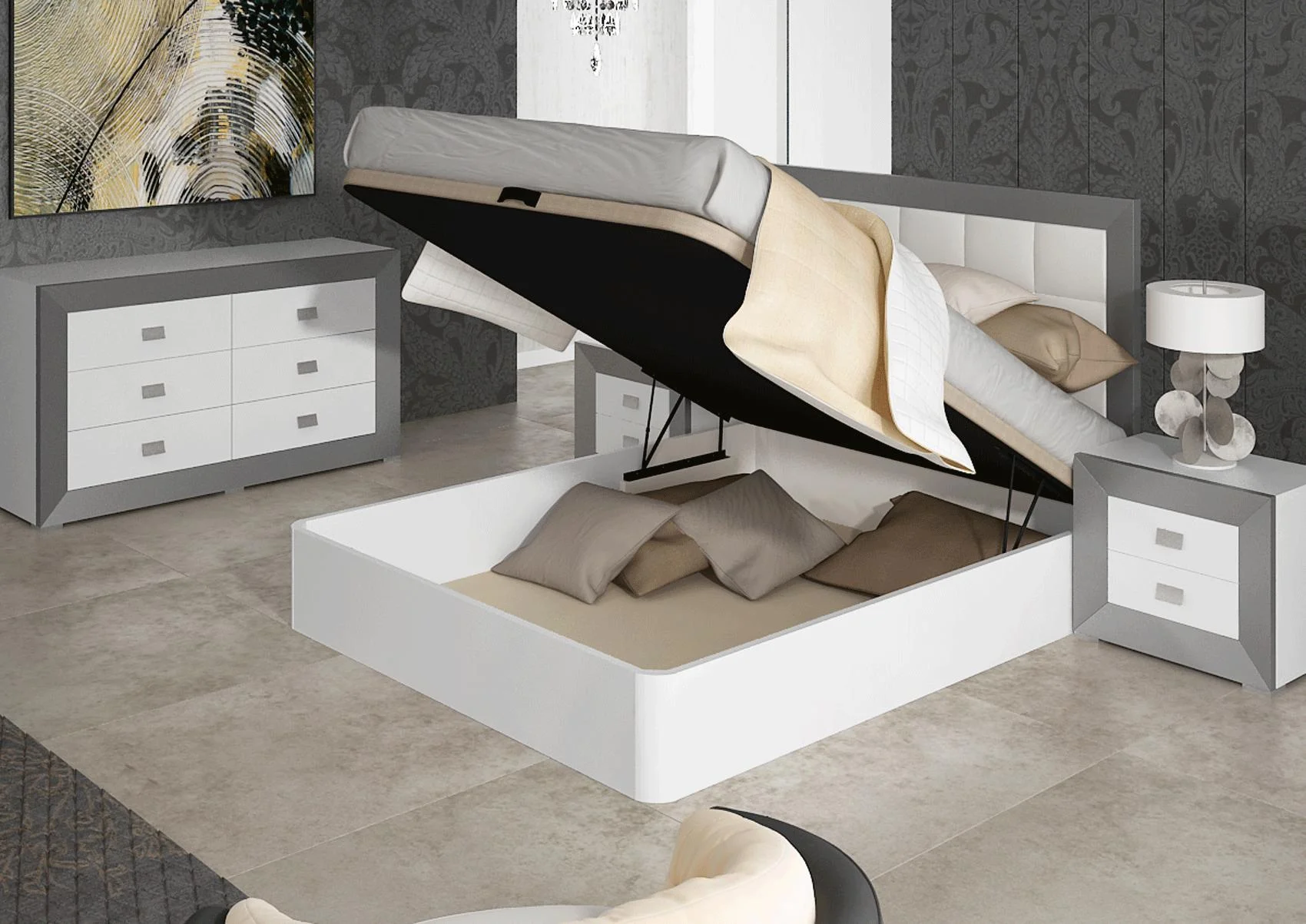 Silver & White Eco Leather Full Storage Bedroom Set 4Pcs Margo ESF MADE IN SPAIN