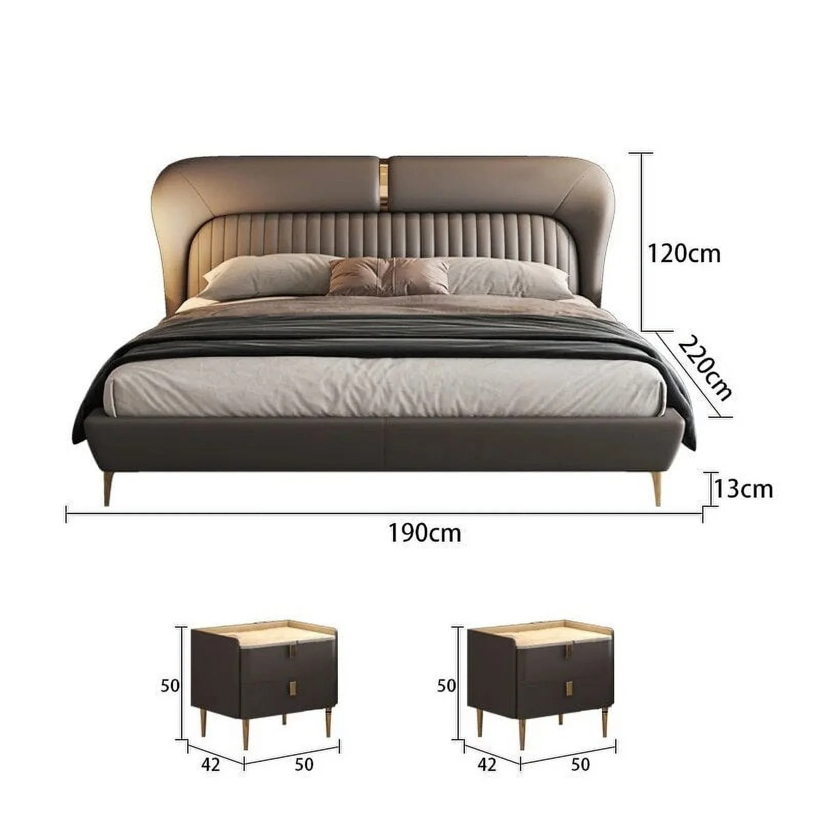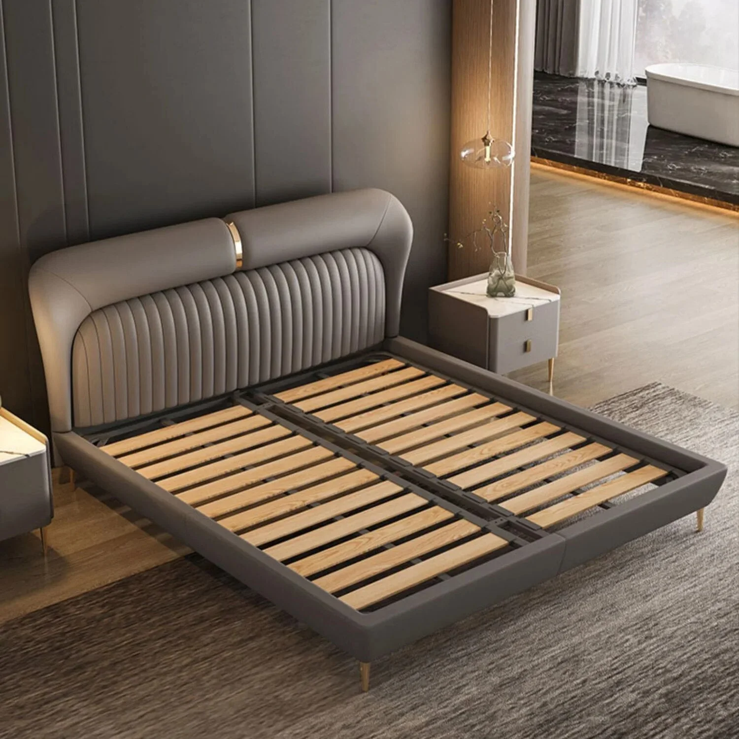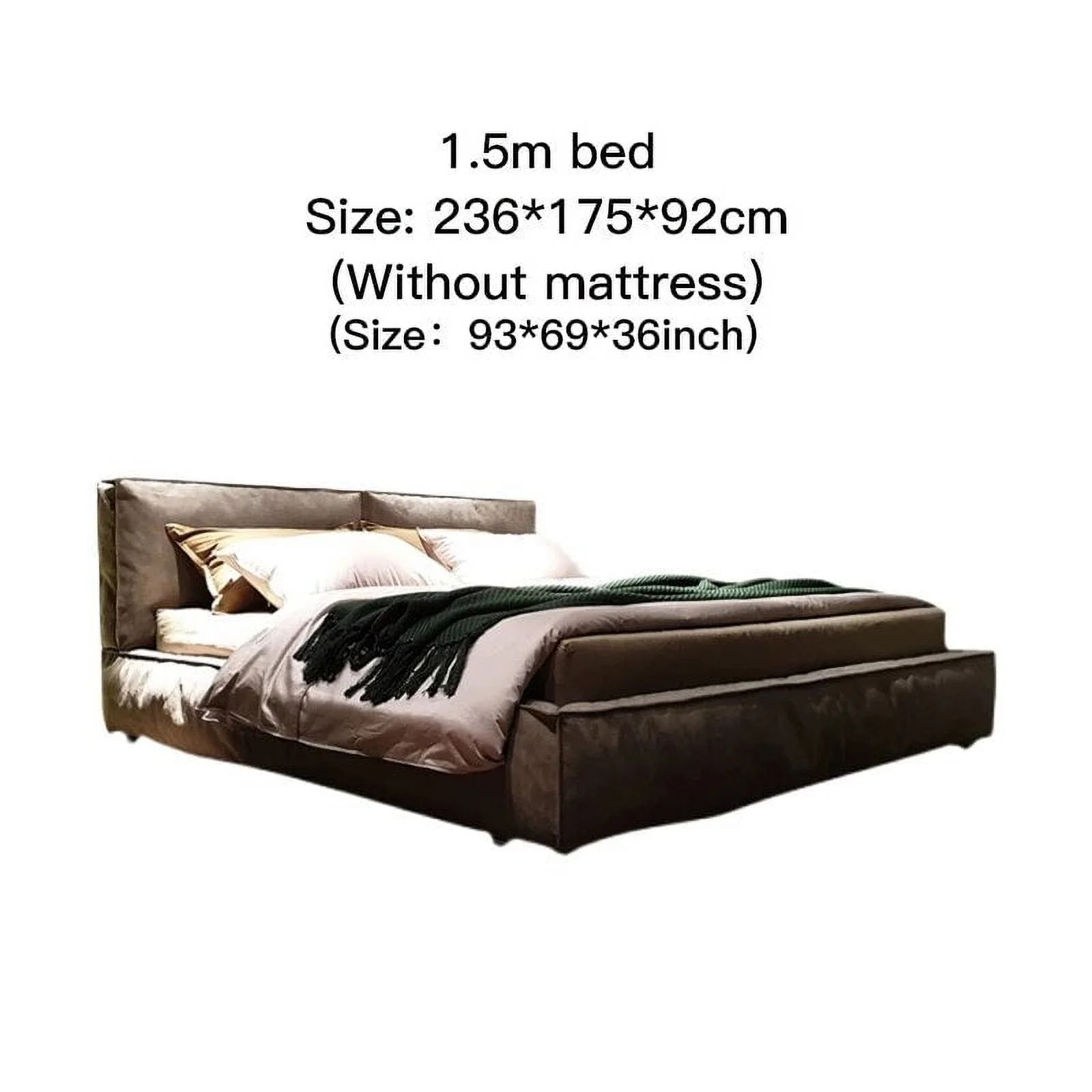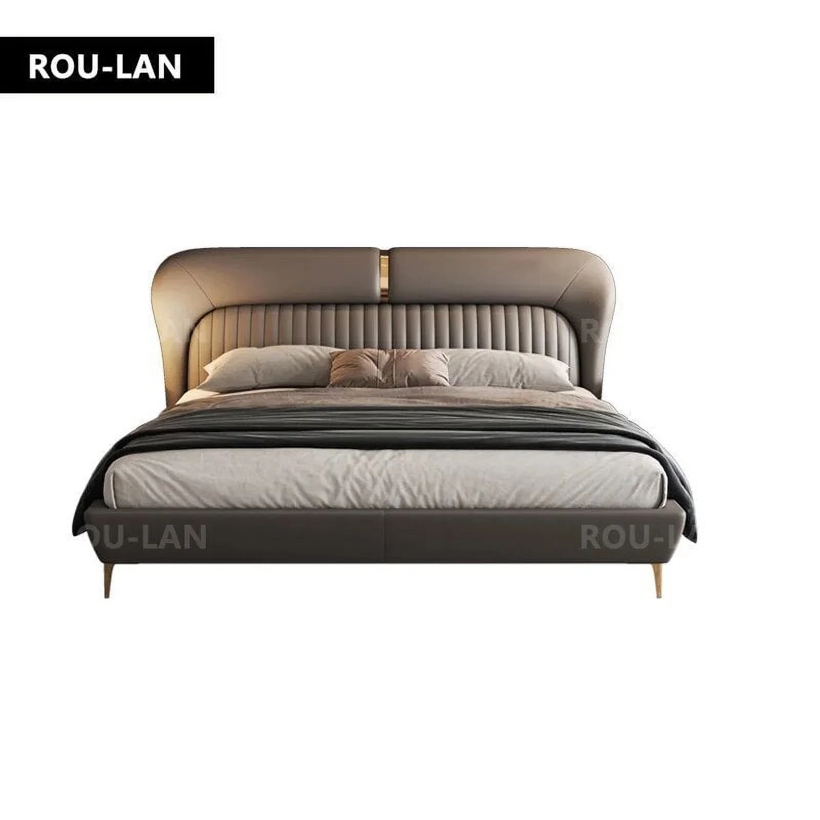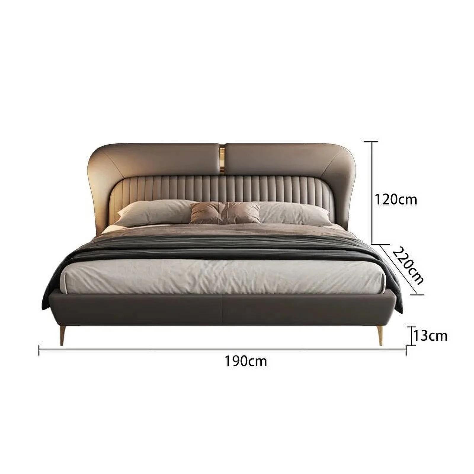 MANBAS Elegant Soft Double Bed Frame with Genuine Leather Headboard Contemporary Upholstered Bed Bedroom Furniture Dormitorio