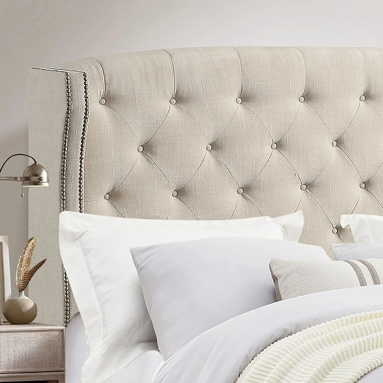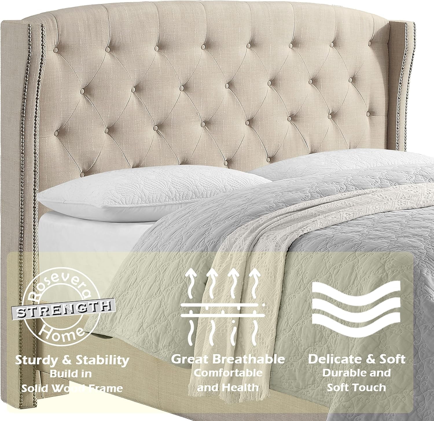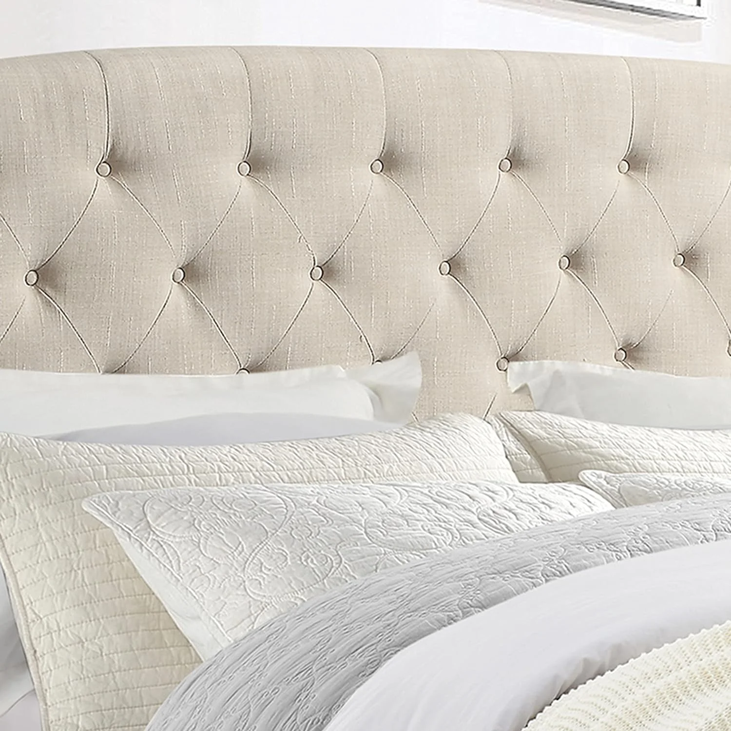 1pc Queen Size Bed White Faux Leather Upholstered Headboard Bedroom Furniture