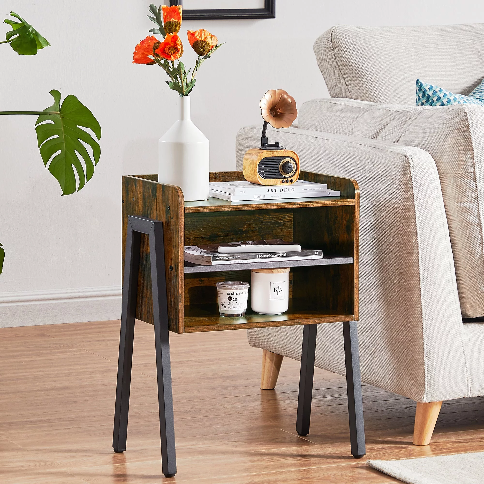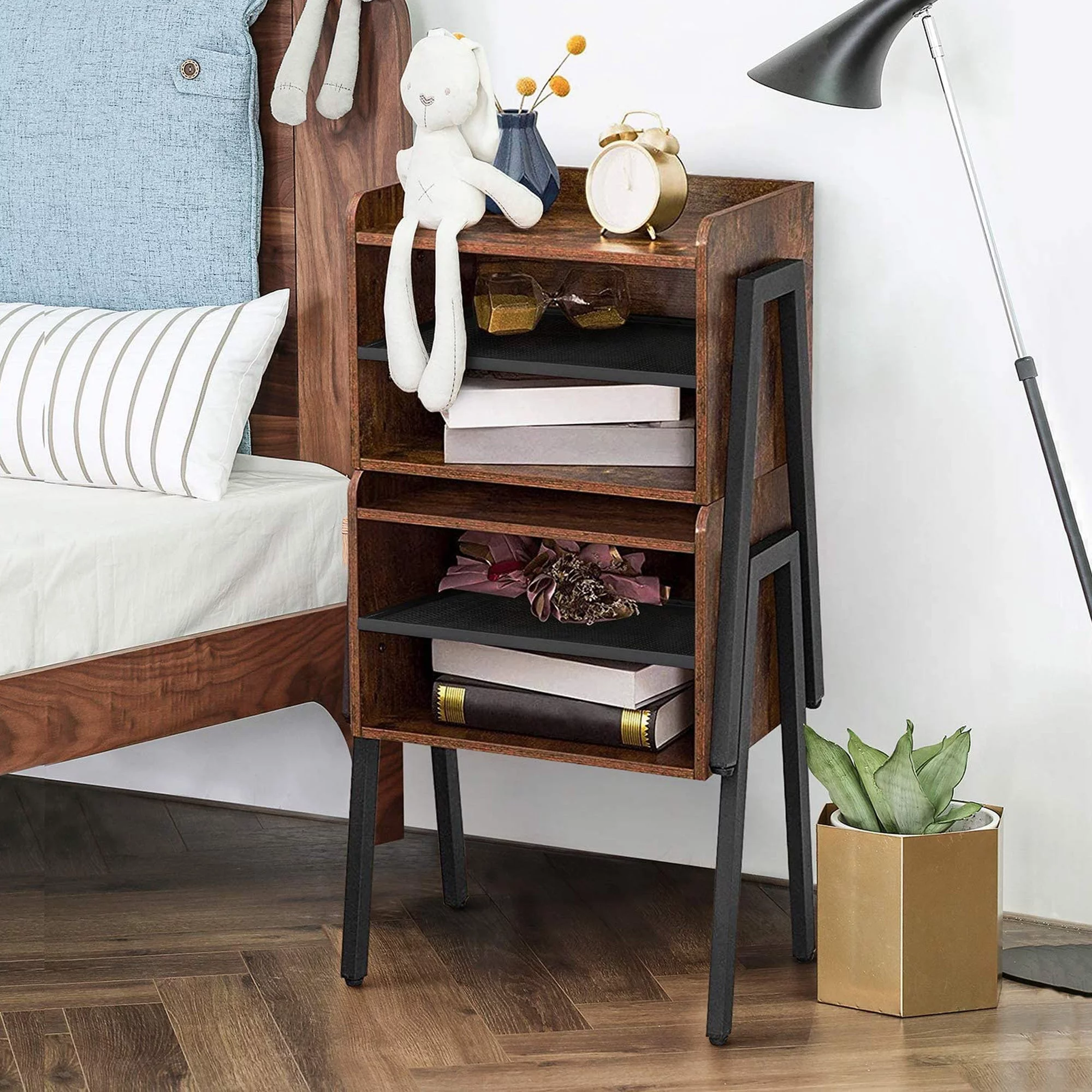 VECELO 3-piece Bedroom Set Full Size Metal Platform Bed Frame and 2 Stackable Nightstand