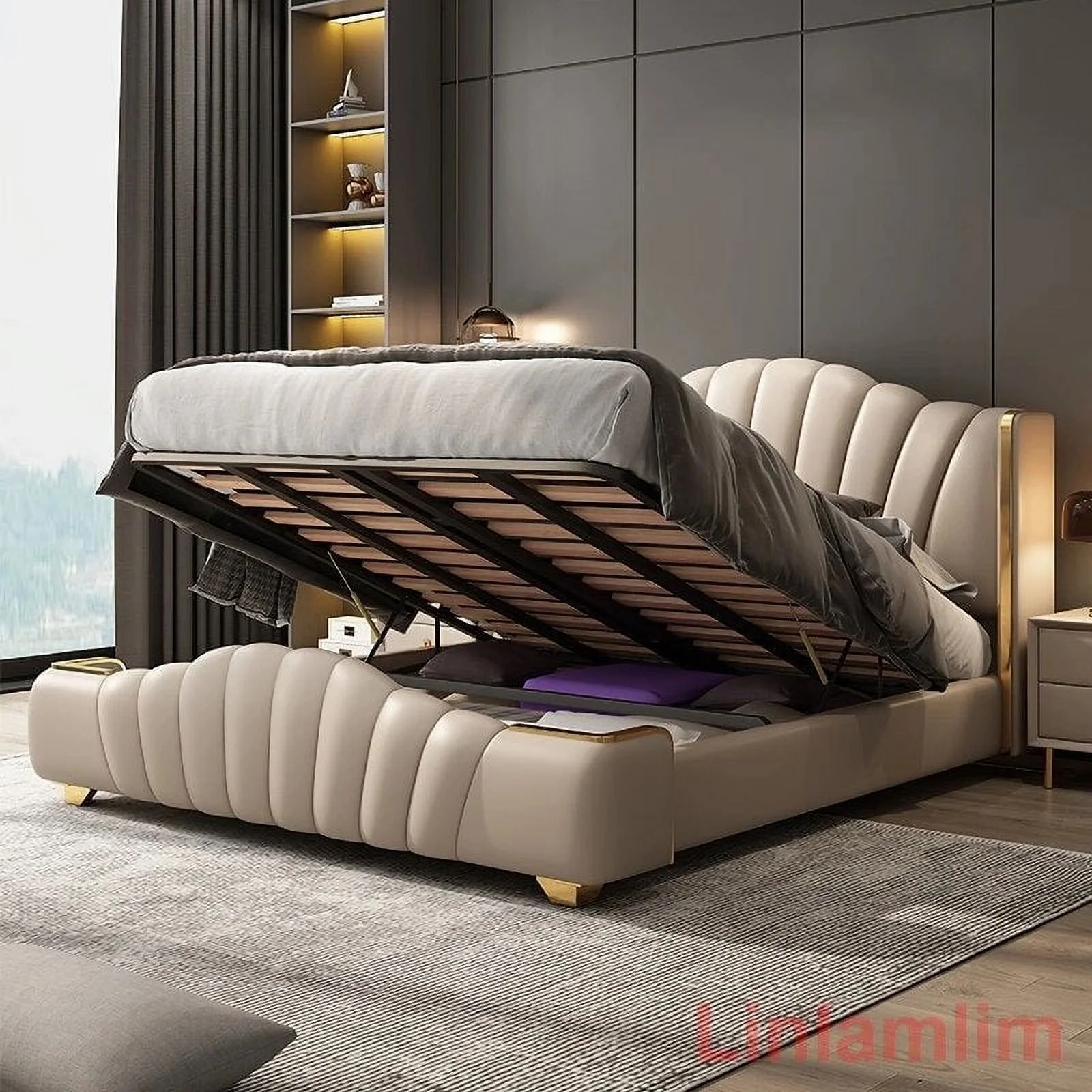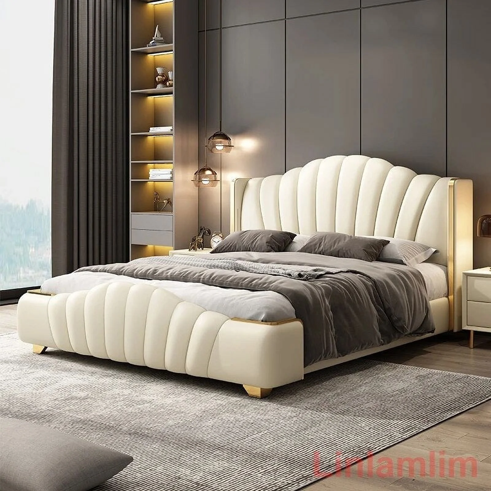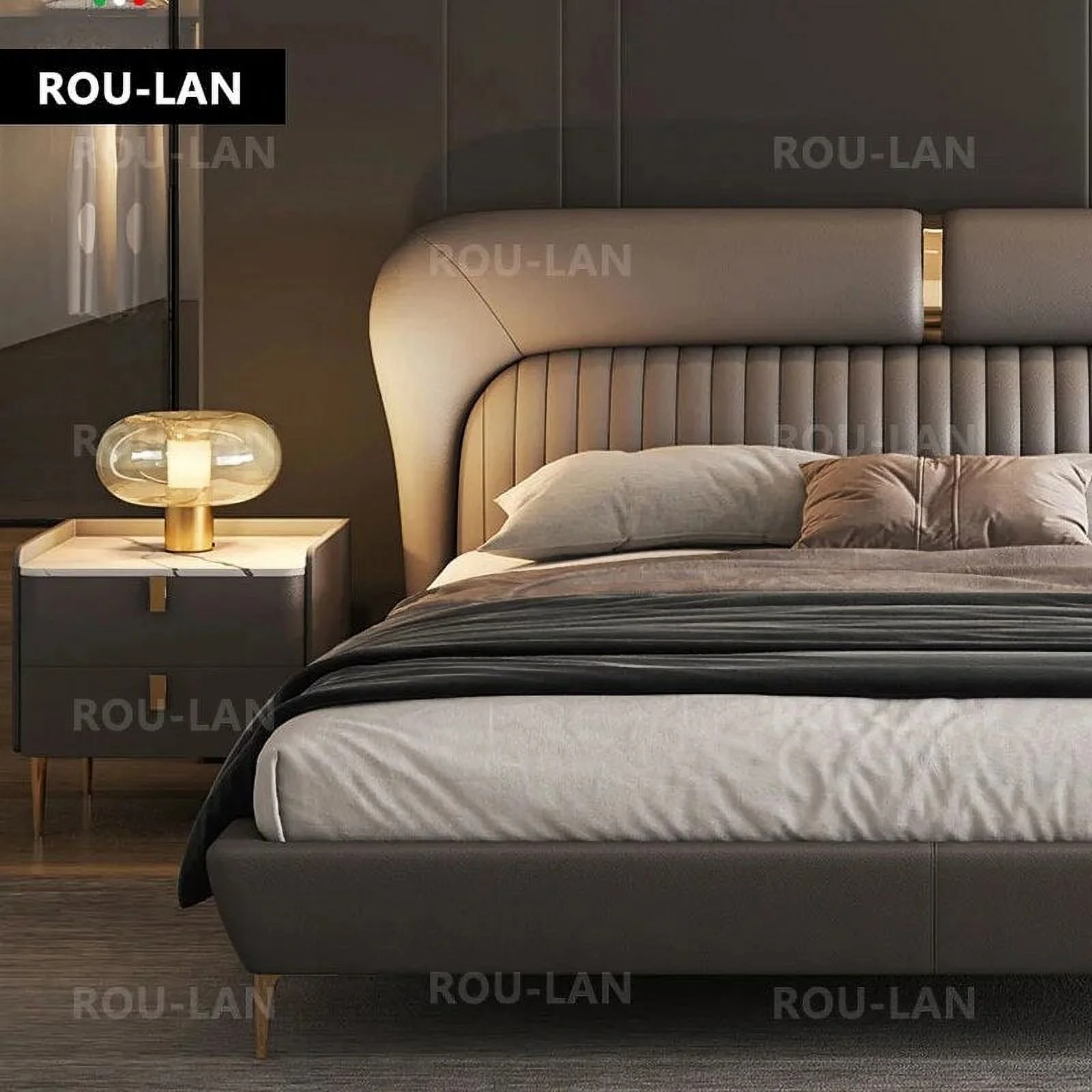 Leather Bed Light Luxury Modern Minimalist Master Bedroom Double Upholstered Bed Minimalist Design High-End Wedding Bed