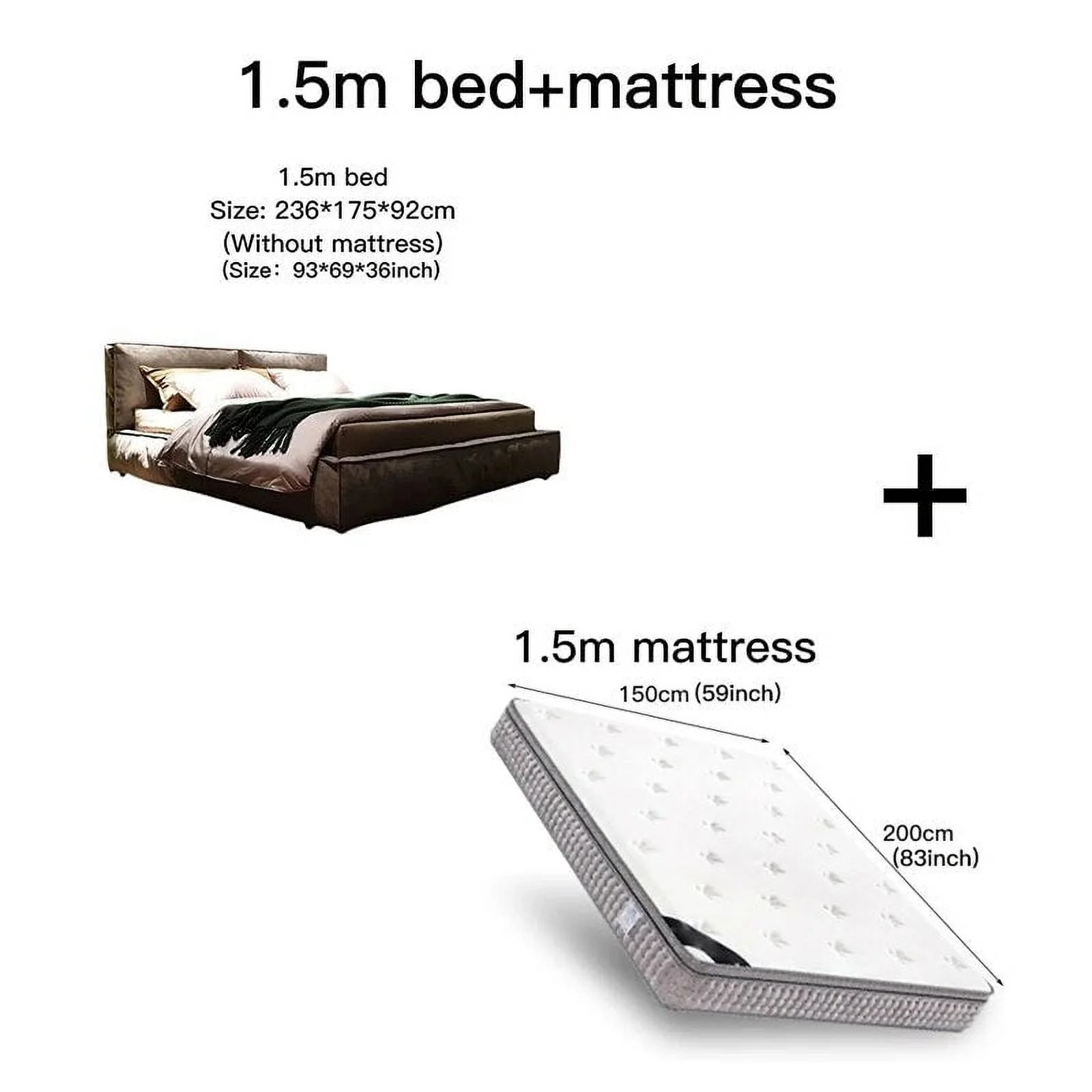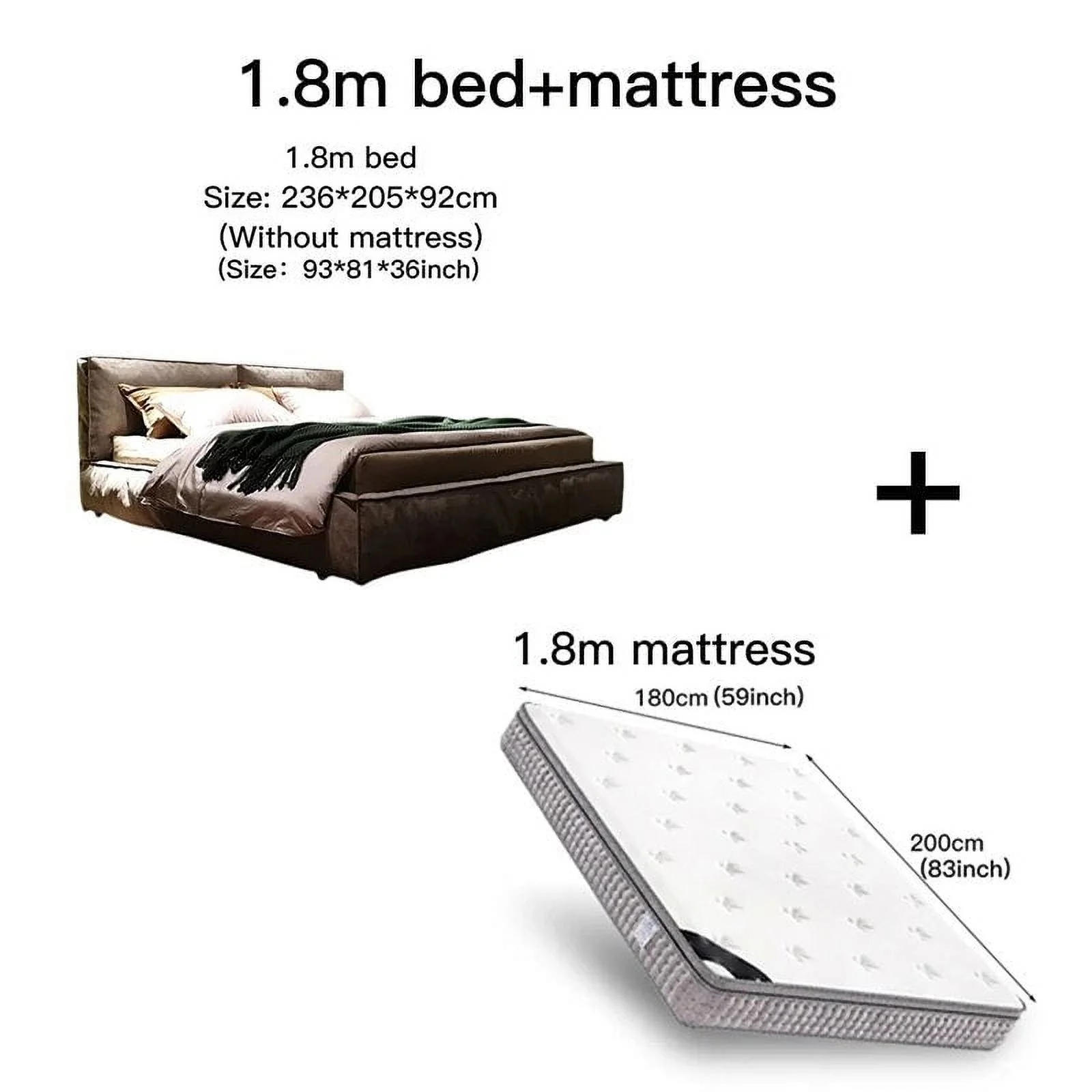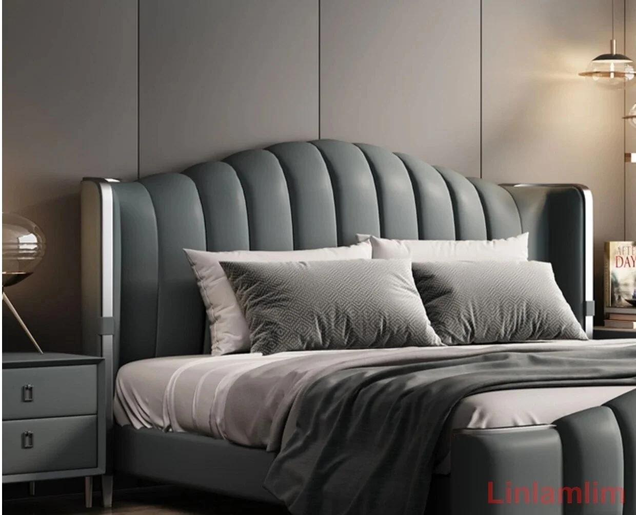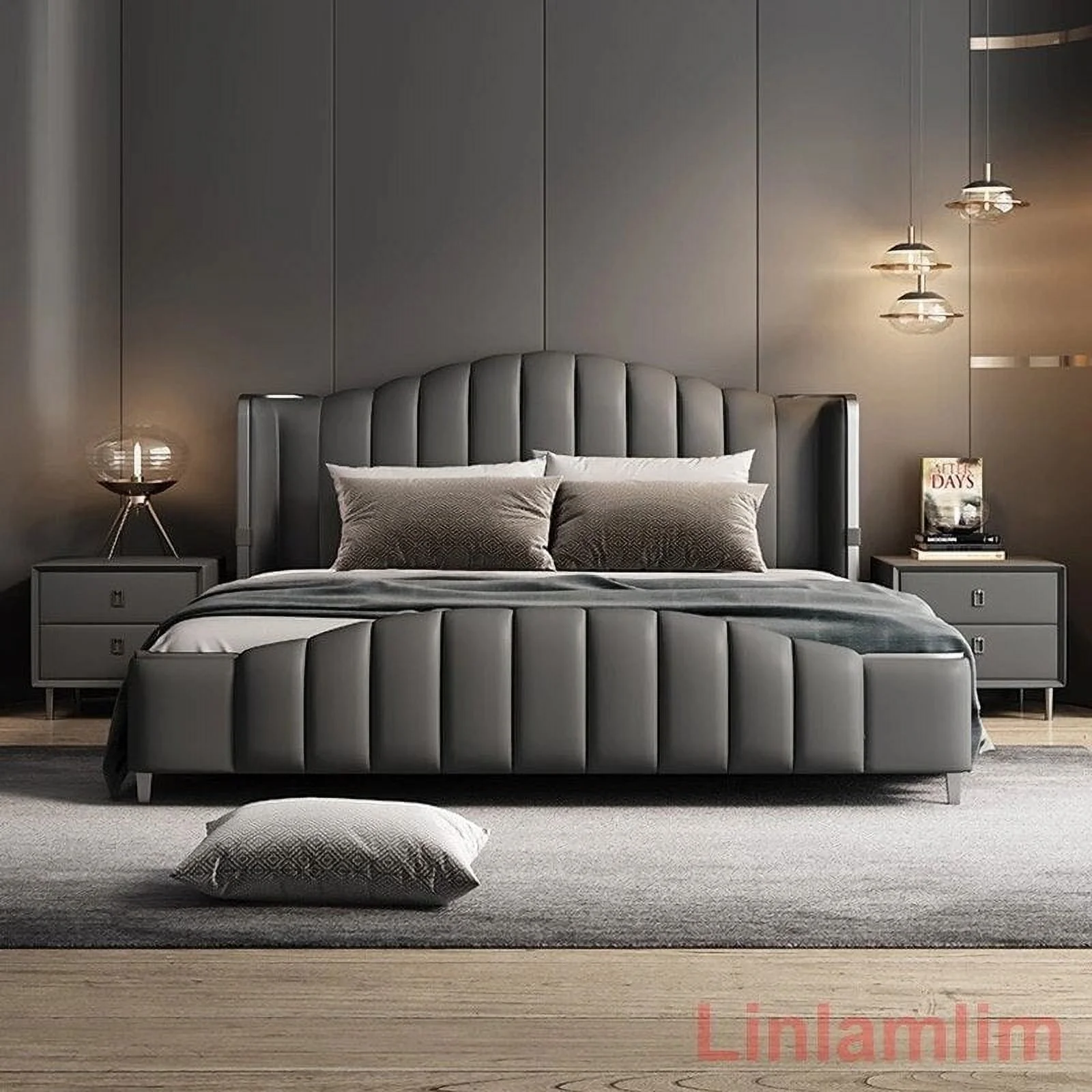 King/Queen Size Bed Frame Technical Cloth Thick Backrest Upholstered Grey Color Home Bedroom Furniture Modern Double Bed