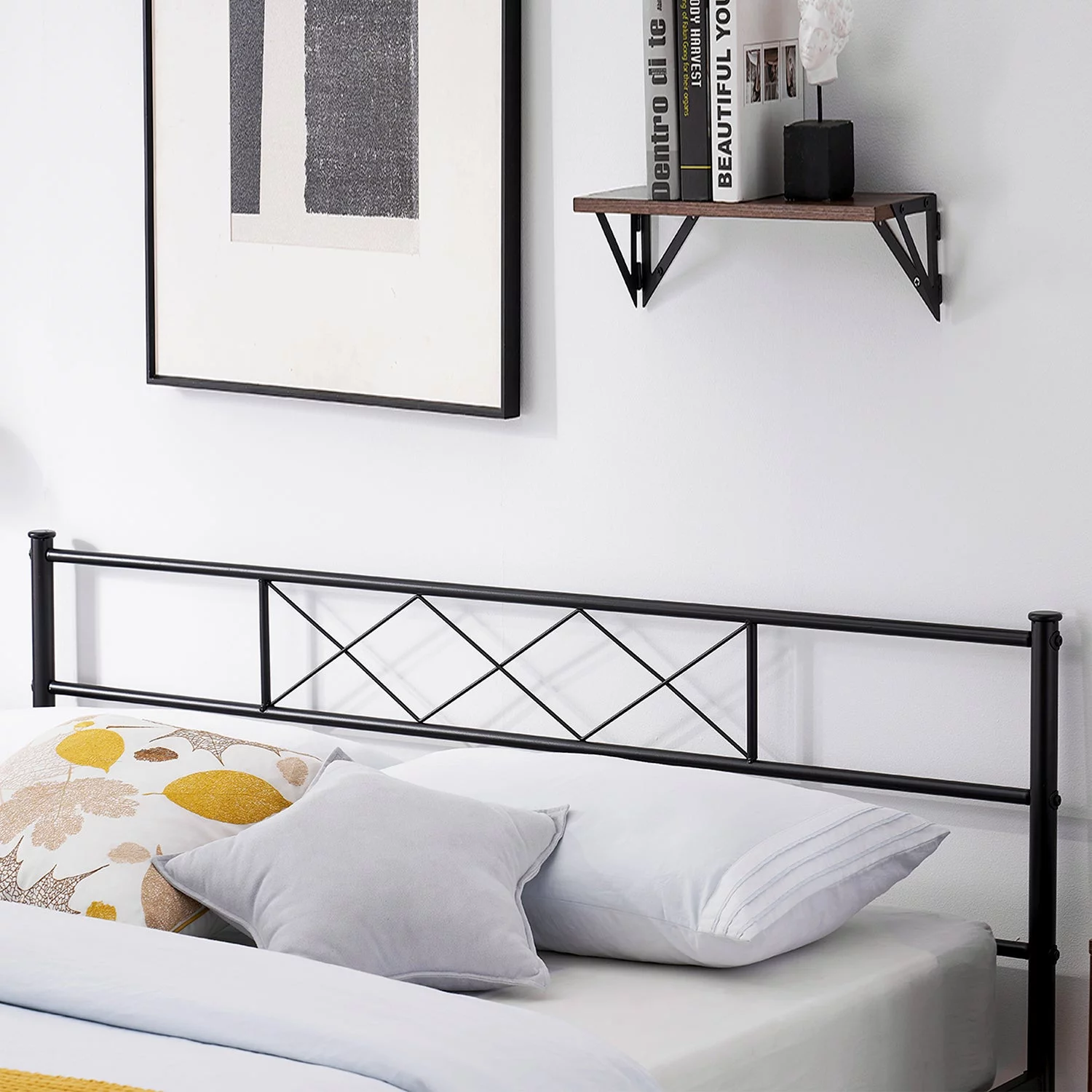 VECELO 3-Piece Bedroom Set Metal Bed Frame with Wooden Headboard and 2 Nightstand, Full Size