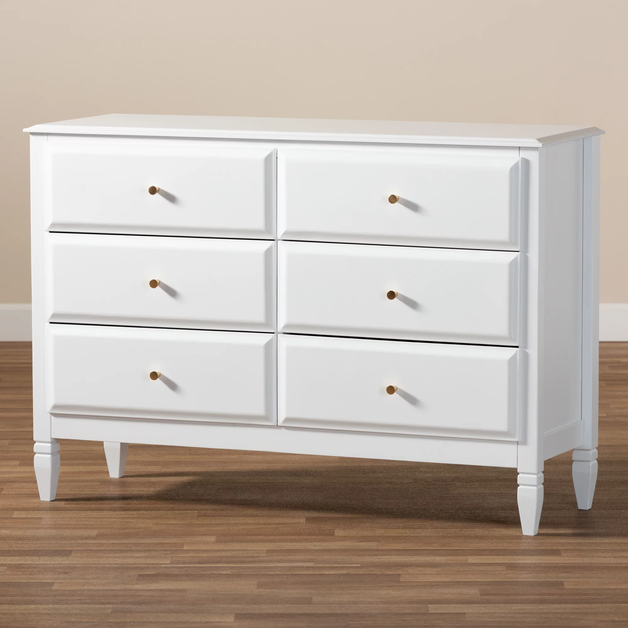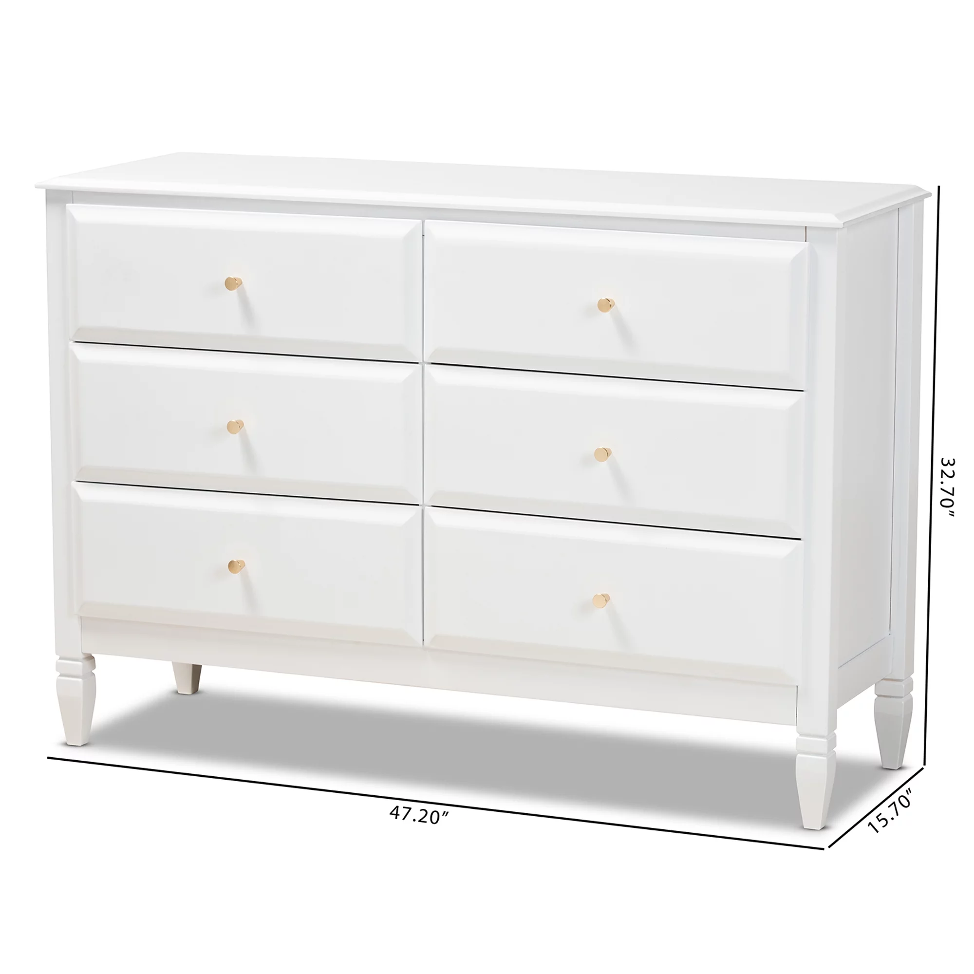 Baxton Studio Naomi Classic and Transitional White Finished Wood 6-Drawer Bedroom Dresser