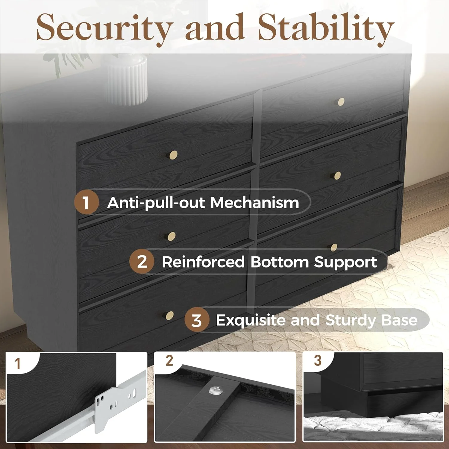 Bedroom 6 Drawer Dressers, Tower for Closet and Nursery Kids and Adult, Boho