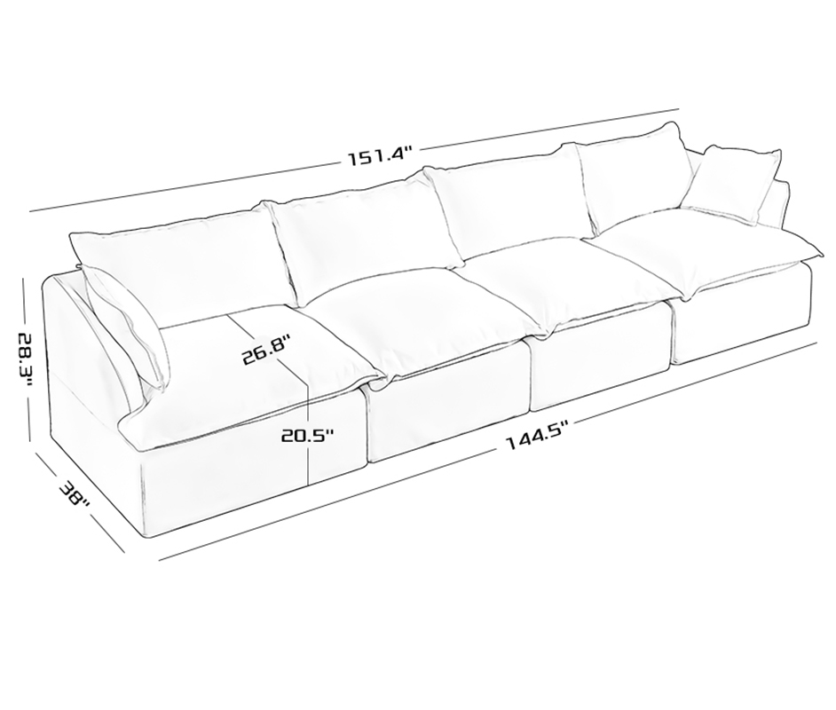 Indecor Home Modular Sectional Sofa, Modern Boucle 4 Seater with 2 Ottomans Convertible Sofas for Living Room White