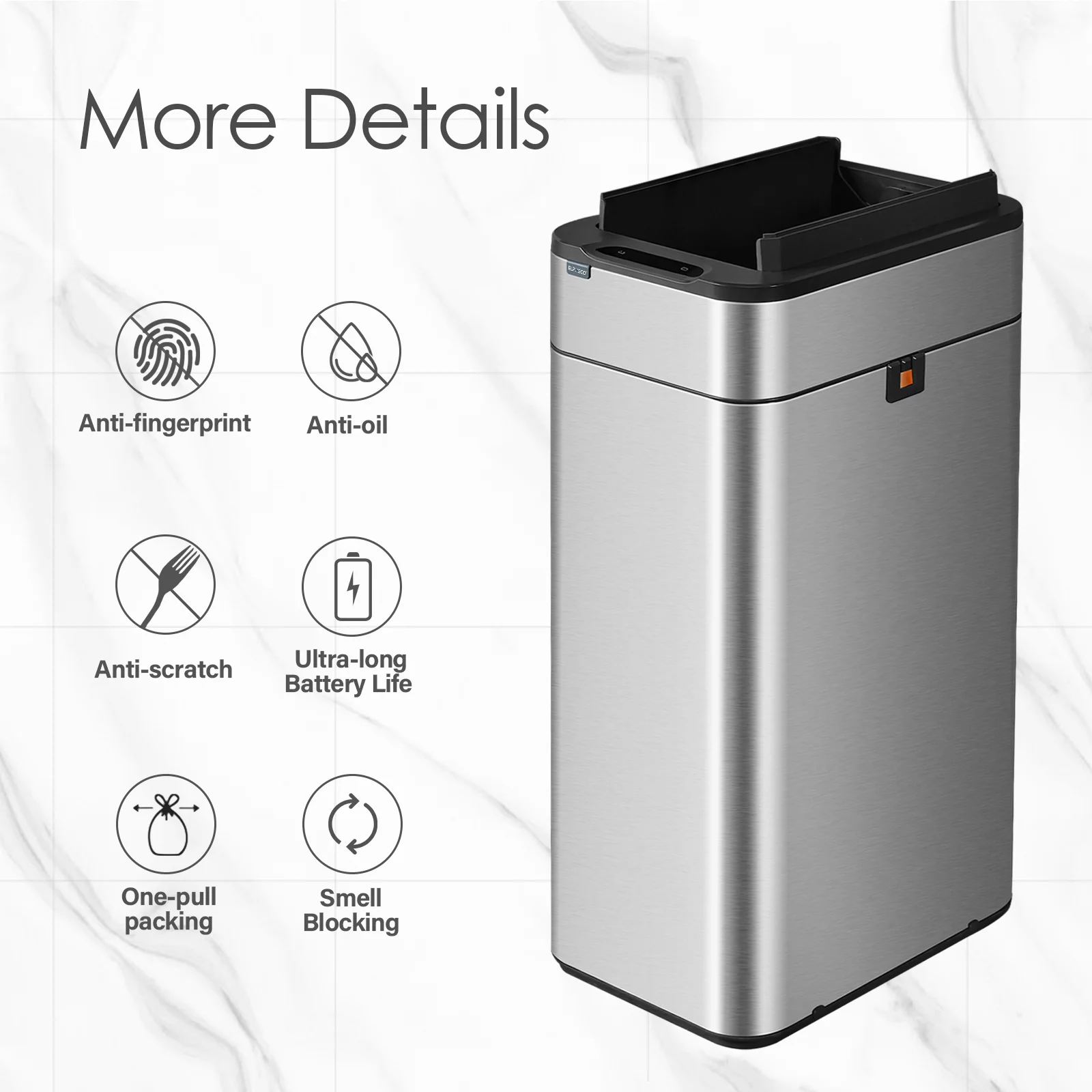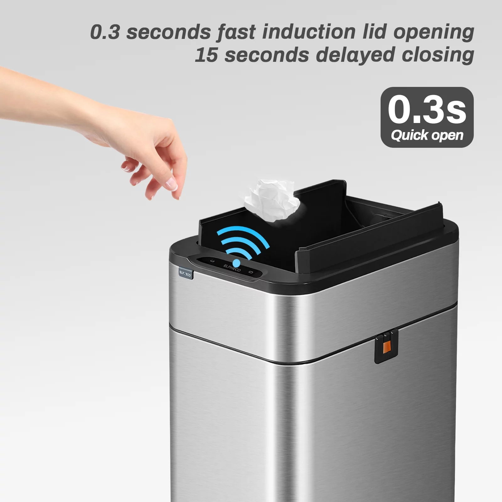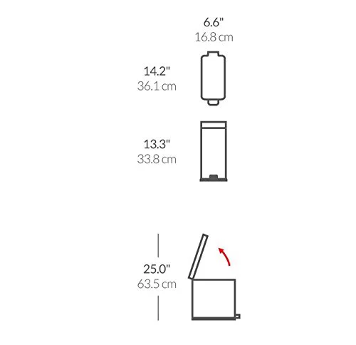 10 Liter / 2.6 Gallon Stainless Steel Bathroom Slim Profile Trash Can, Brushed Stainless Steel