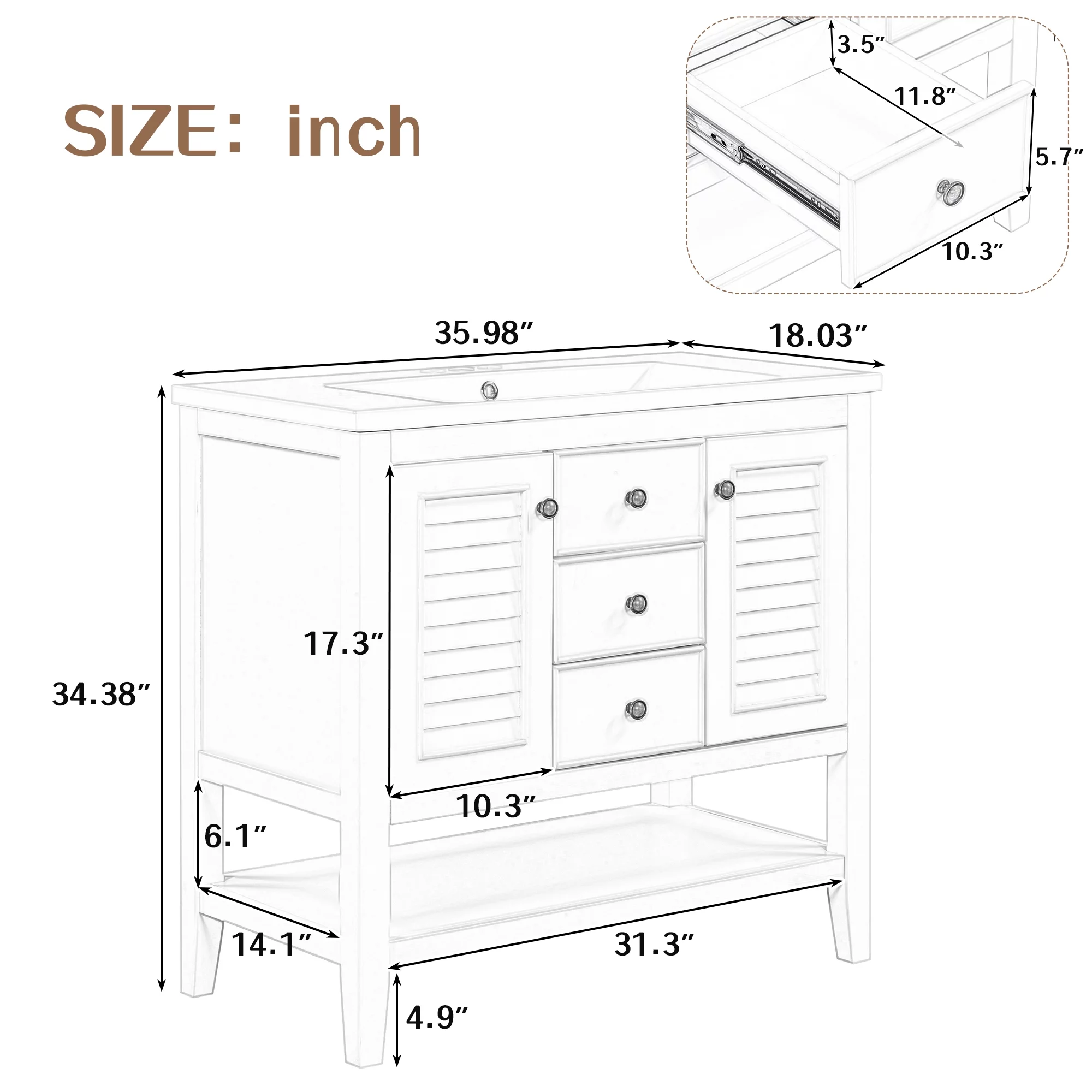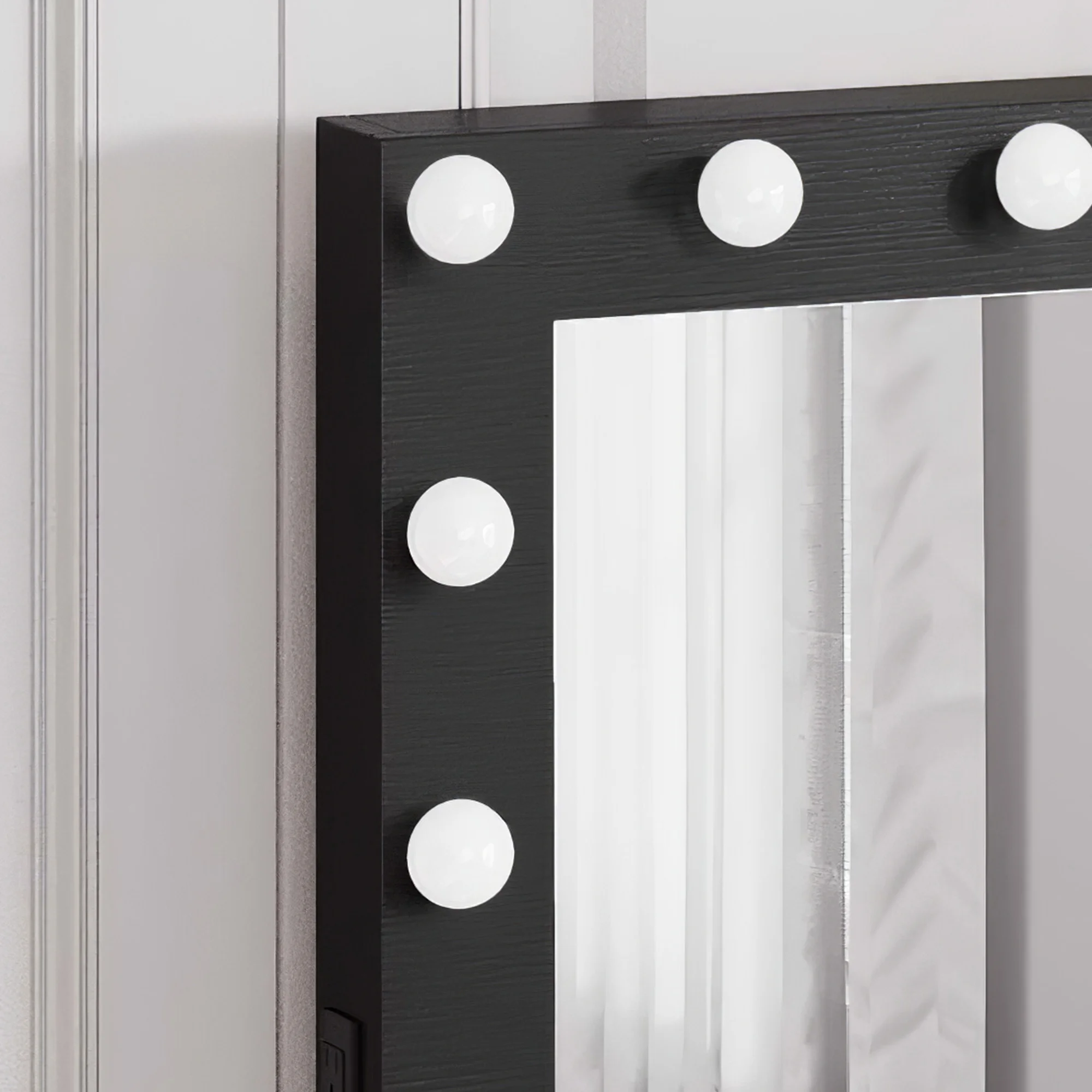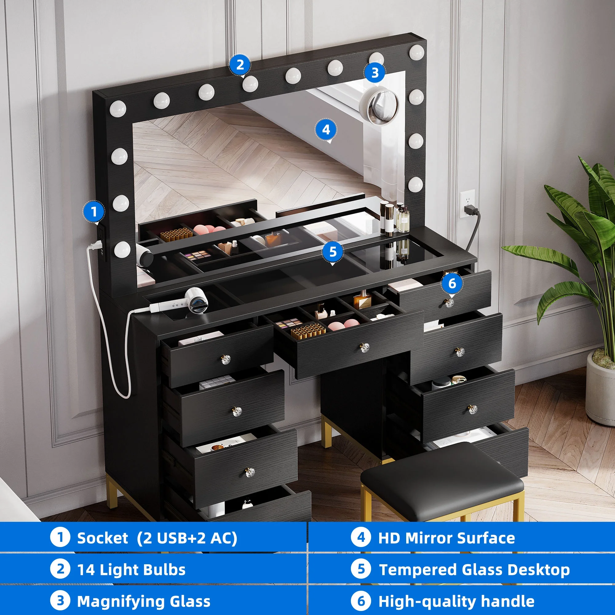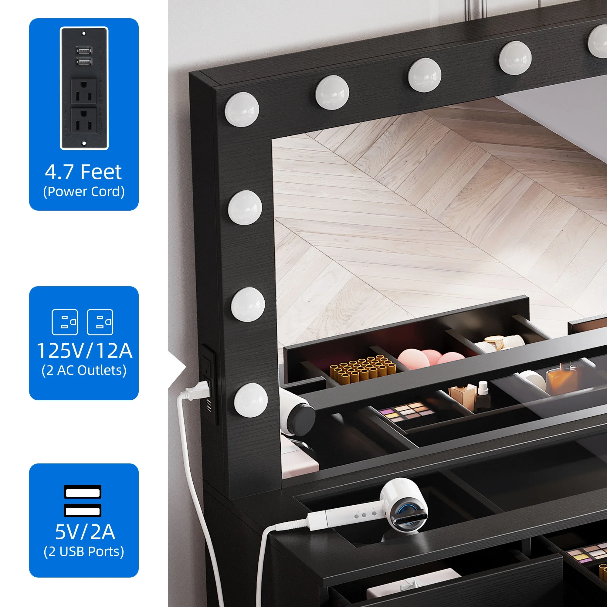 Boahaus Seraphine White Modern Vanity Desk with Mirror, LED Lights, 7 Drawers, Crystal Ball Knobs, for Bedroom