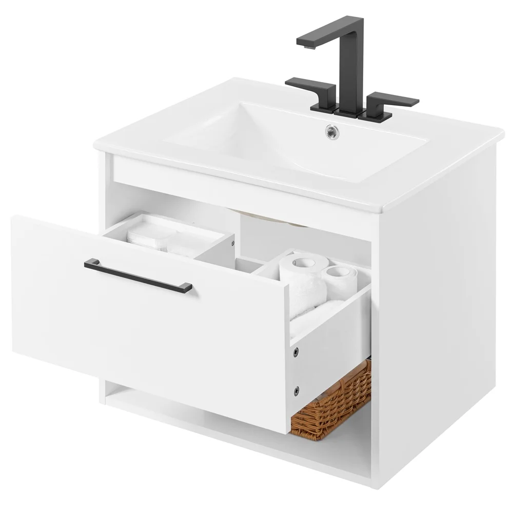 Alden Design 20" Height Wooden Wall-Mount Bathroom Vanity with Ceramic Vessel Sink, White