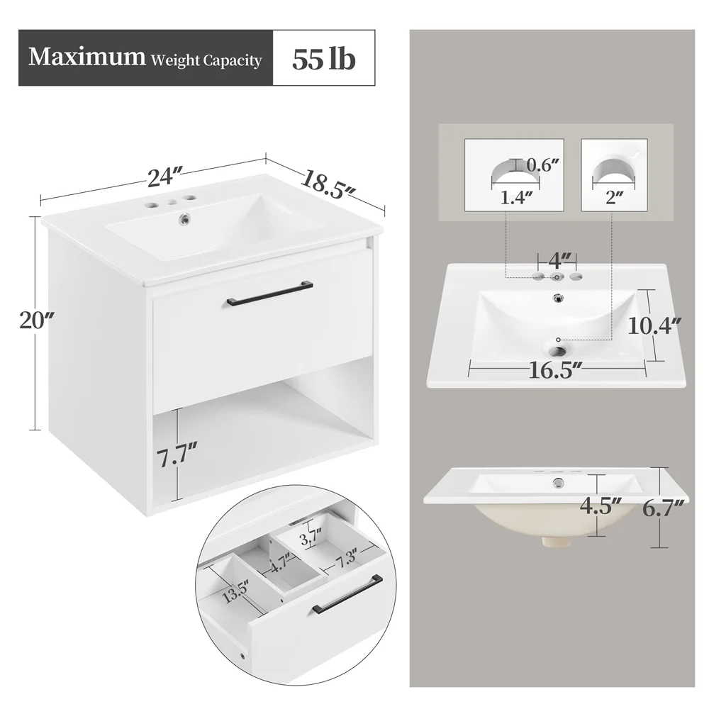 EUROCO 20" Bathroom Vanity with Sink, Bathroom Cabinet with Soft Closing Door, Storage Rack and Open Shelf, White
