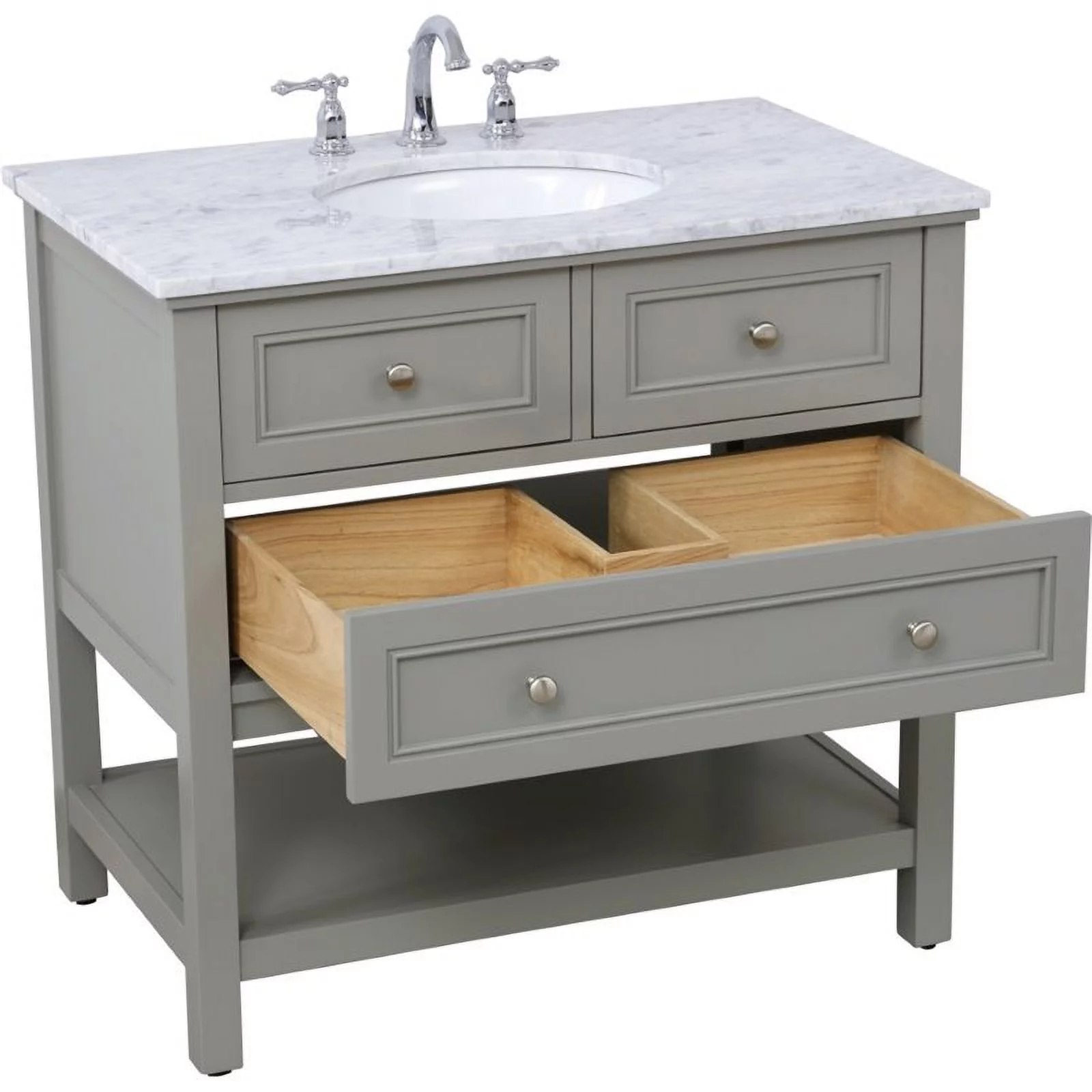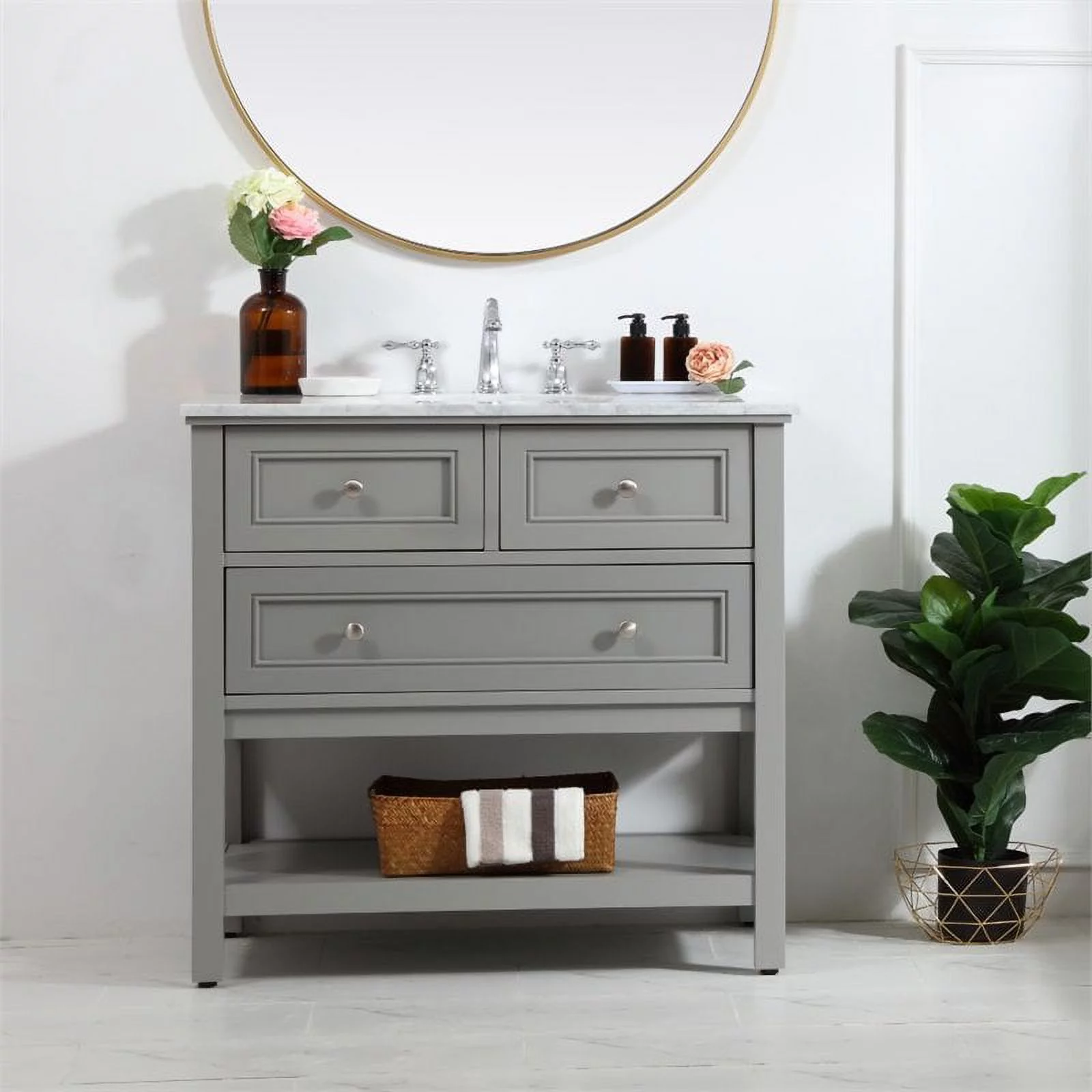 Elegant Decor Metropolis 36" Single Marble Top Bathroom Vanity in Gray