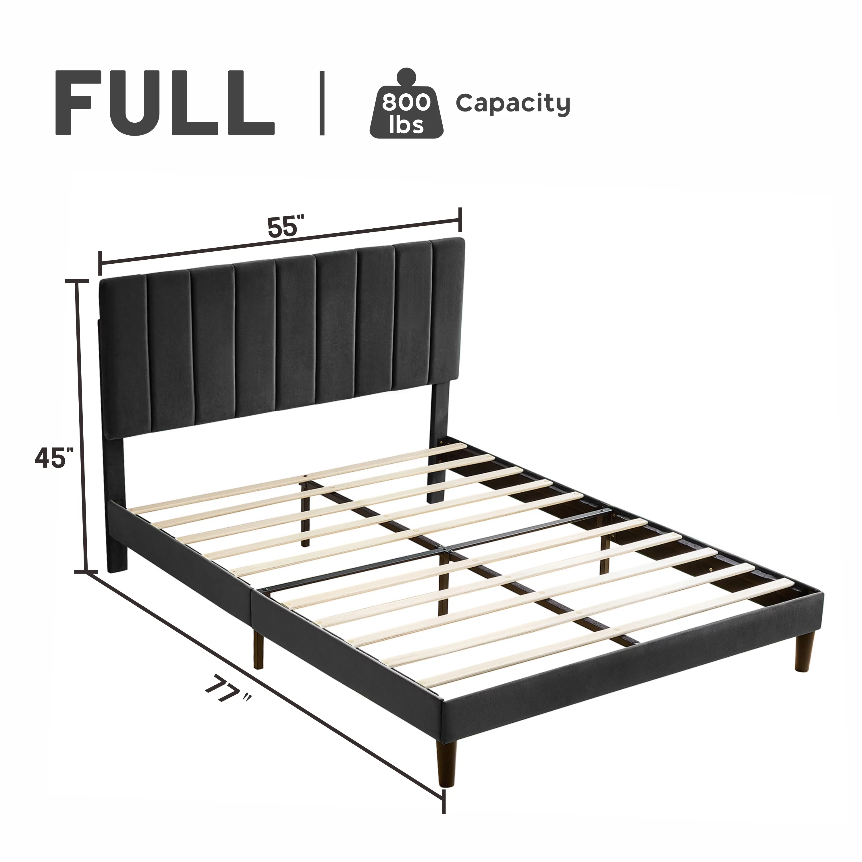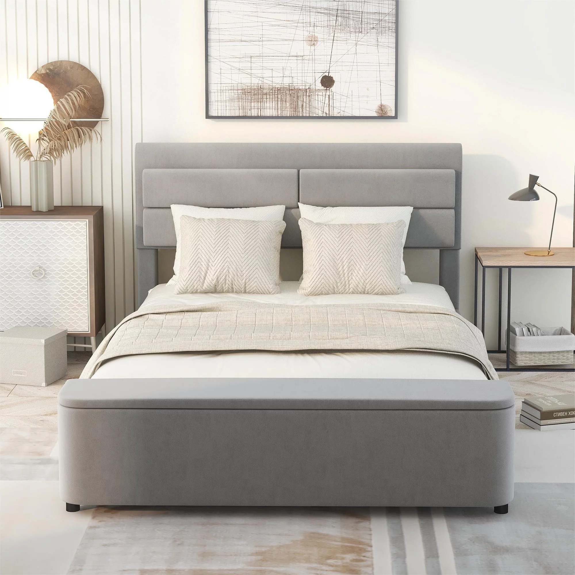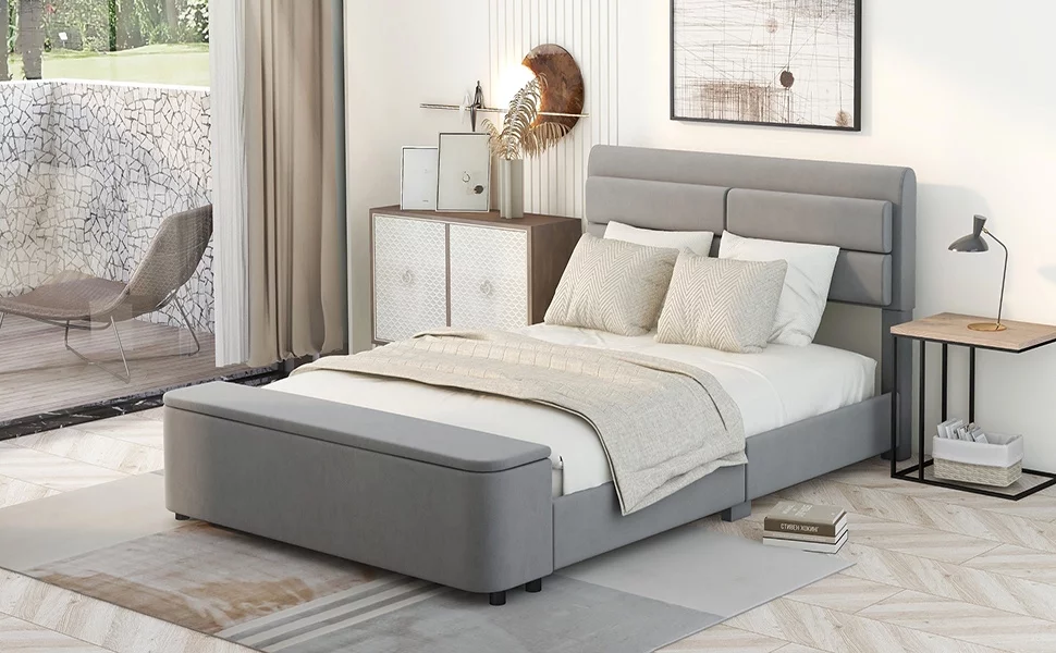 Dcenta Full Size Upholstery Platform Bed with Storage Headboard and Footboard,Support Legs,Grey