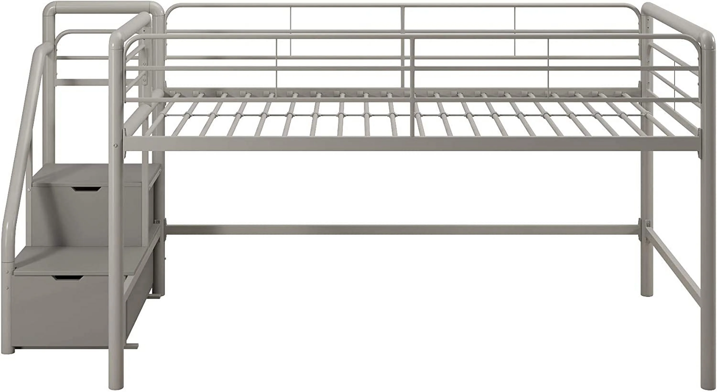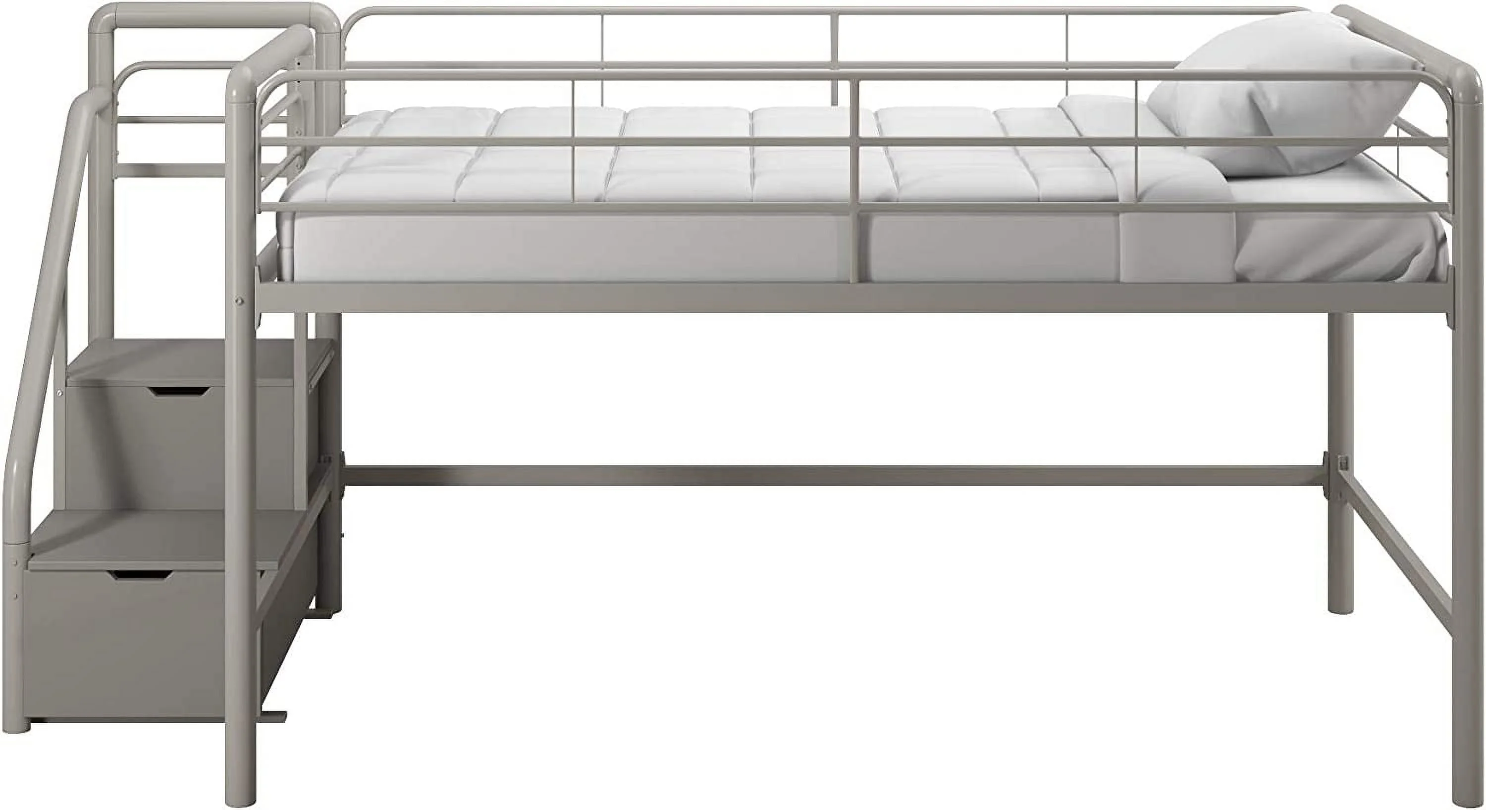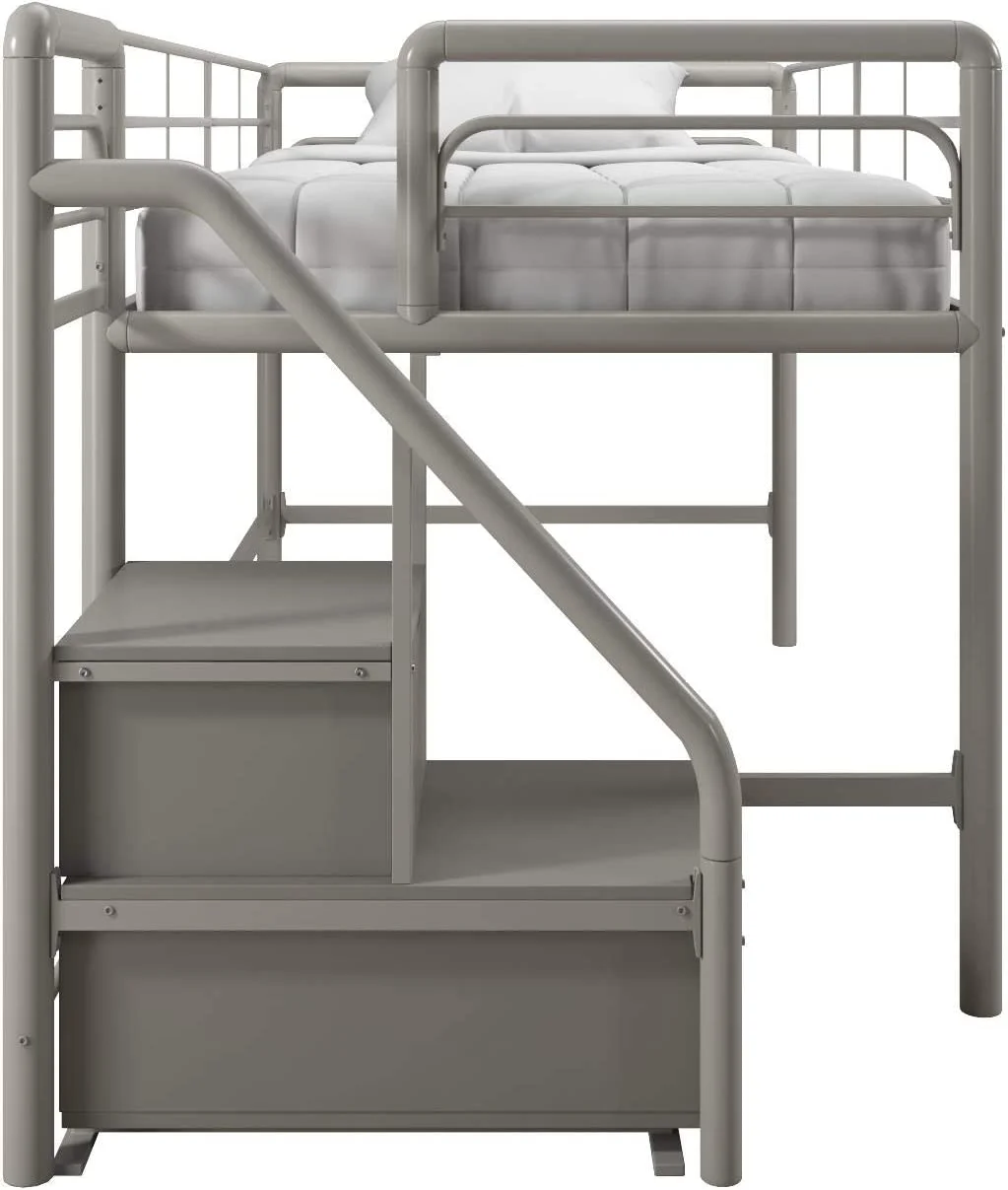 LIHONG Metal Loft Bed with Storage Steps, Multifunctional Space-Saving Solution - Silver with Gray Steps