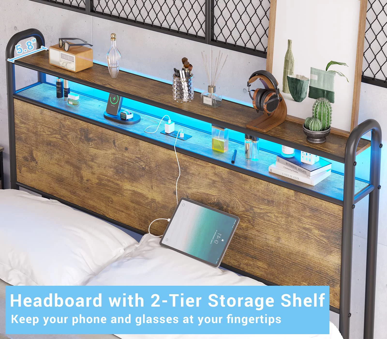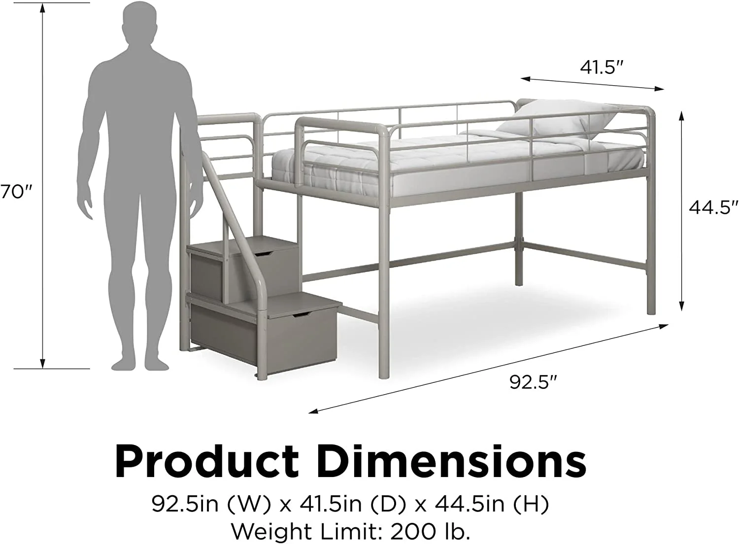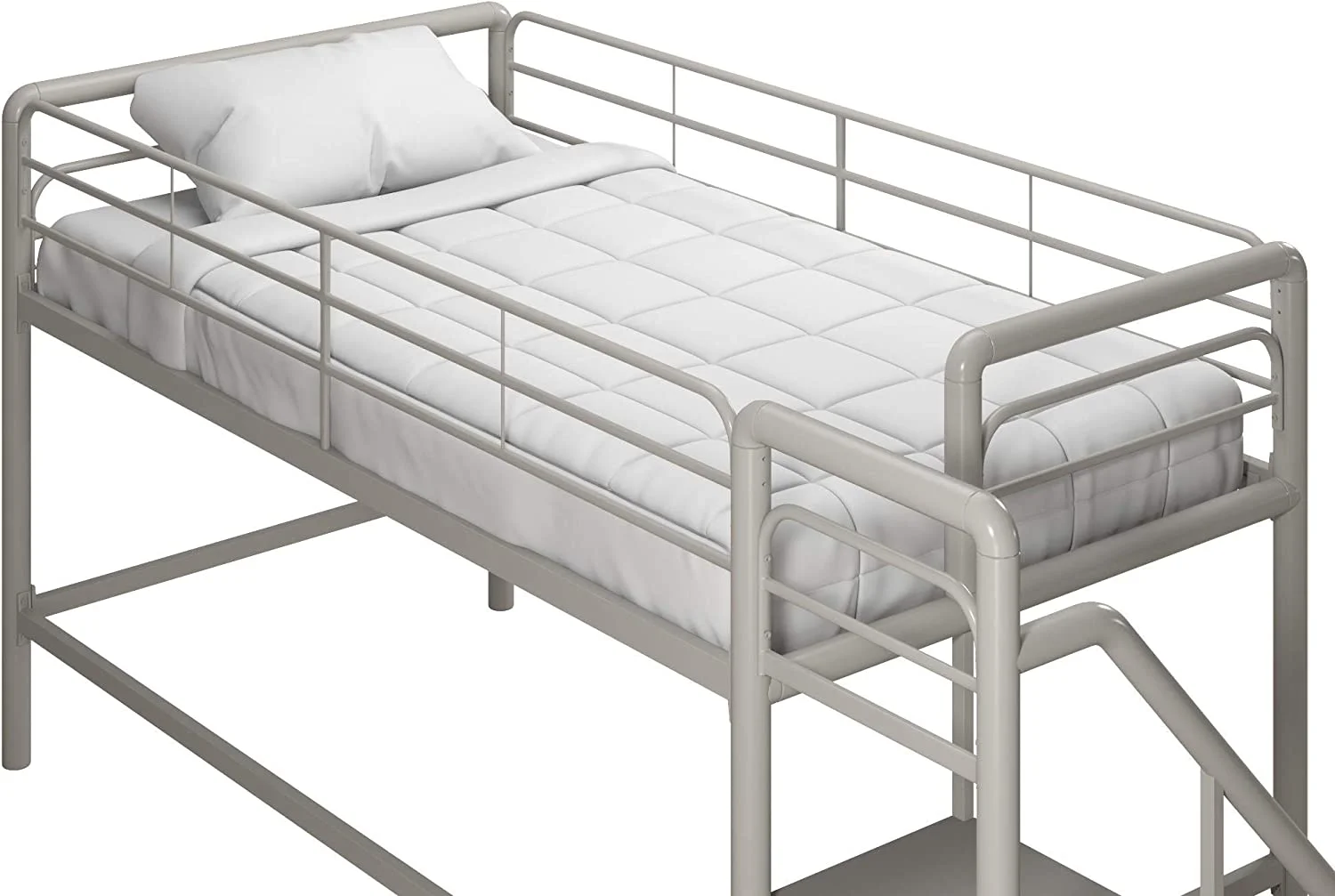 LIHONG Metal Loft Bed with Storage Steps, Multifunctional Space-Saving Solution - Silver with Gray Steps