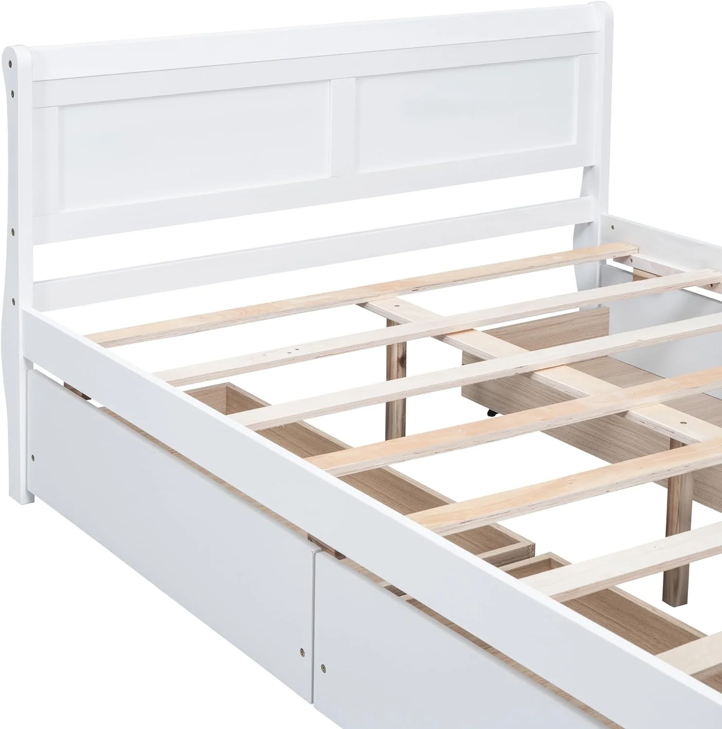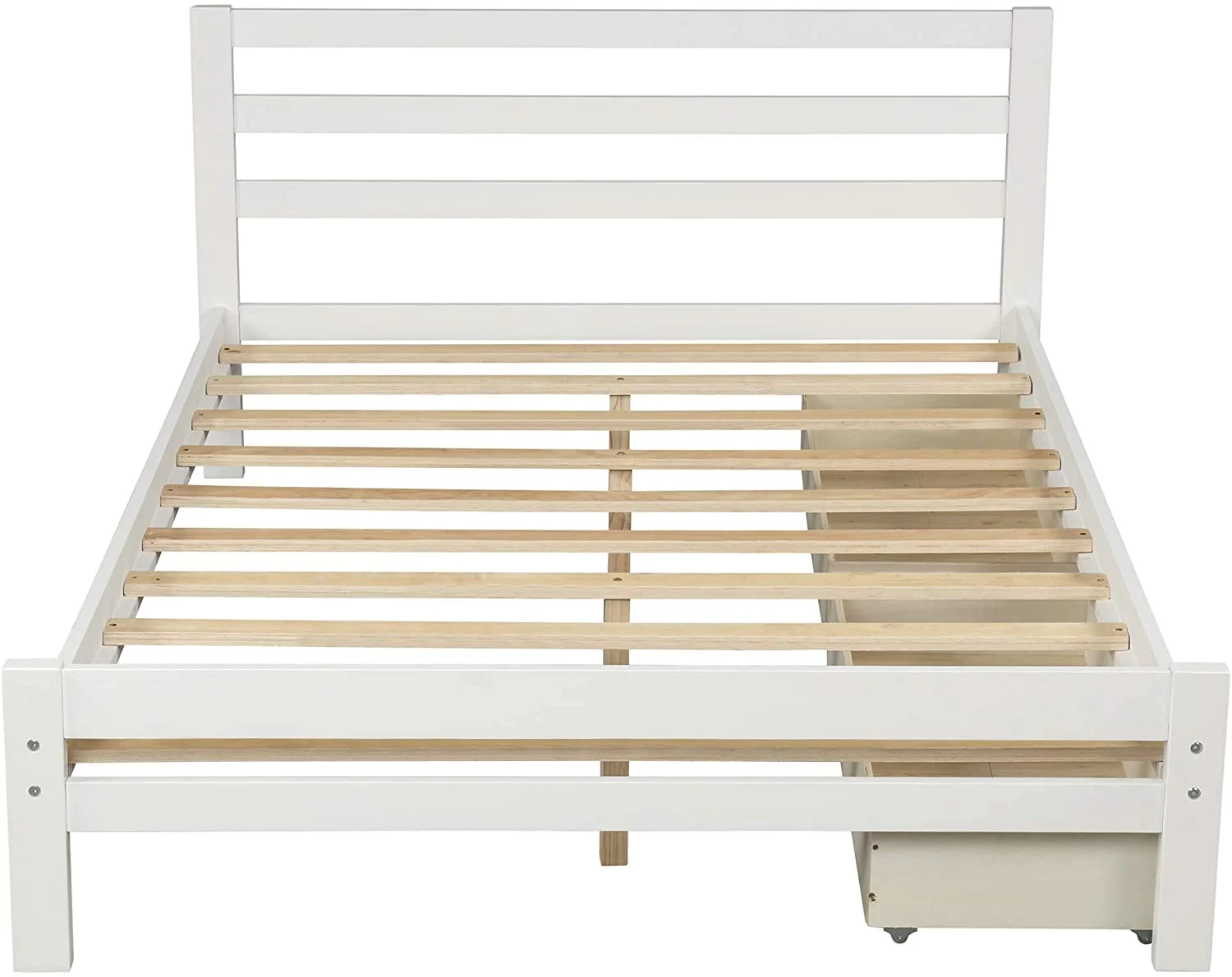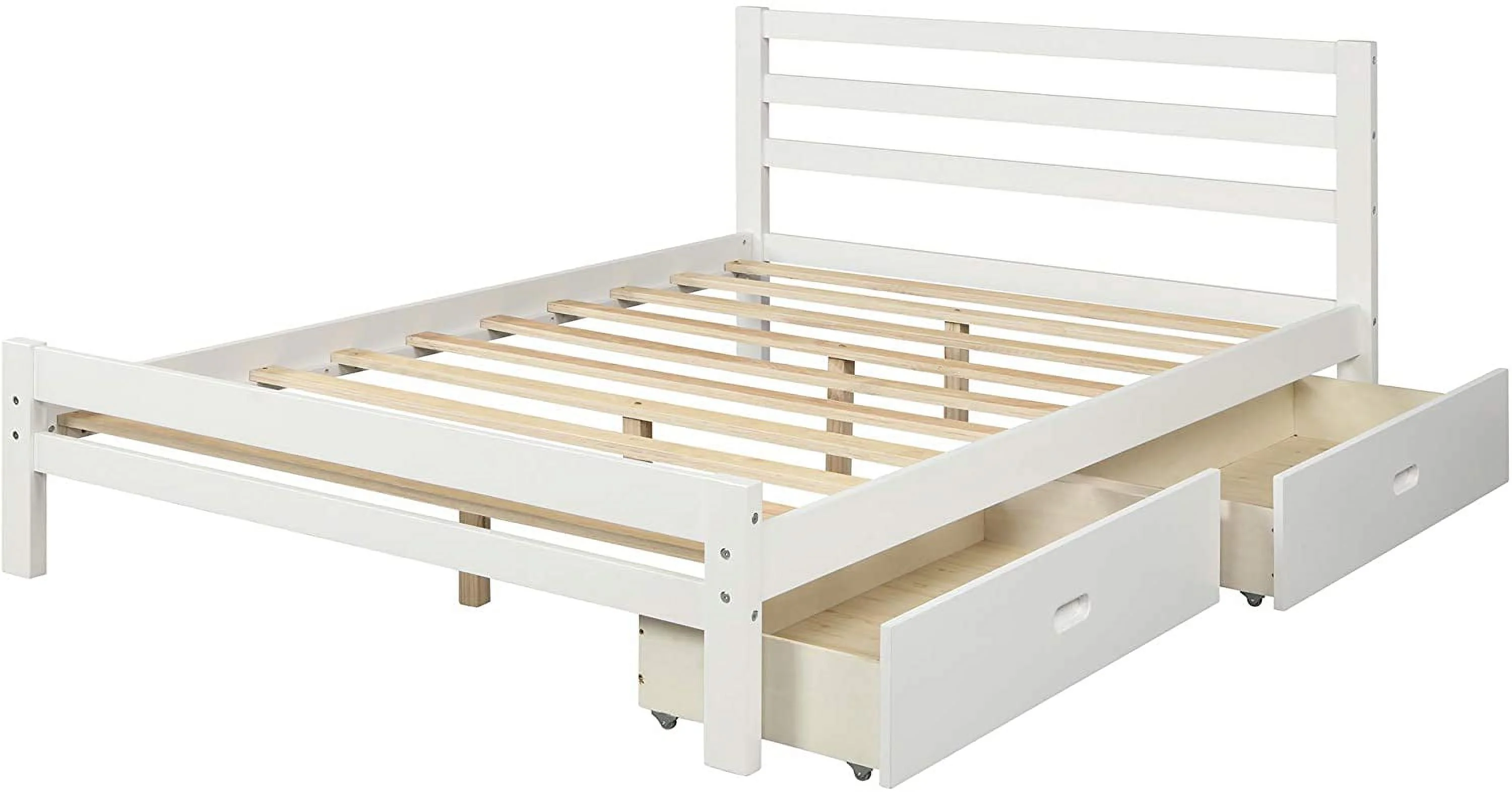 Full Size Platform Bed with 4 Drawers and Streamlined Headboard & Footboard, Solid Wood Bed Frame for Kids Teens Adults