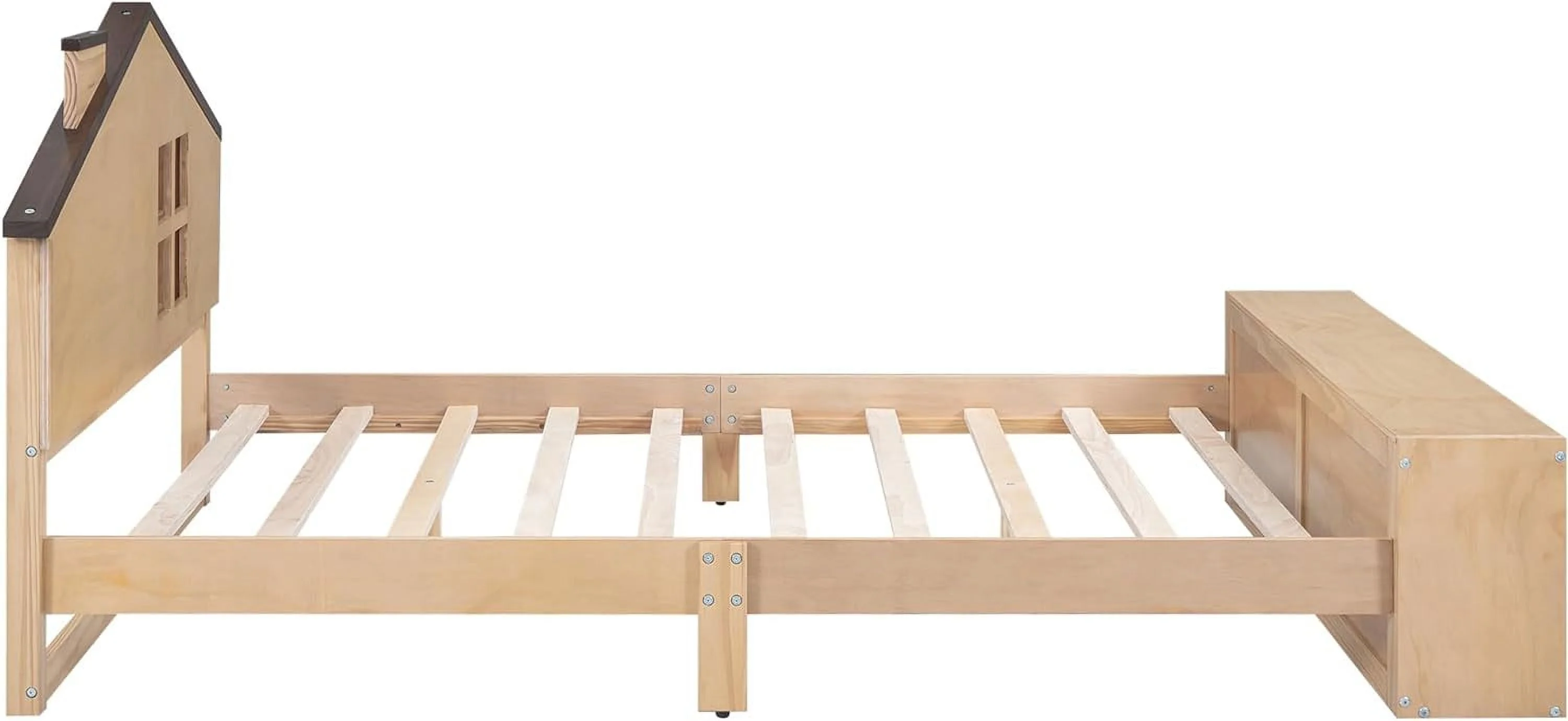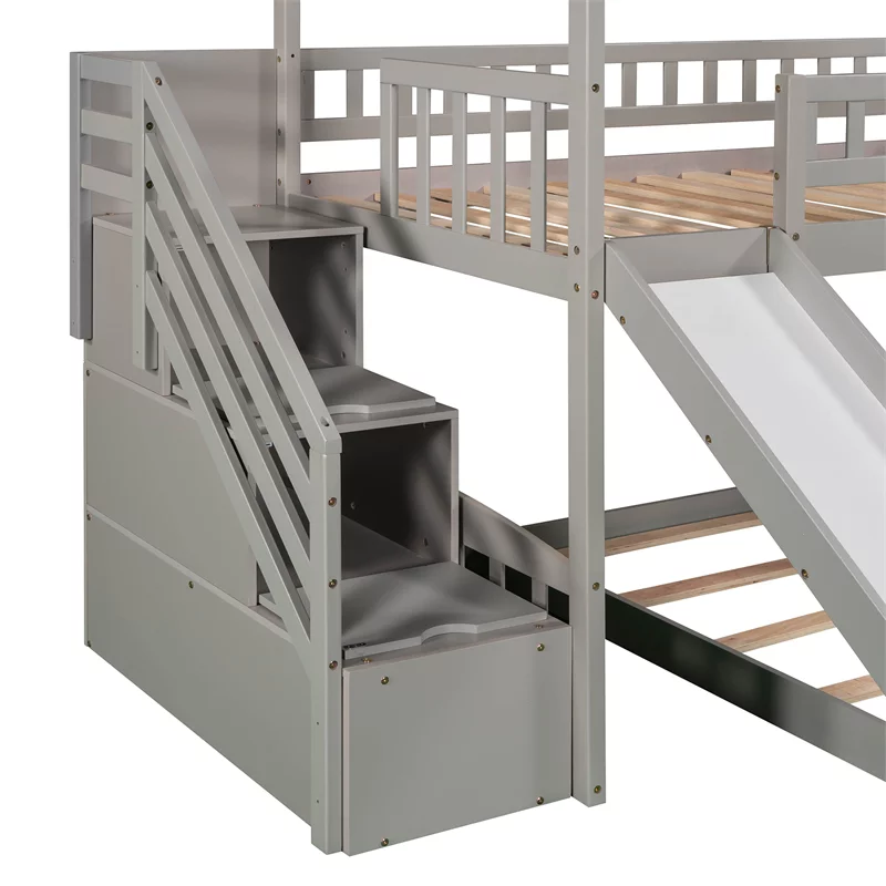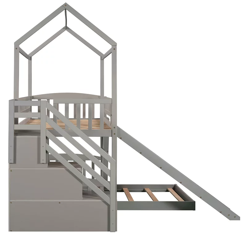 Full Bed With Trundle And Two Drawers, Wooden Platform Bed Frame (Gray)