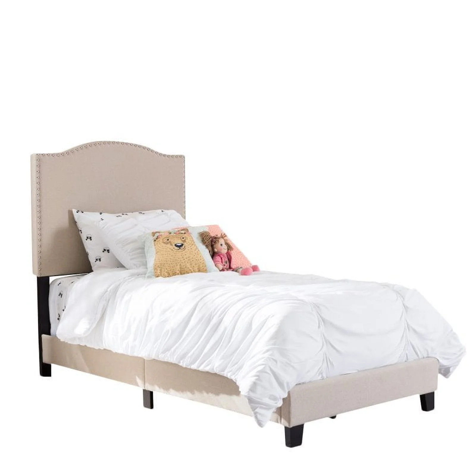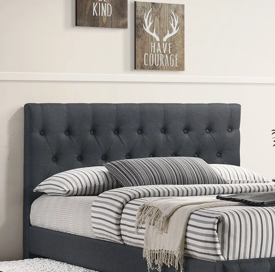 Contemporary Modern Charcoal Burlap Button Tufted Twin Size Bed w Trundle Bedroom Upholstered 1pc Bed Wooden Slats