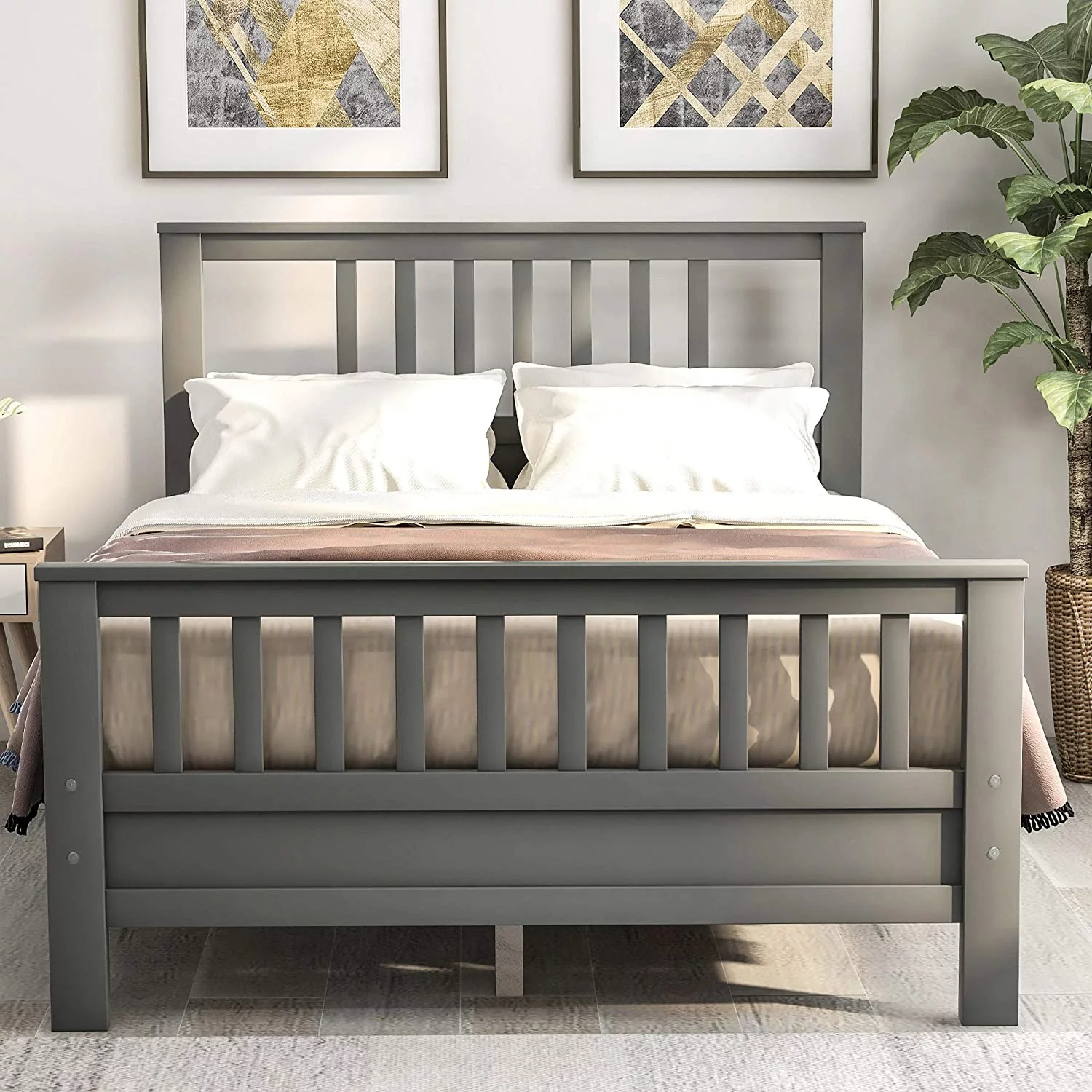 CoSoTower Solid Wood Platform Beds with Headboard, Footboard and Wood Slat Support