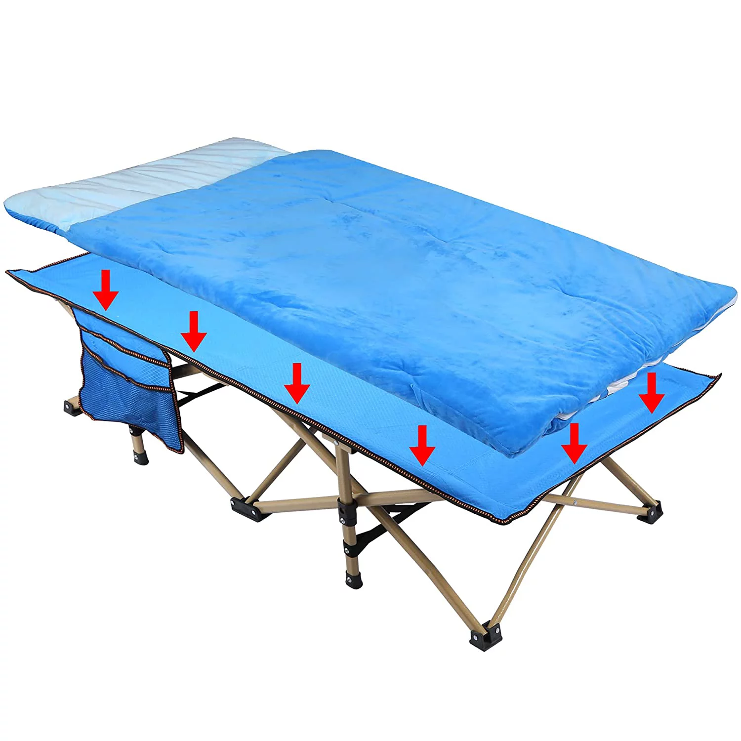 REDCAMP Folding Kids Cot with Removable Sleeping Bag, Portable Toddler Cot Bed for Sleeping, Blue