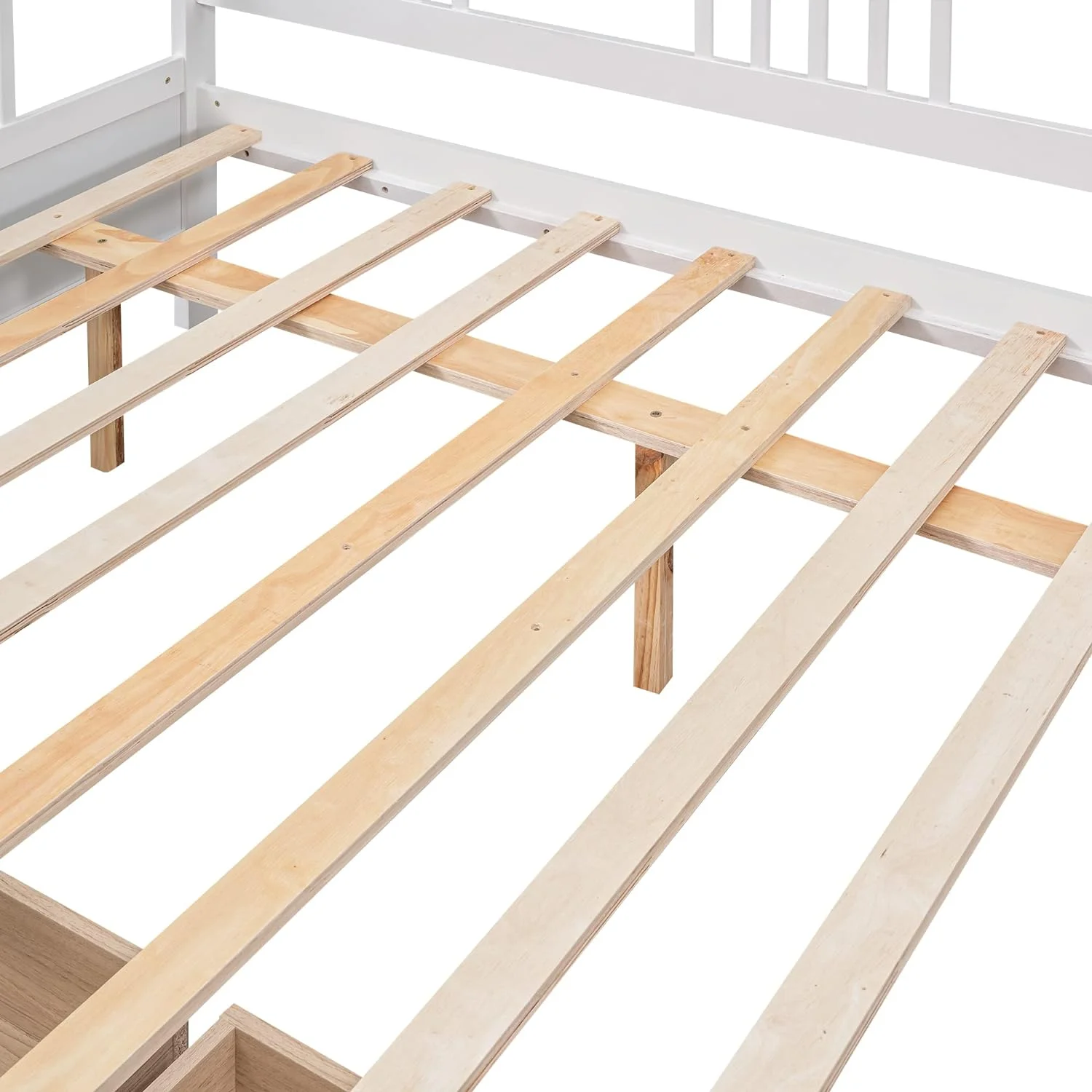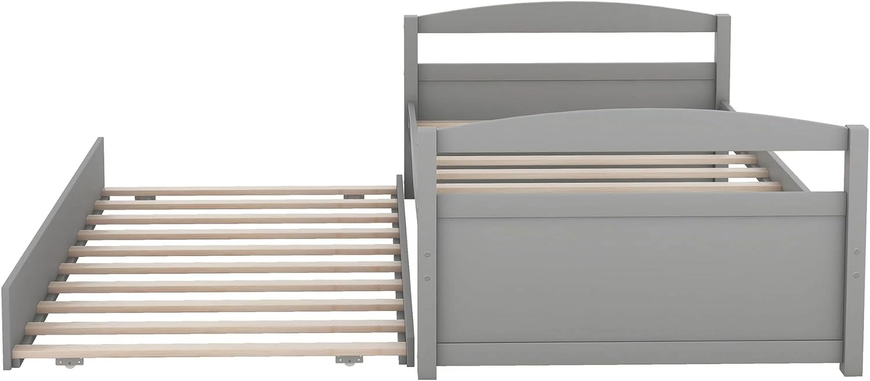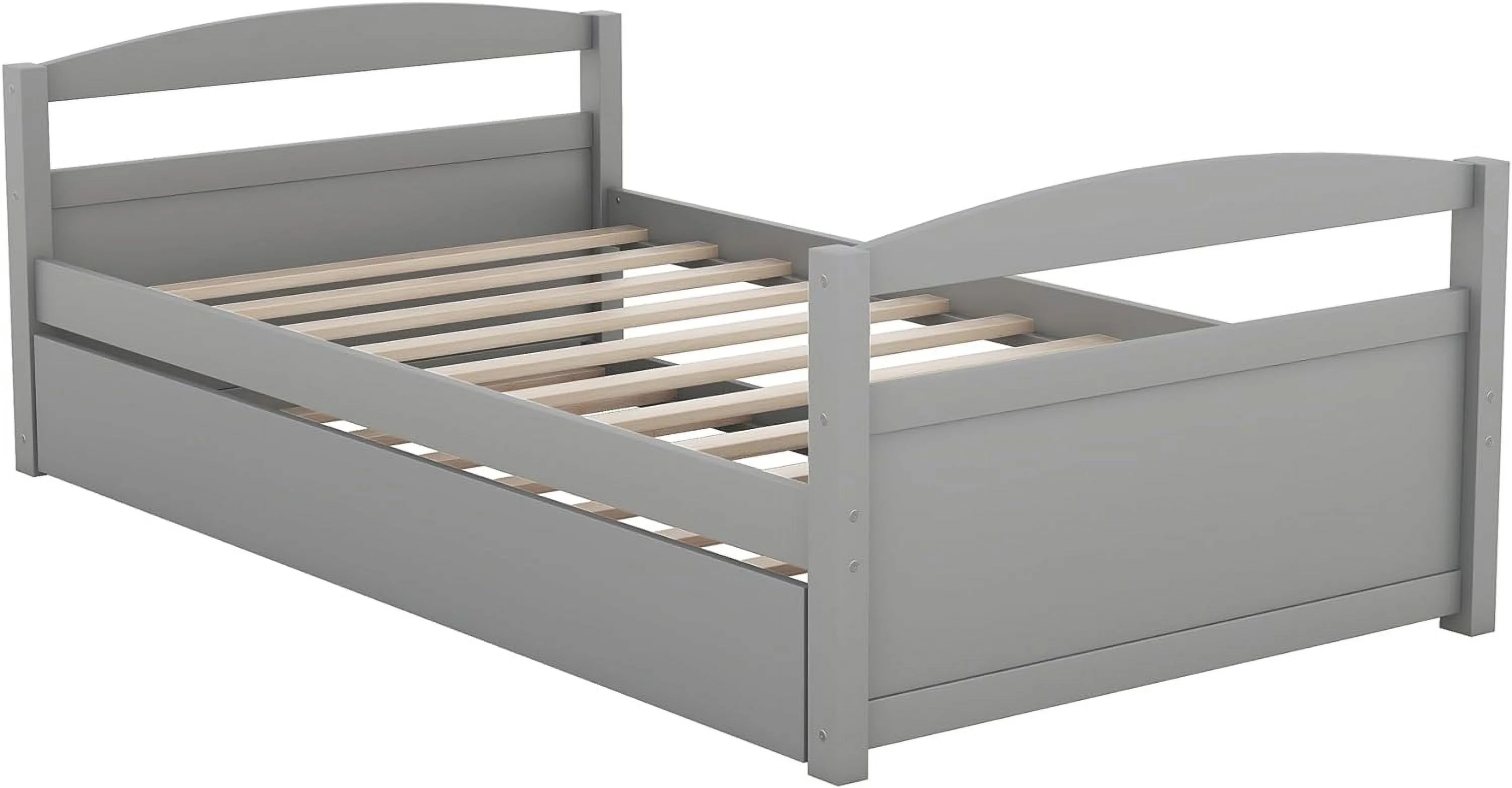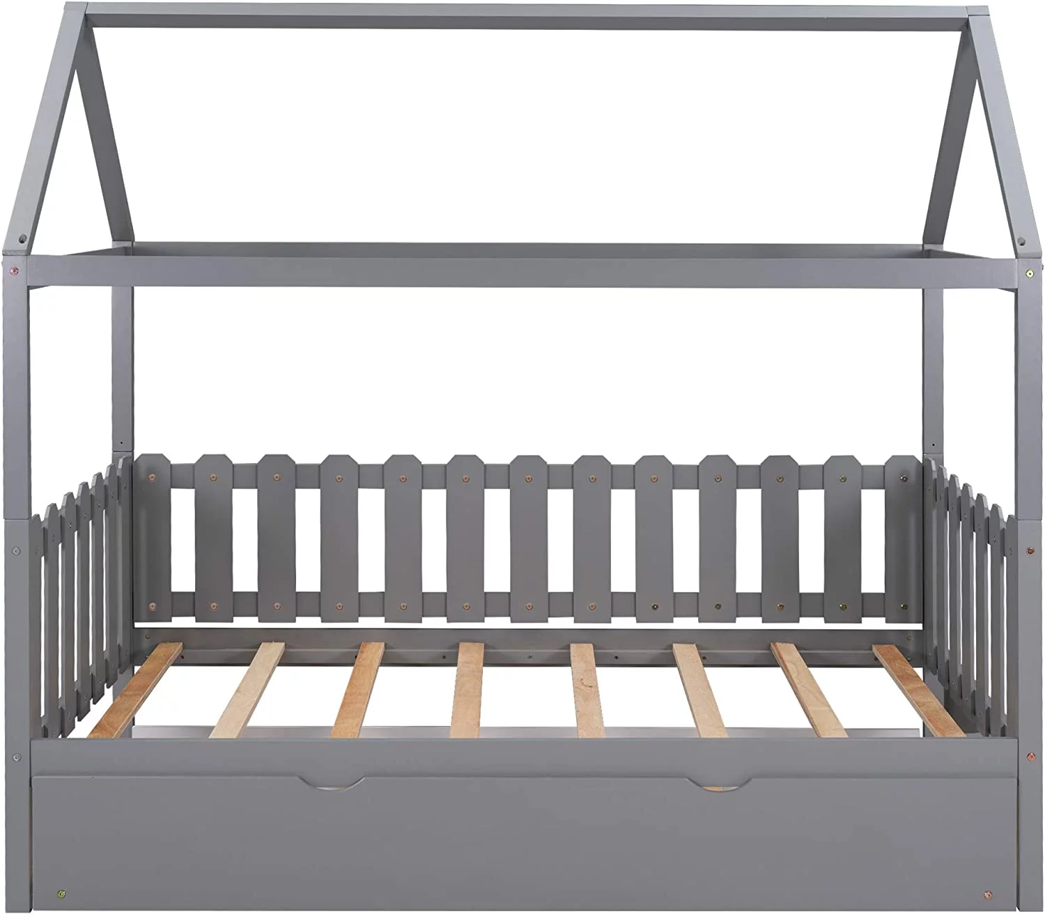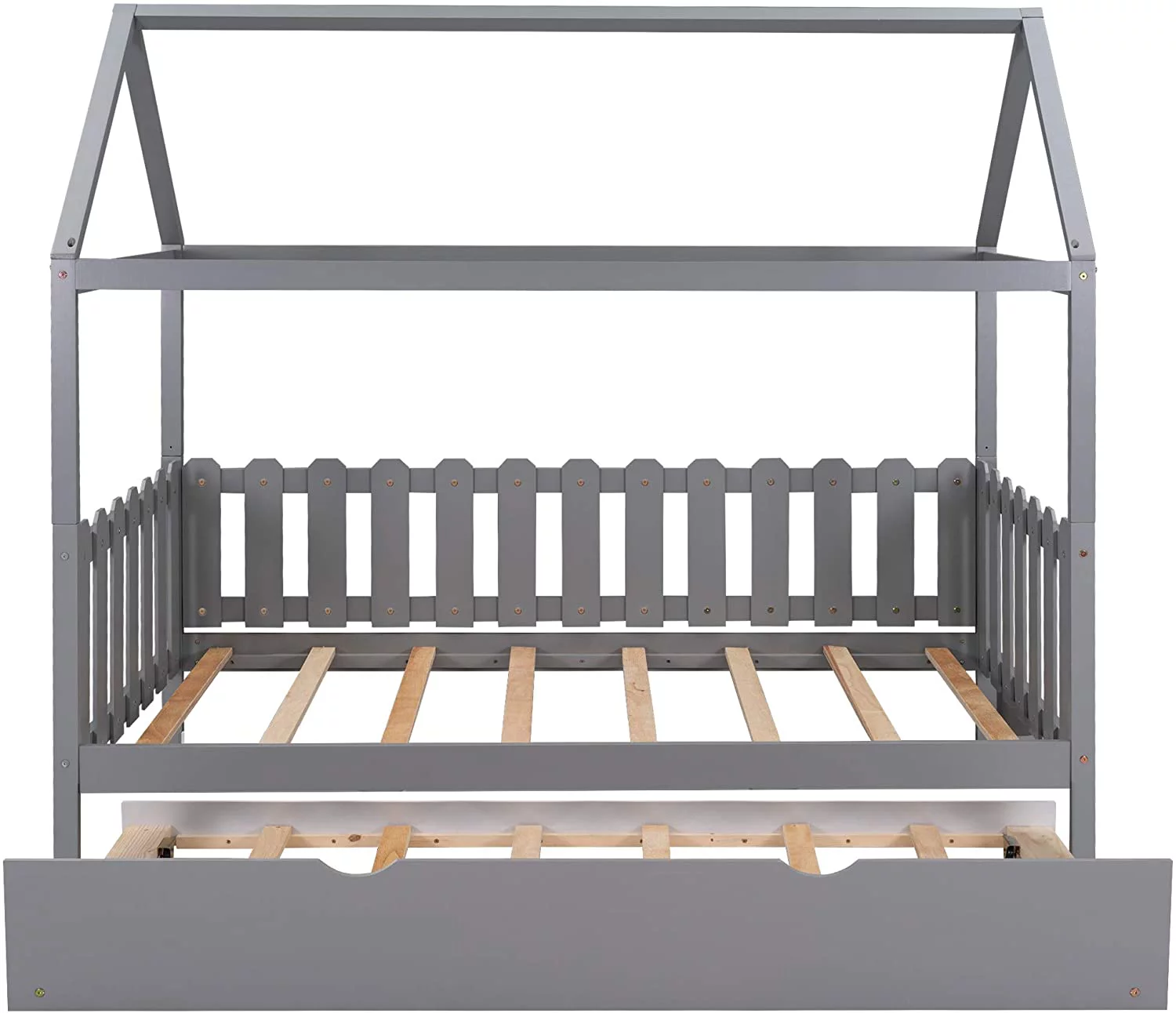 House With Trundle, Size Platform Bed With Roof, Wood Daybed Frame For Kids & Teens, Gray