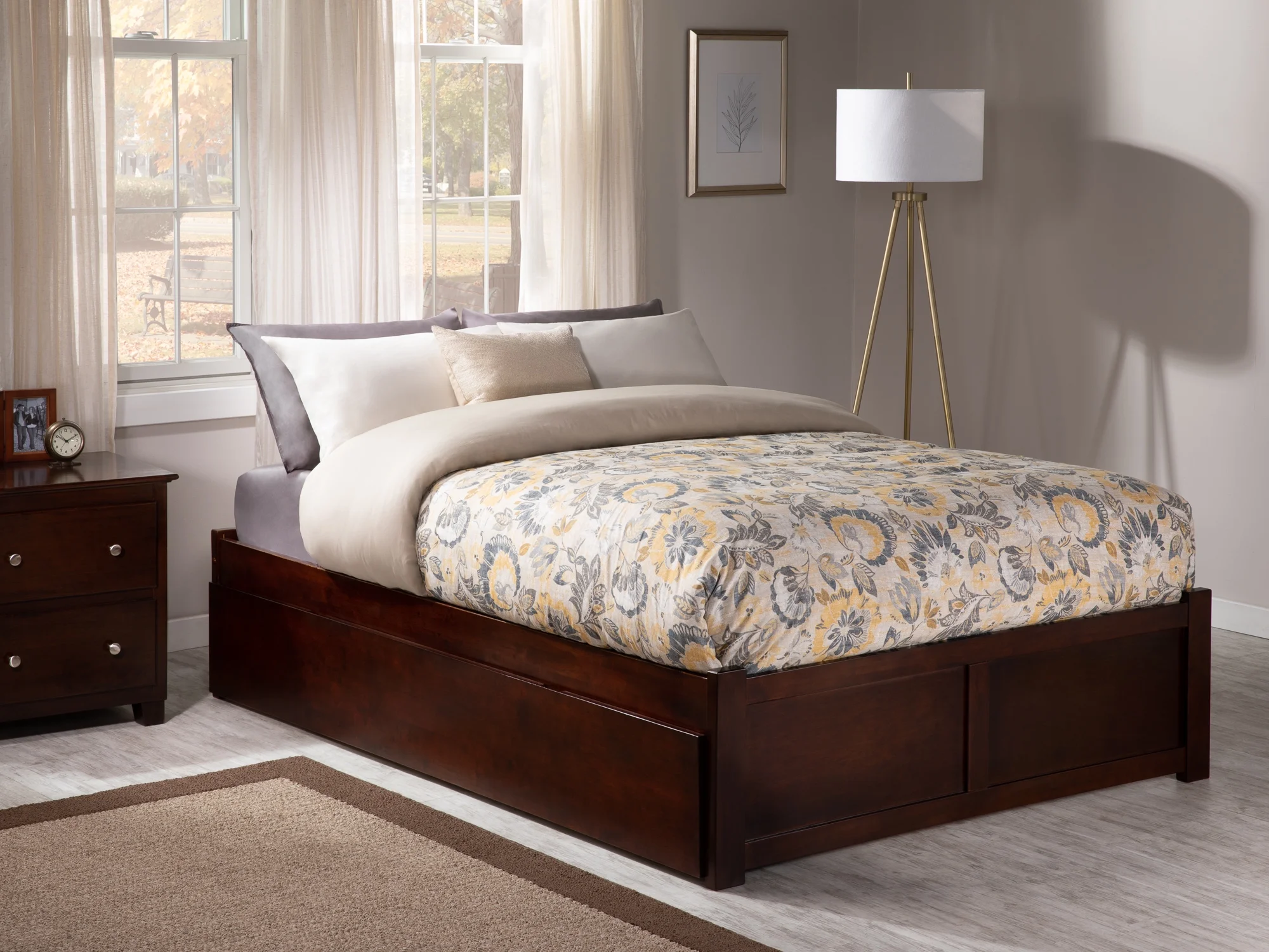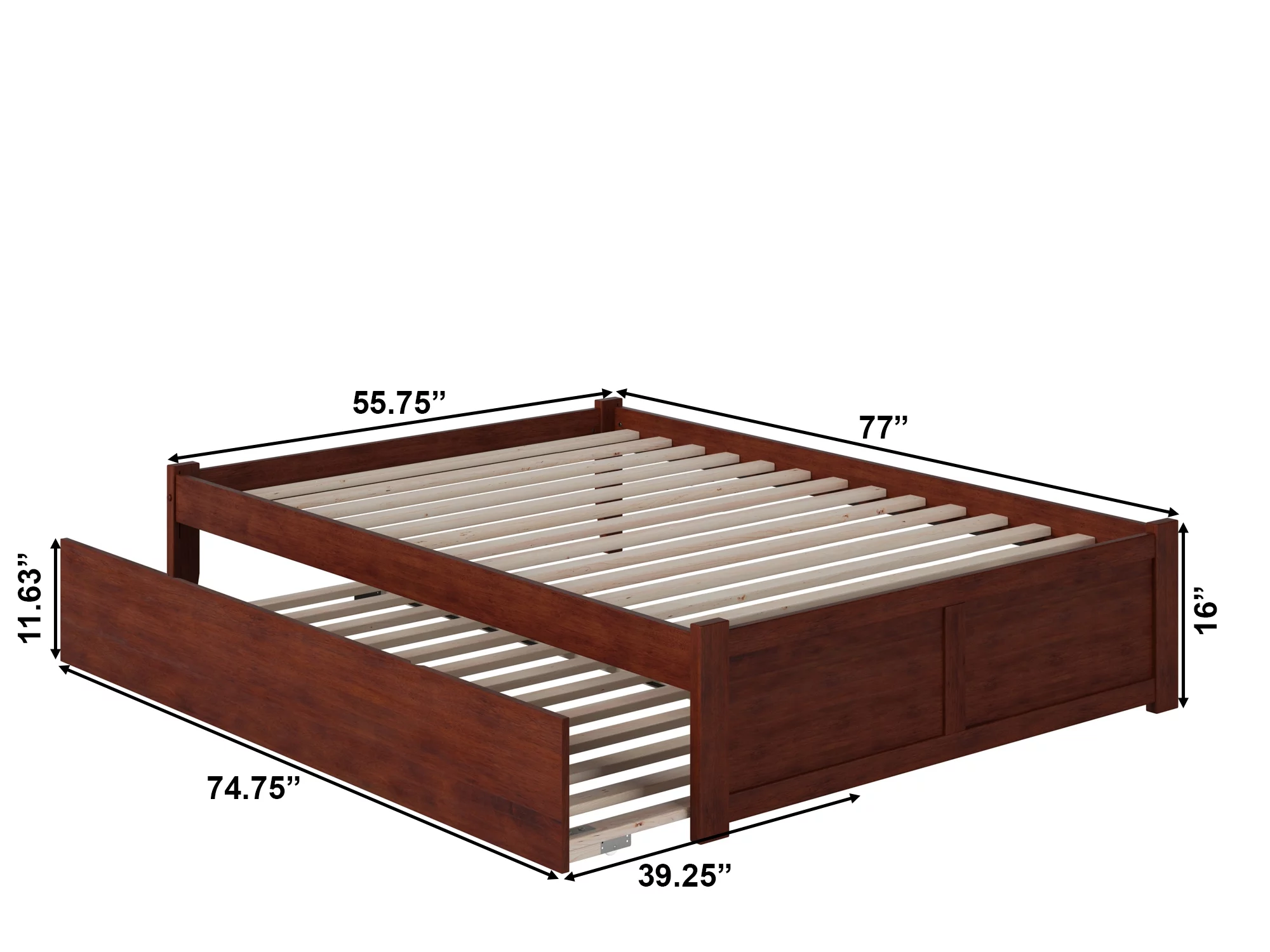 AFI Concord Full Solid Wood Platform Bed with Footboard & Twin Trundle in Walnut