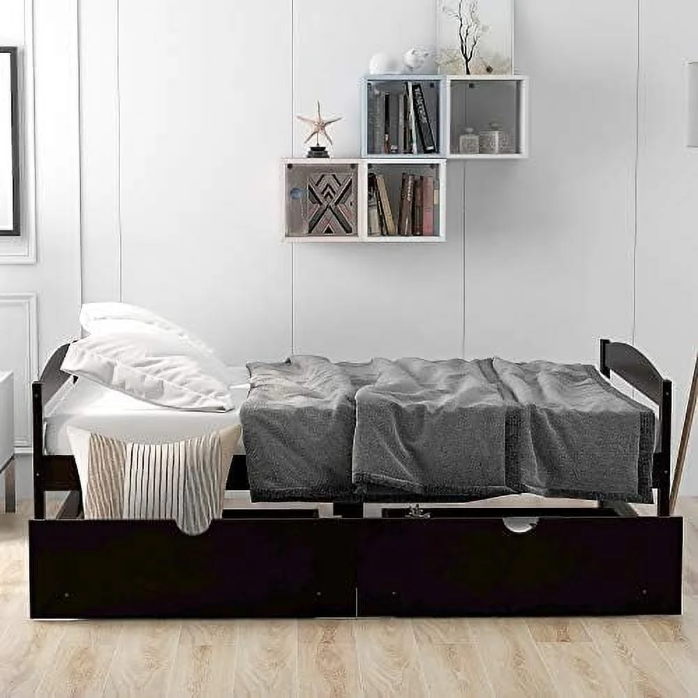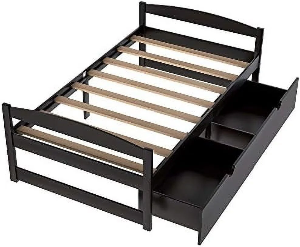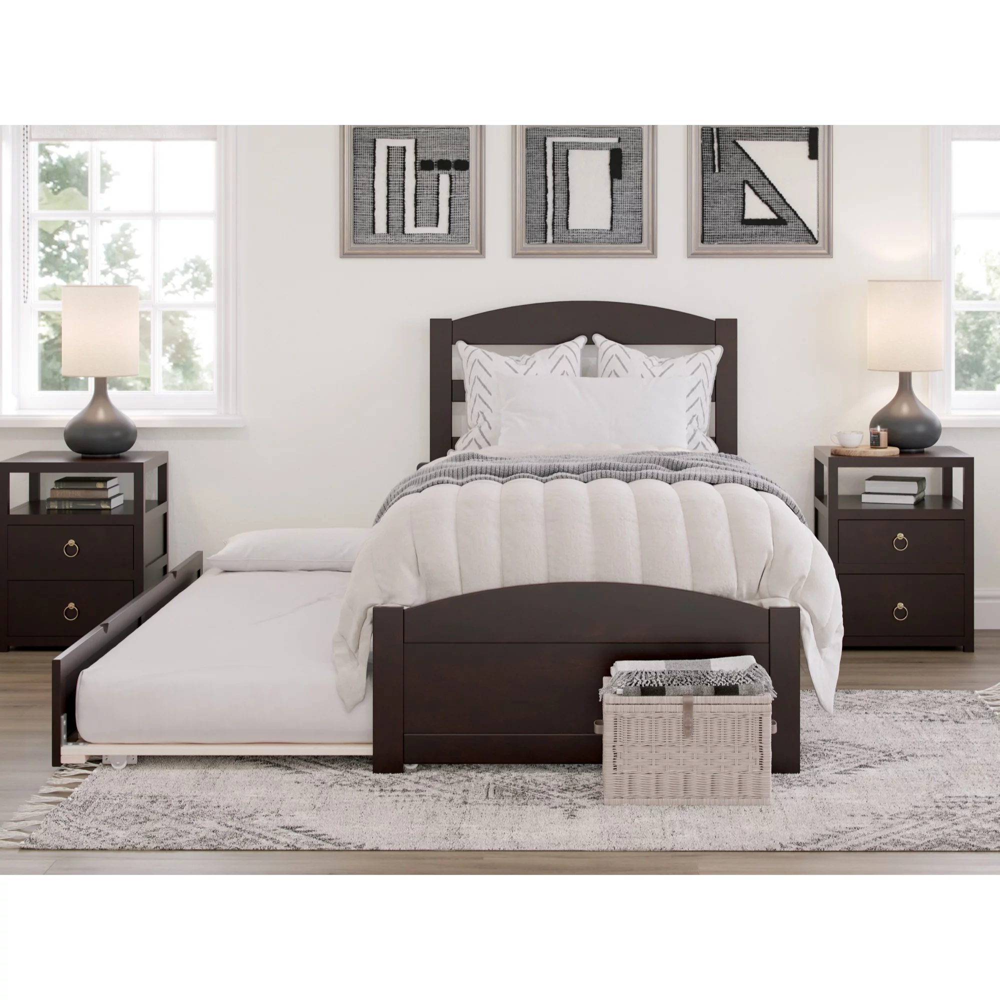 Warren, Solid Wood Platform Bed with Footboard and Twin Trundle, Twin, Espresso