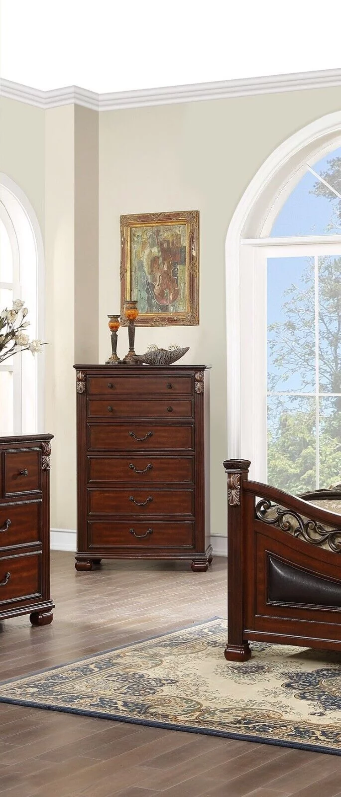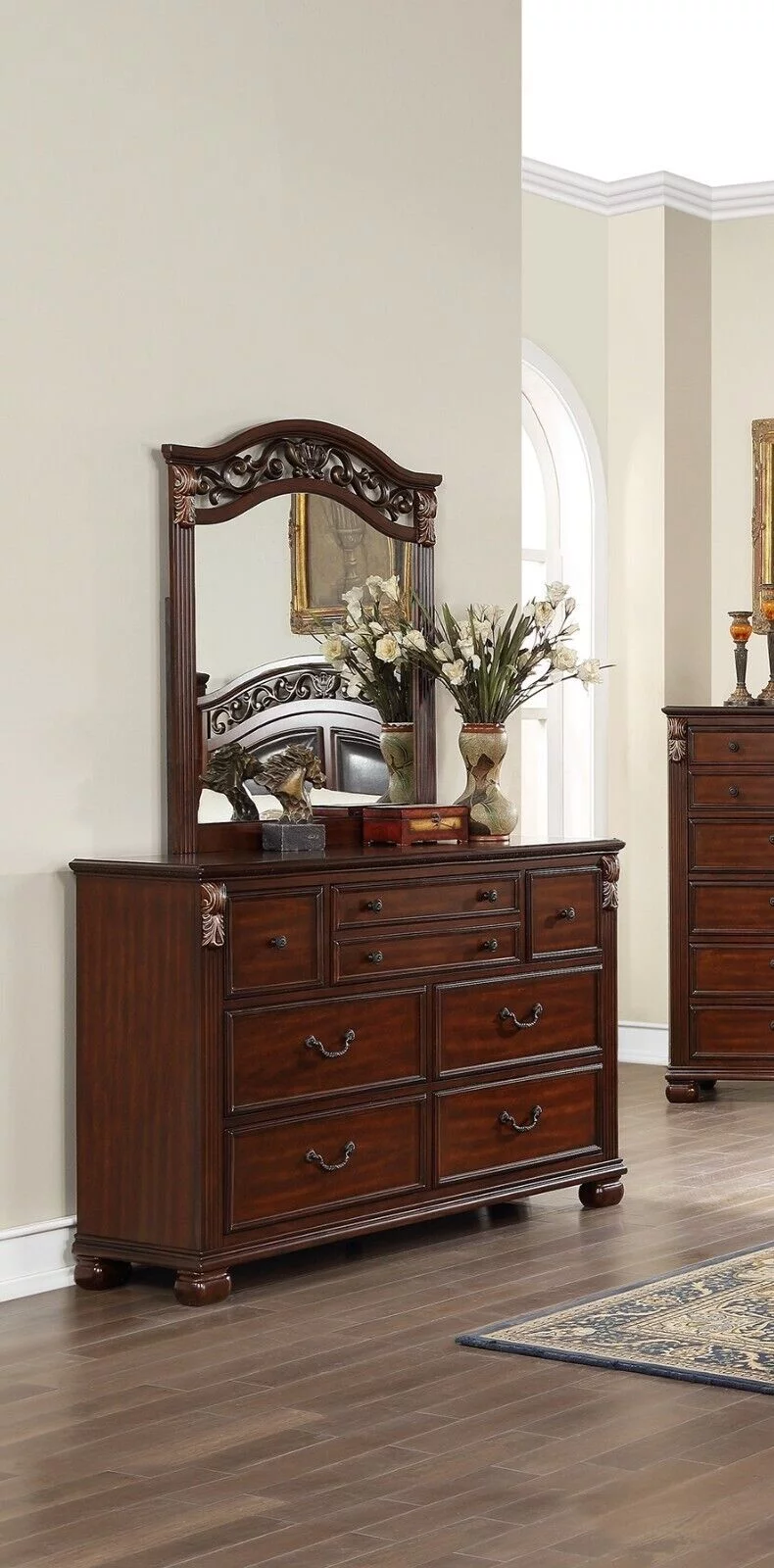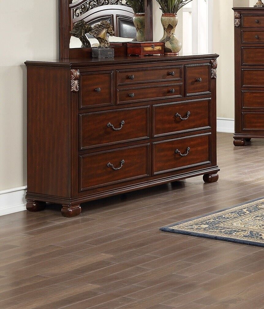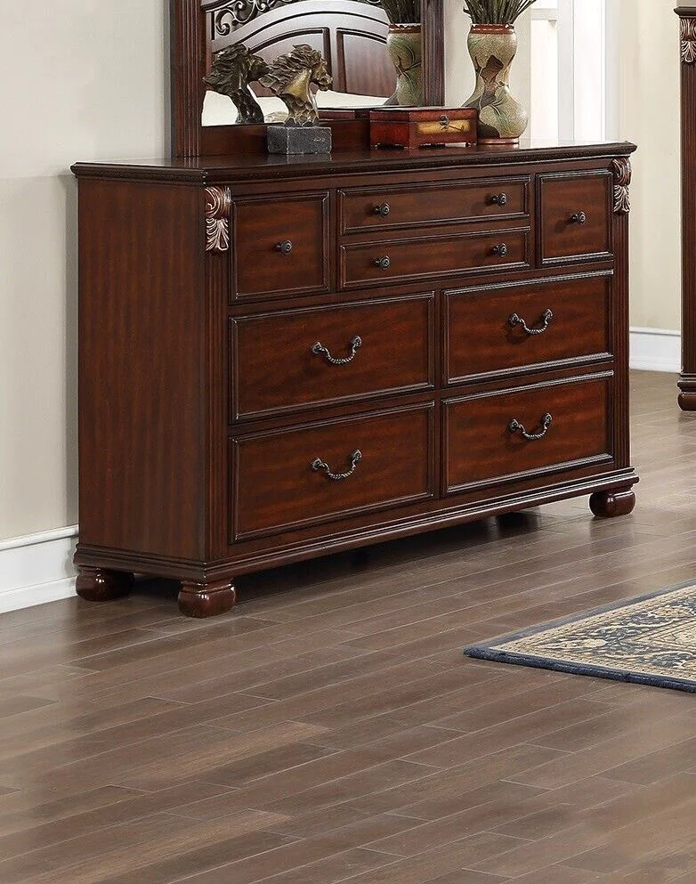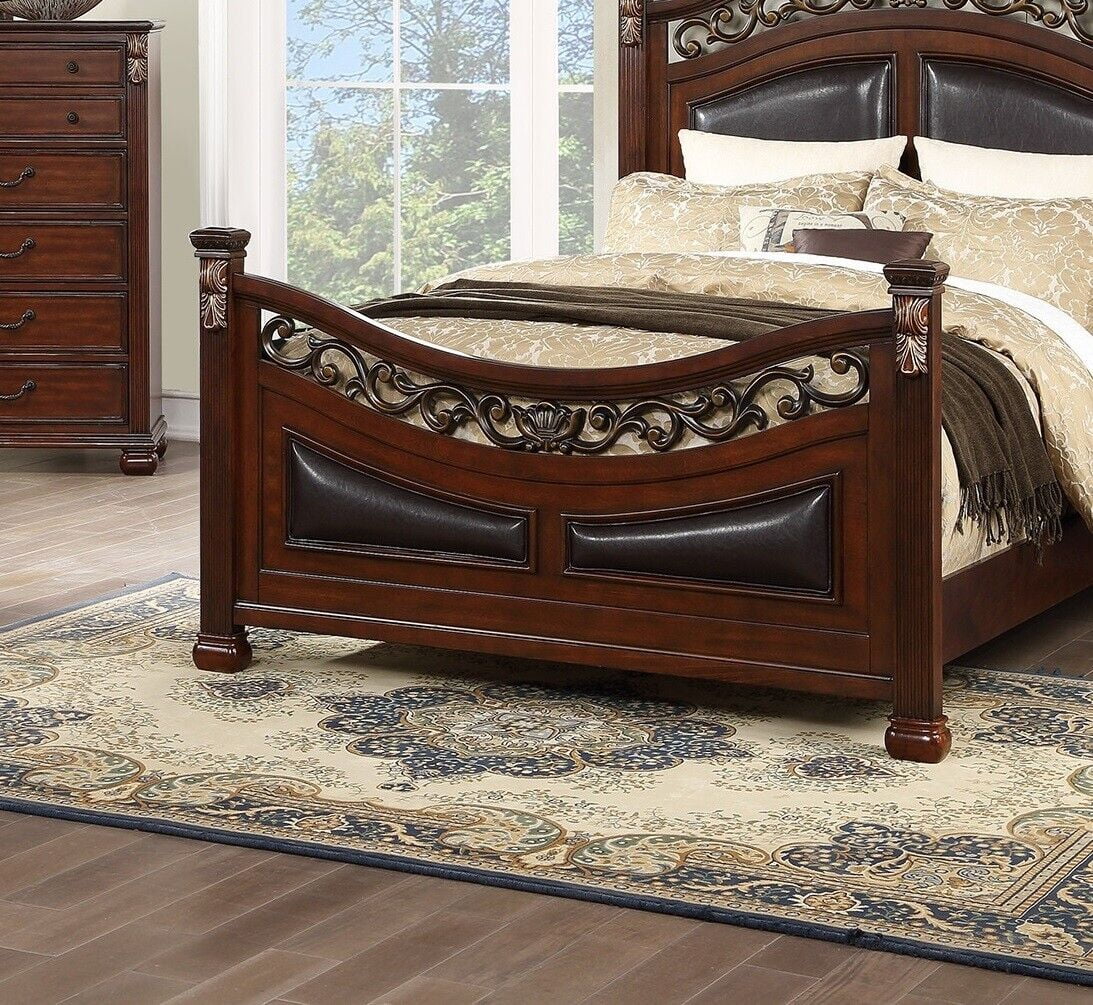 Royal Gorgeous Traditional Queen Bed Dresser Mirror Chest Wooden Brown Finish 4pc Set Bedroom Furniture