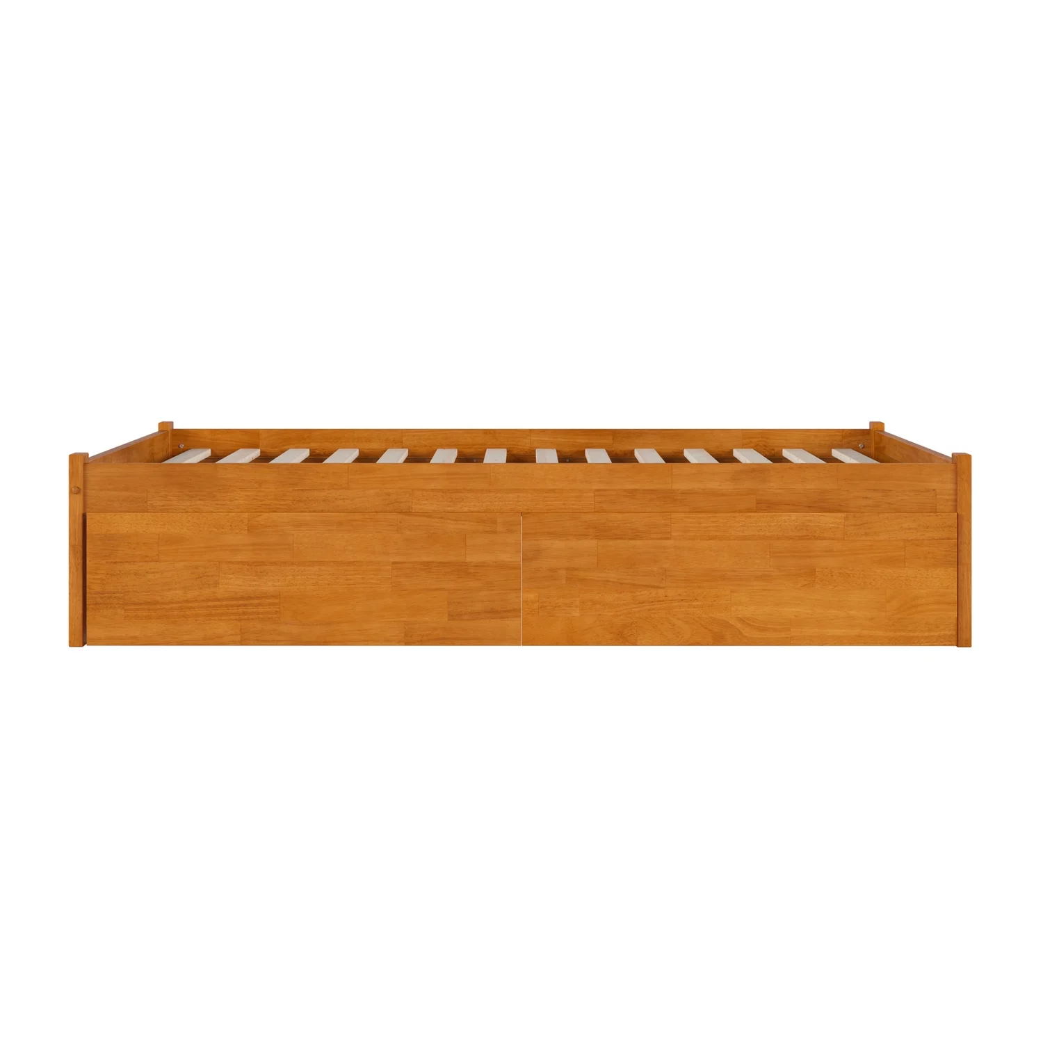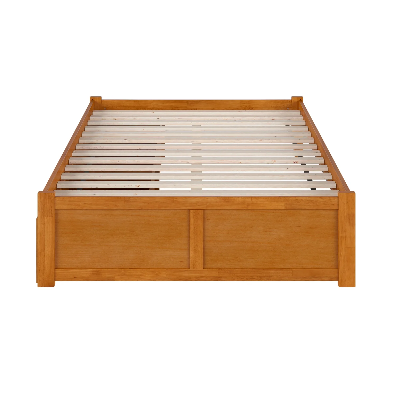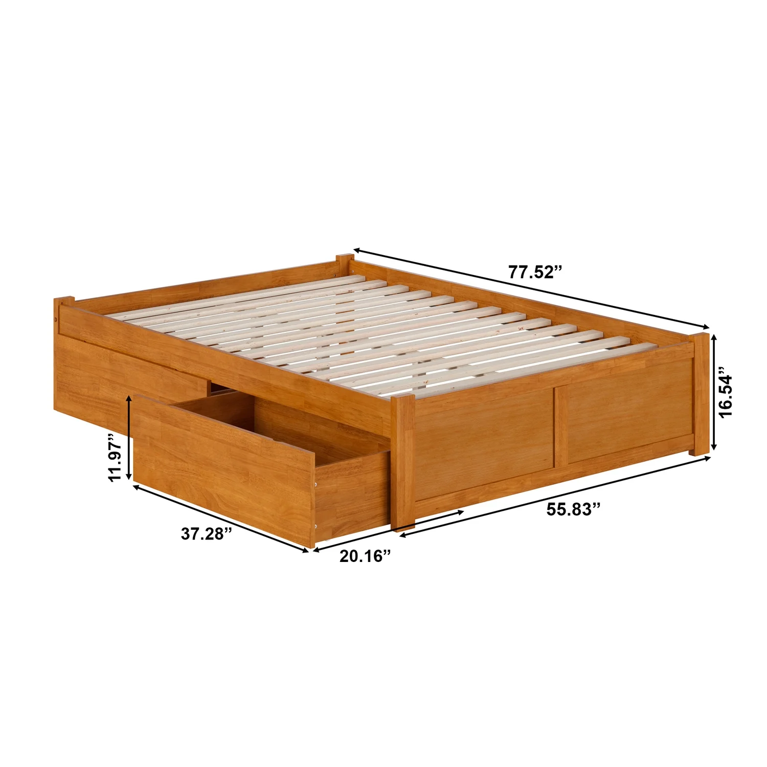 Concord Full Wood Platform Bed with Footboard and Drawers in Light Toffee