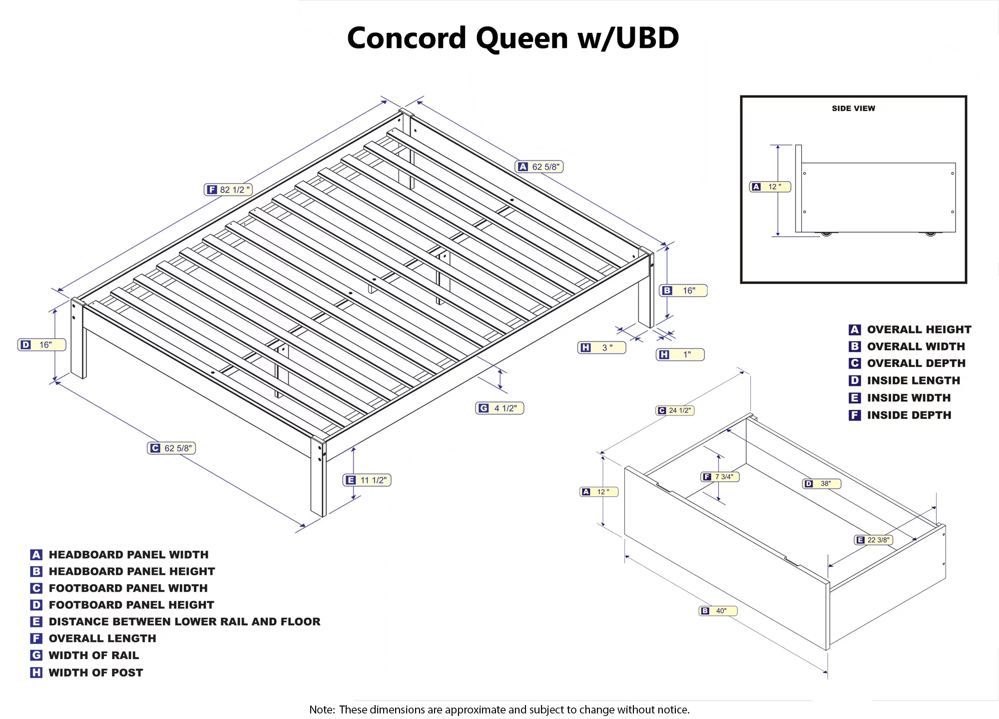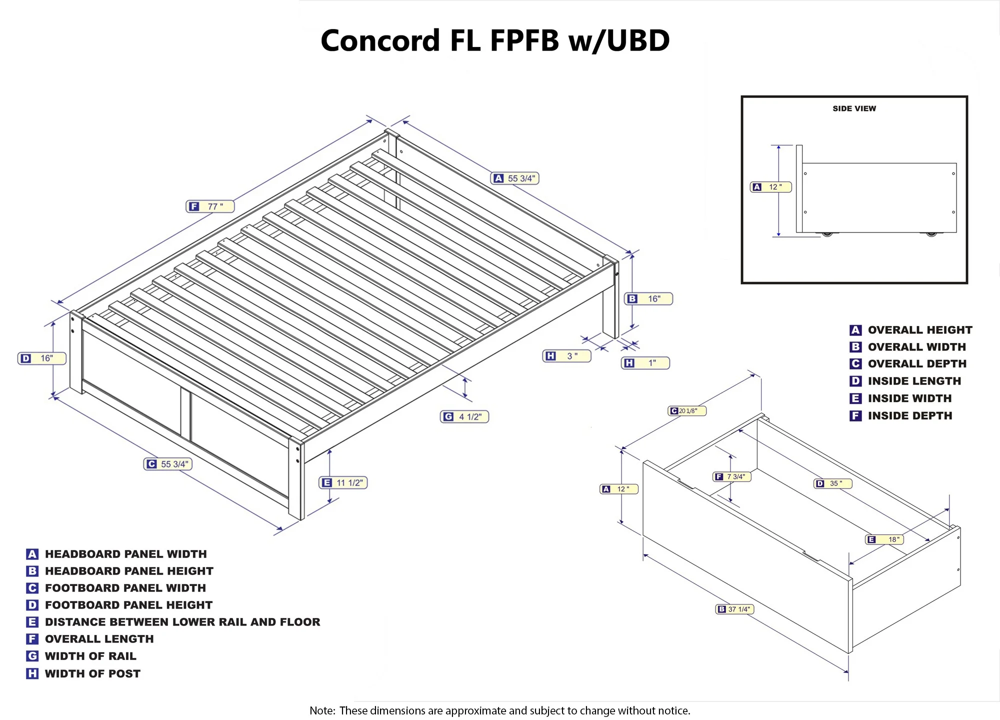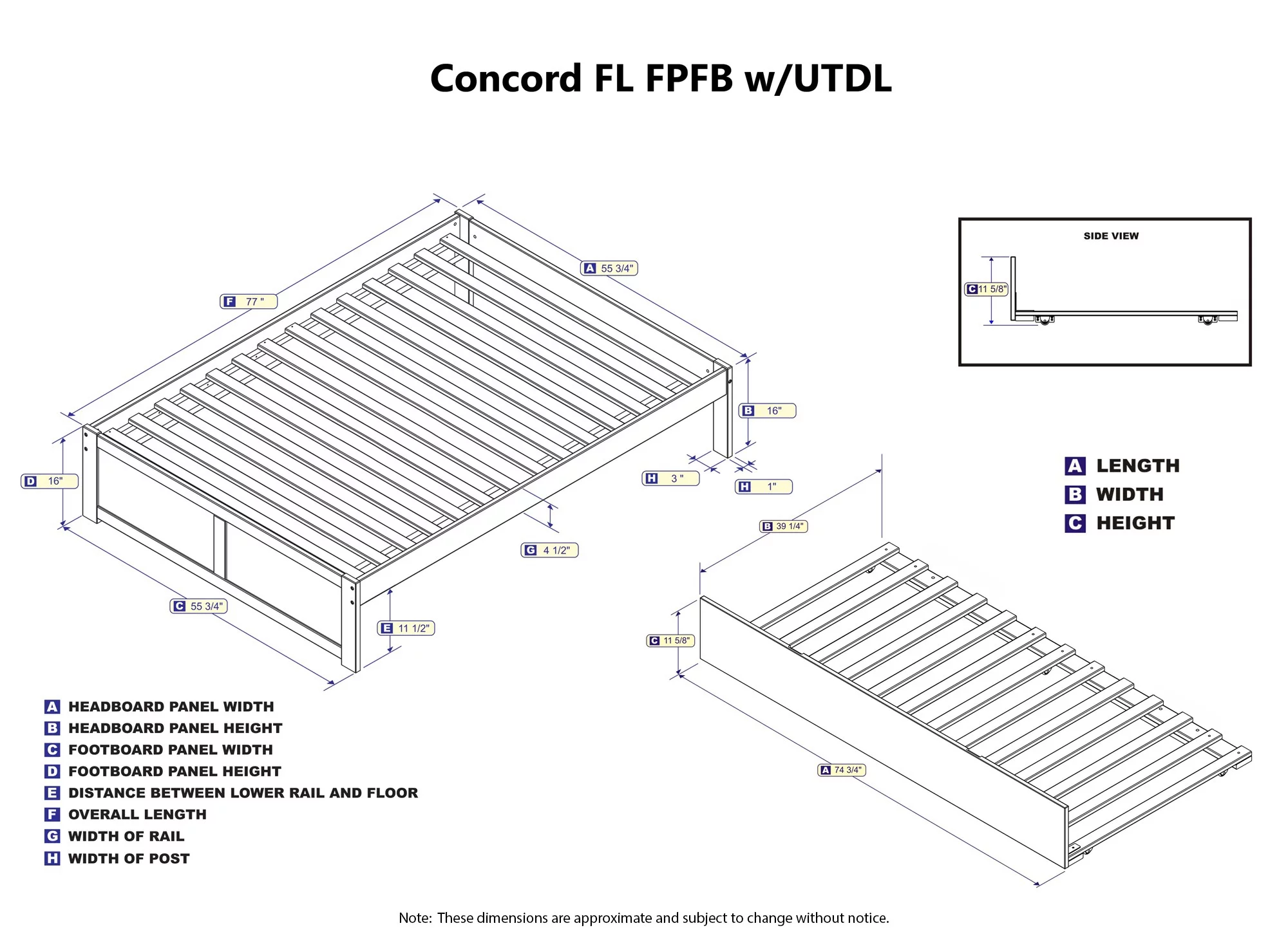 Concord Full Wood Platform Bed with Footboard and Drawers in Light Toffee
