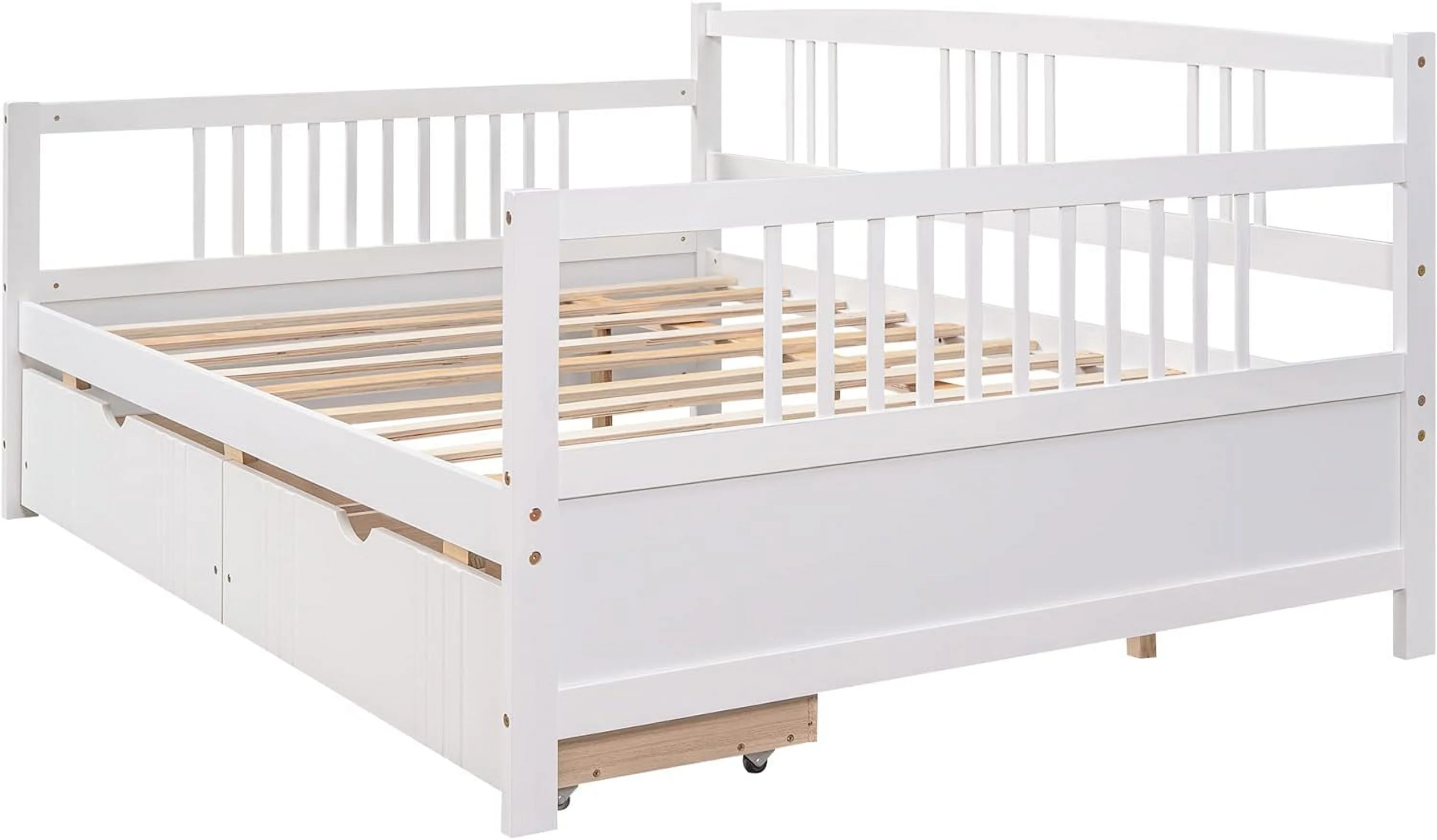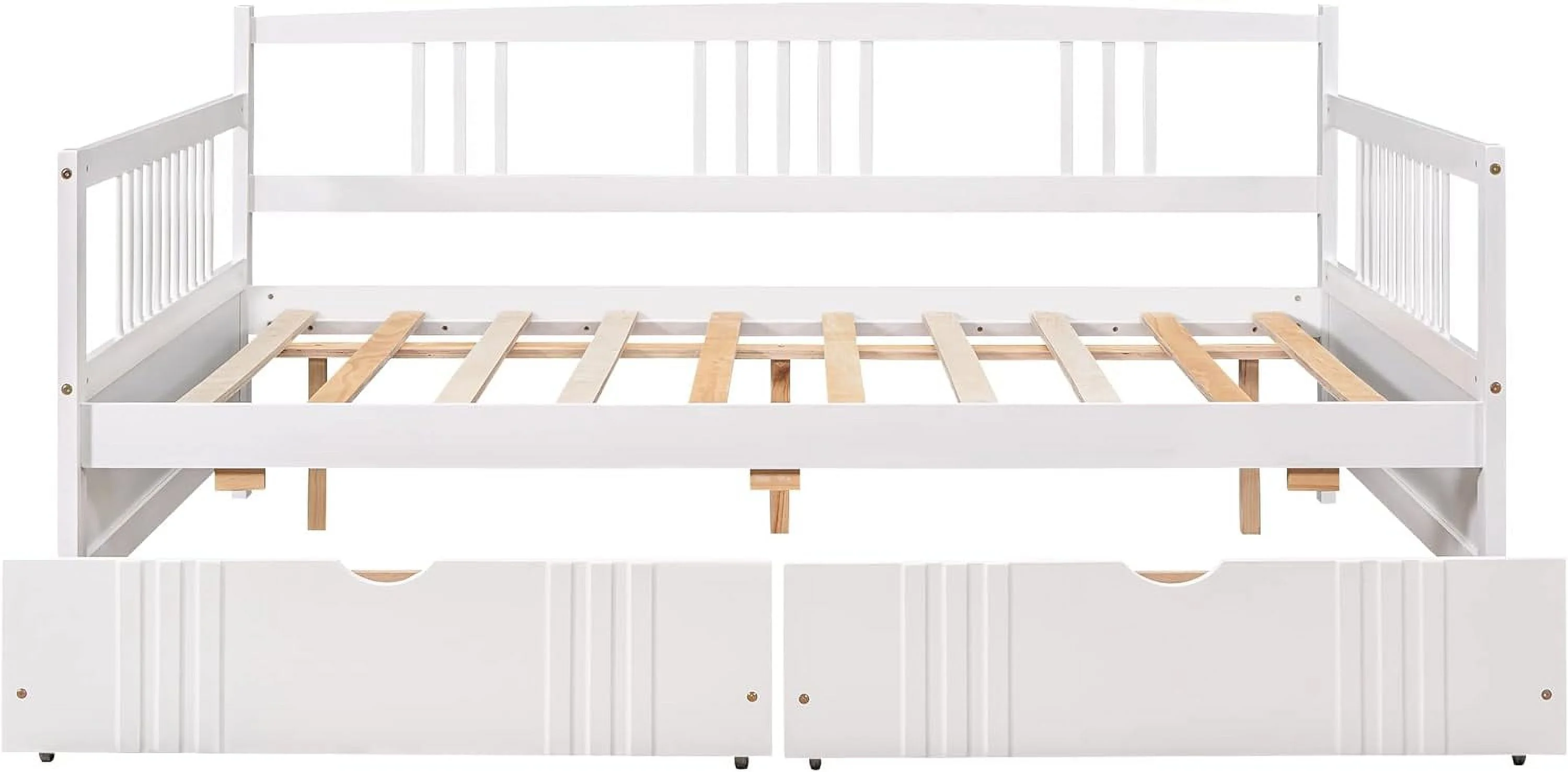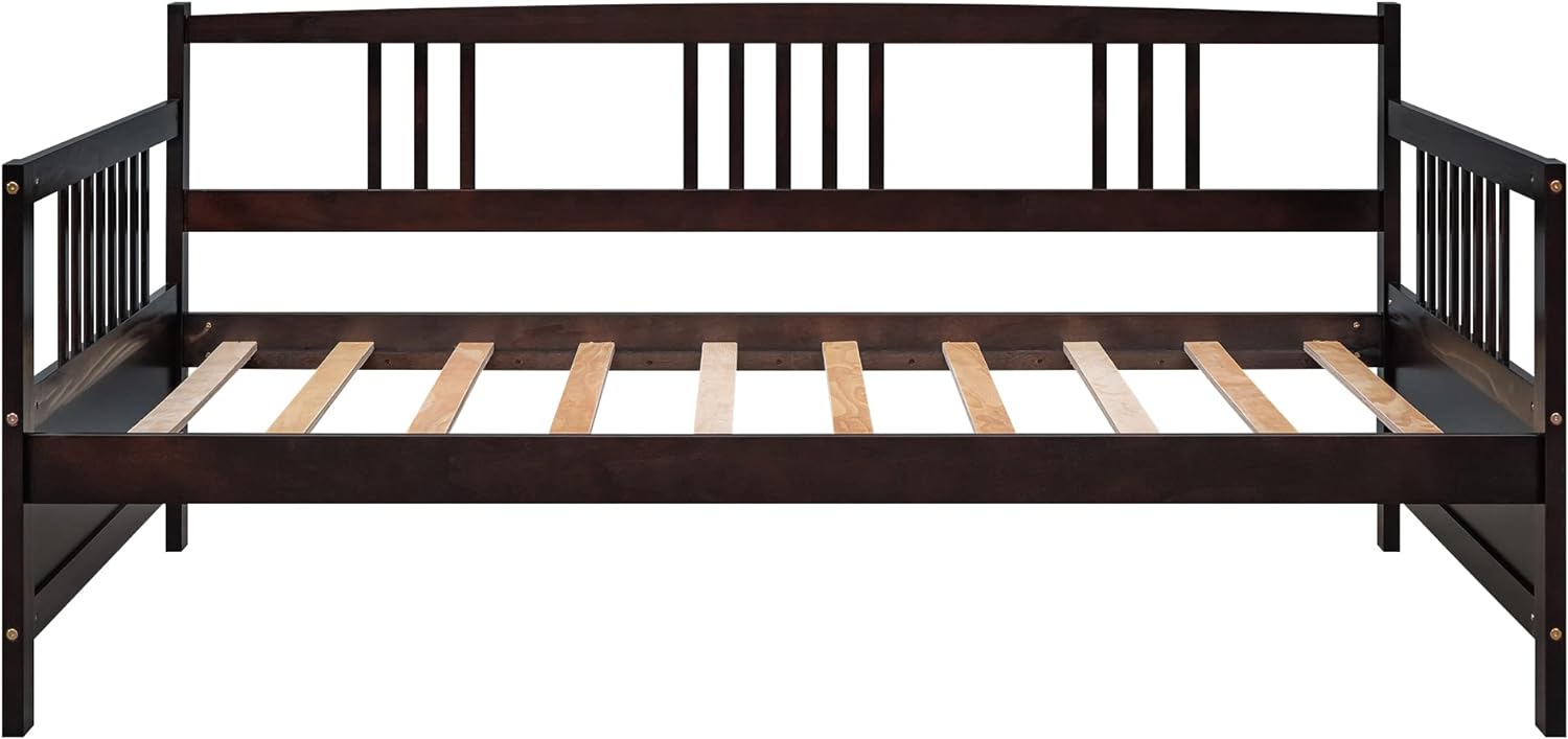 Daybed Frame, Wood Daybed With Rails, Sofa Bed With Slat Support, Platform o Box Sprig, Espresso