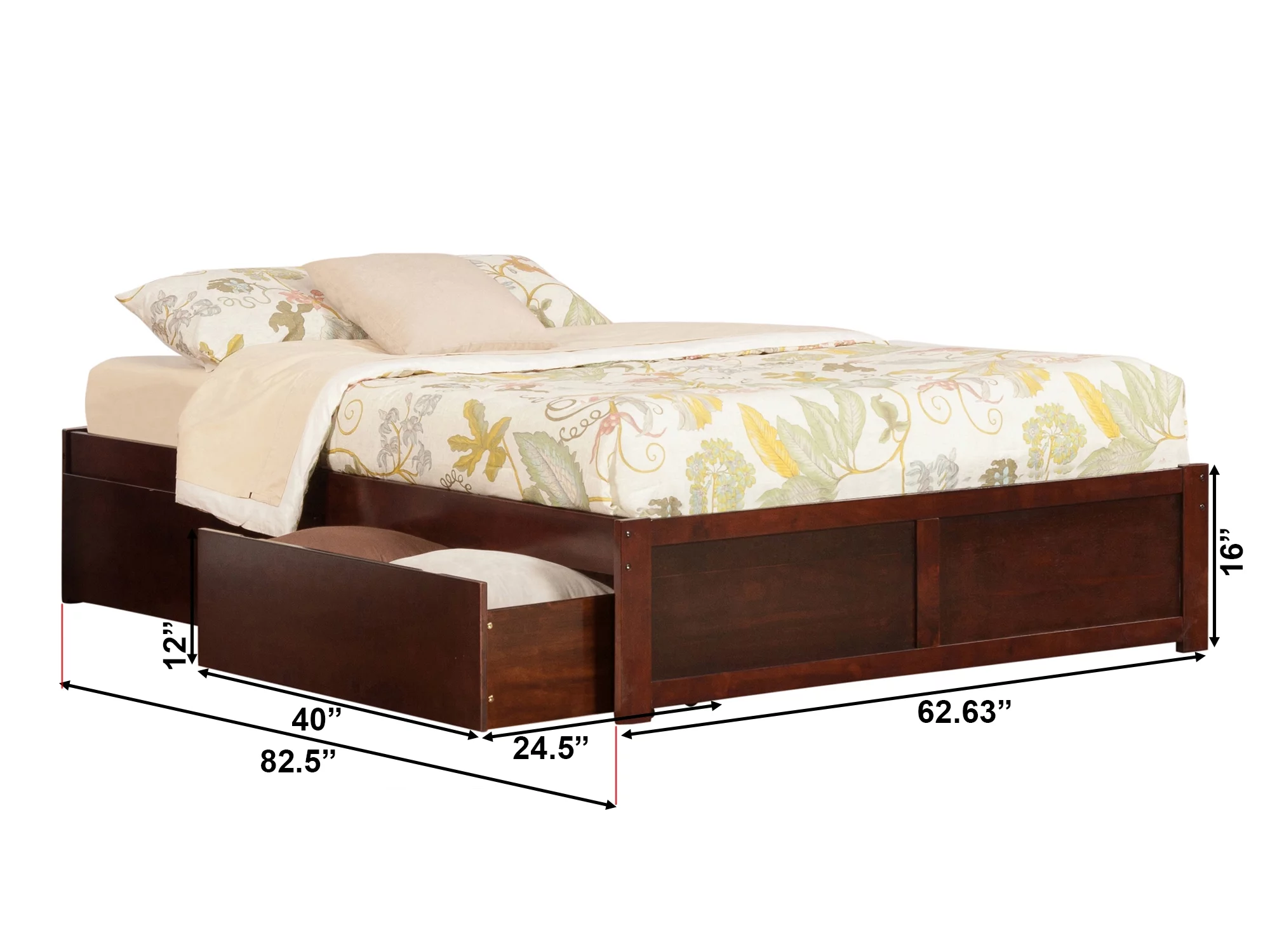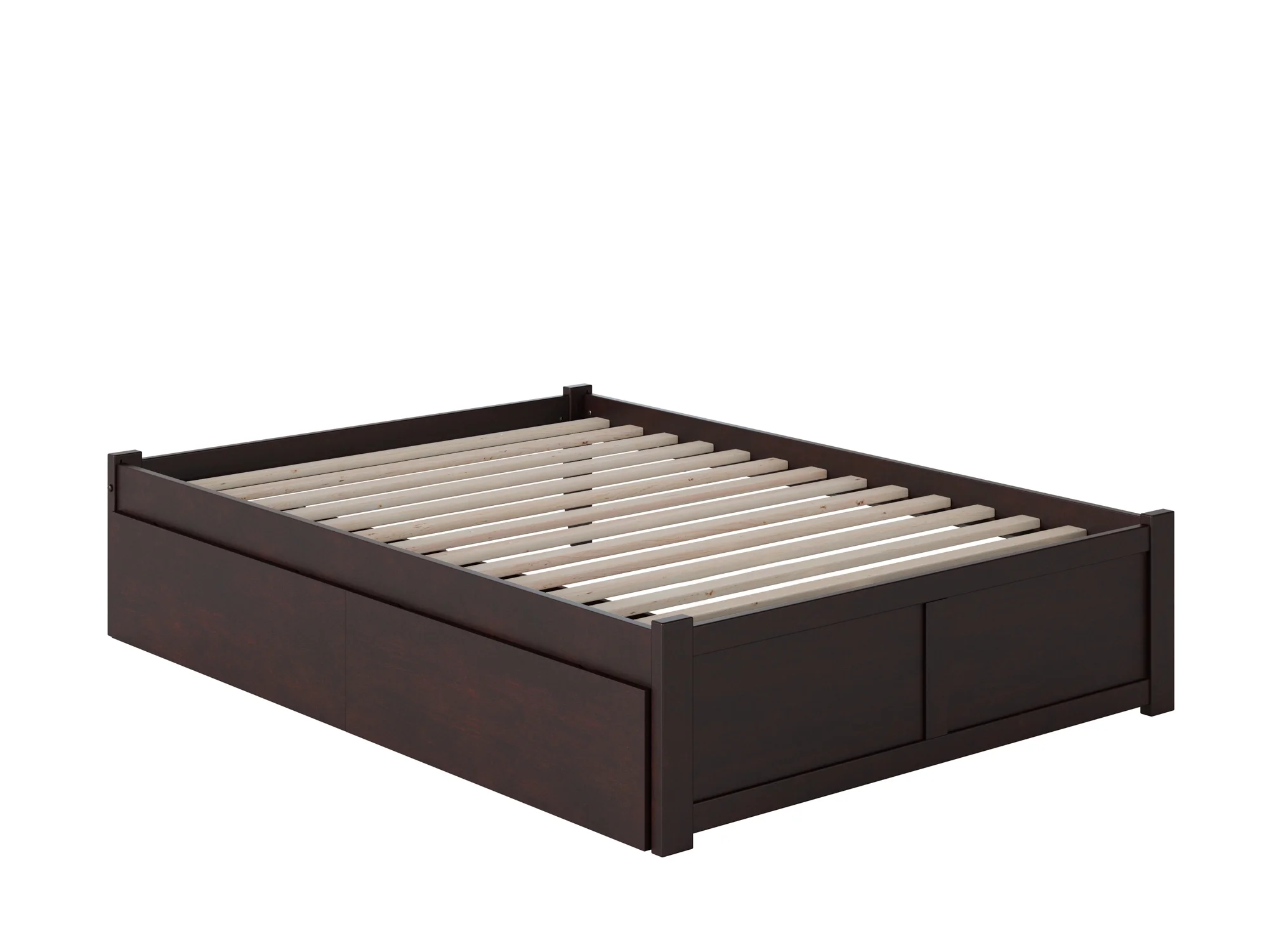 AFI Concord Full Solid Wood Platform Bed with Footboard & 2 Storage Drawers in Espresso