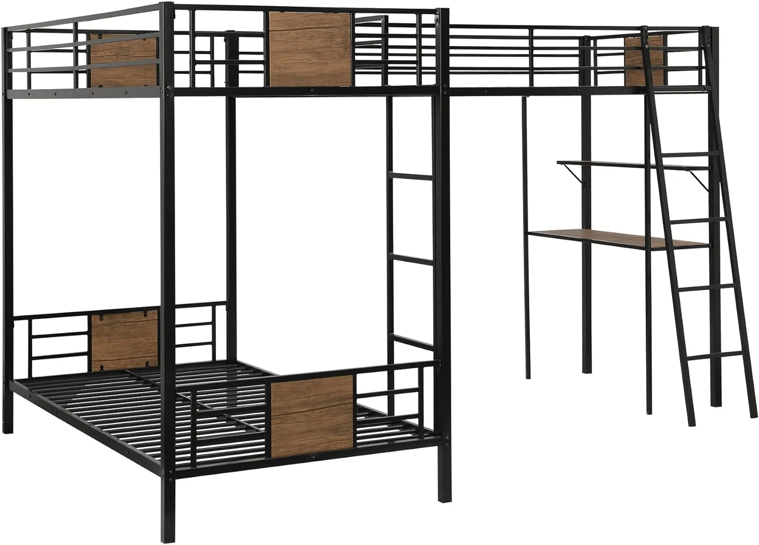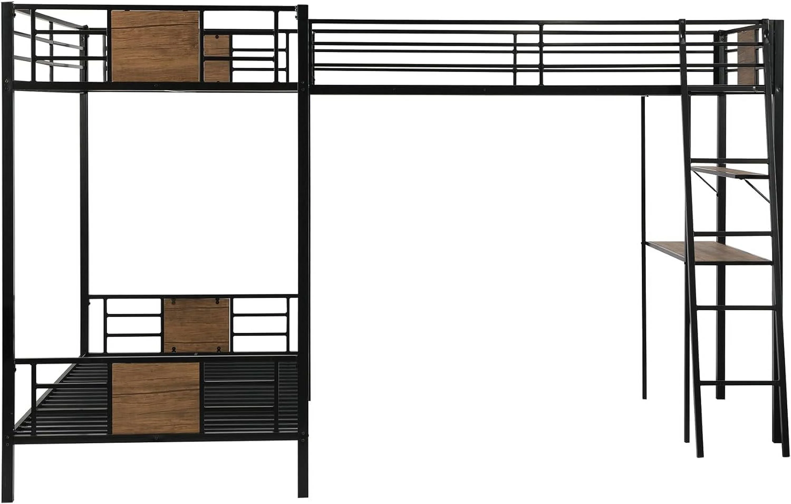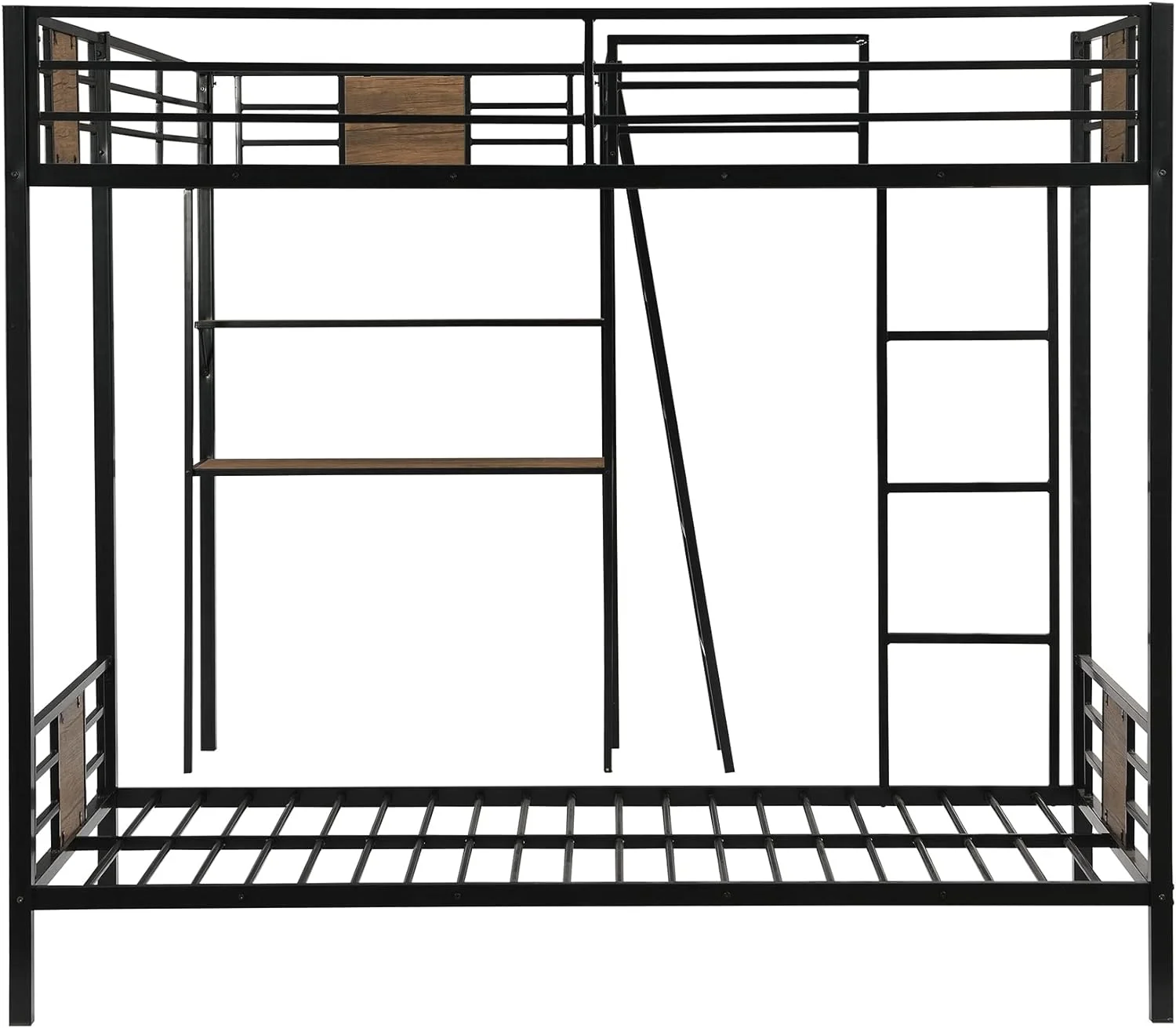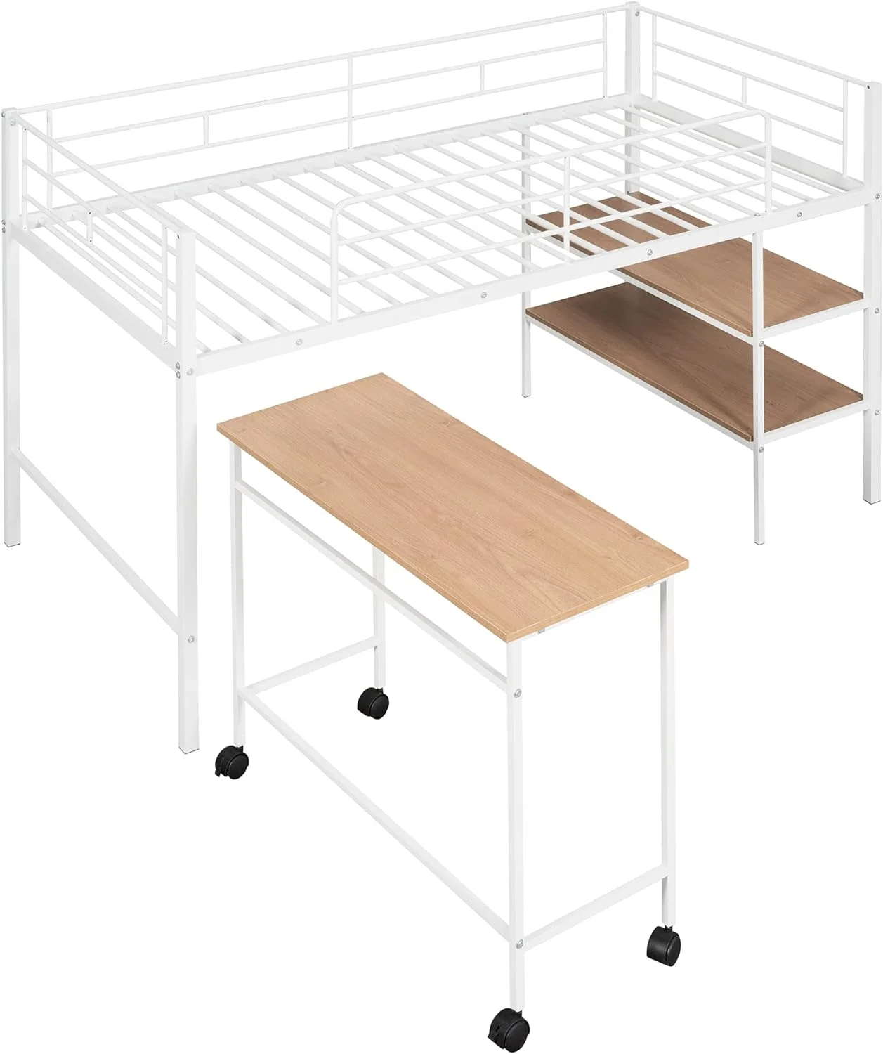 Metal Buk Bed With Rollig Desk, Ladder, Ad 2 Shelves, Size Buk Bed Space-Savig Loft Bed For Boys & Girls Tees