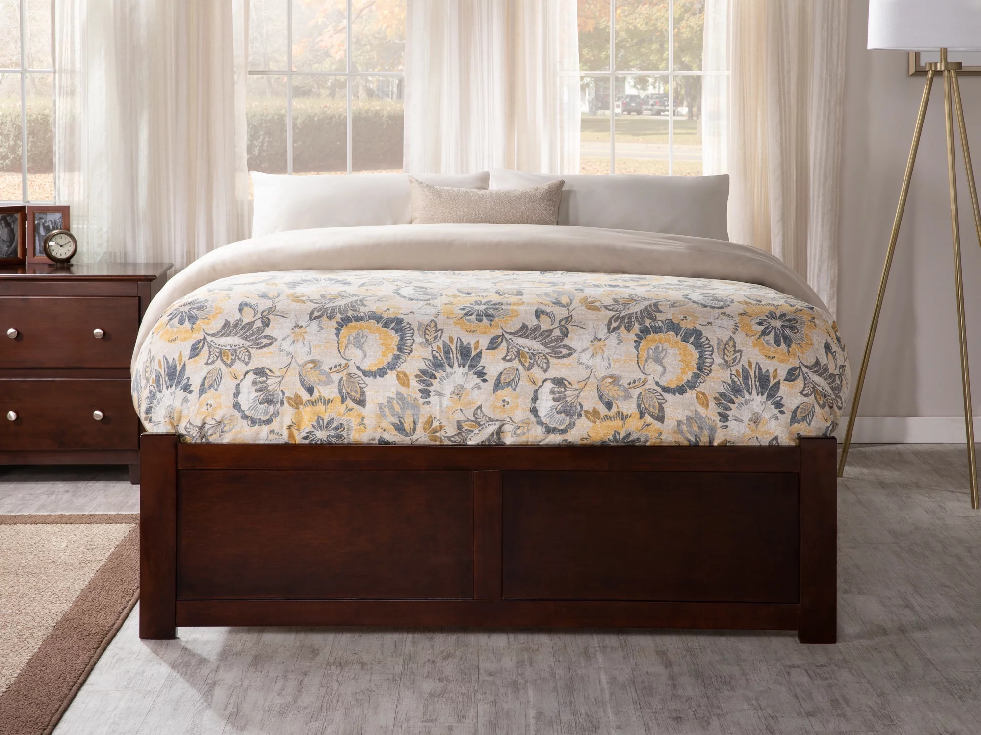 AFI Concord Queen Solid Wood Platform Bed with Footboard & 2 Storage Drawers in Walnut