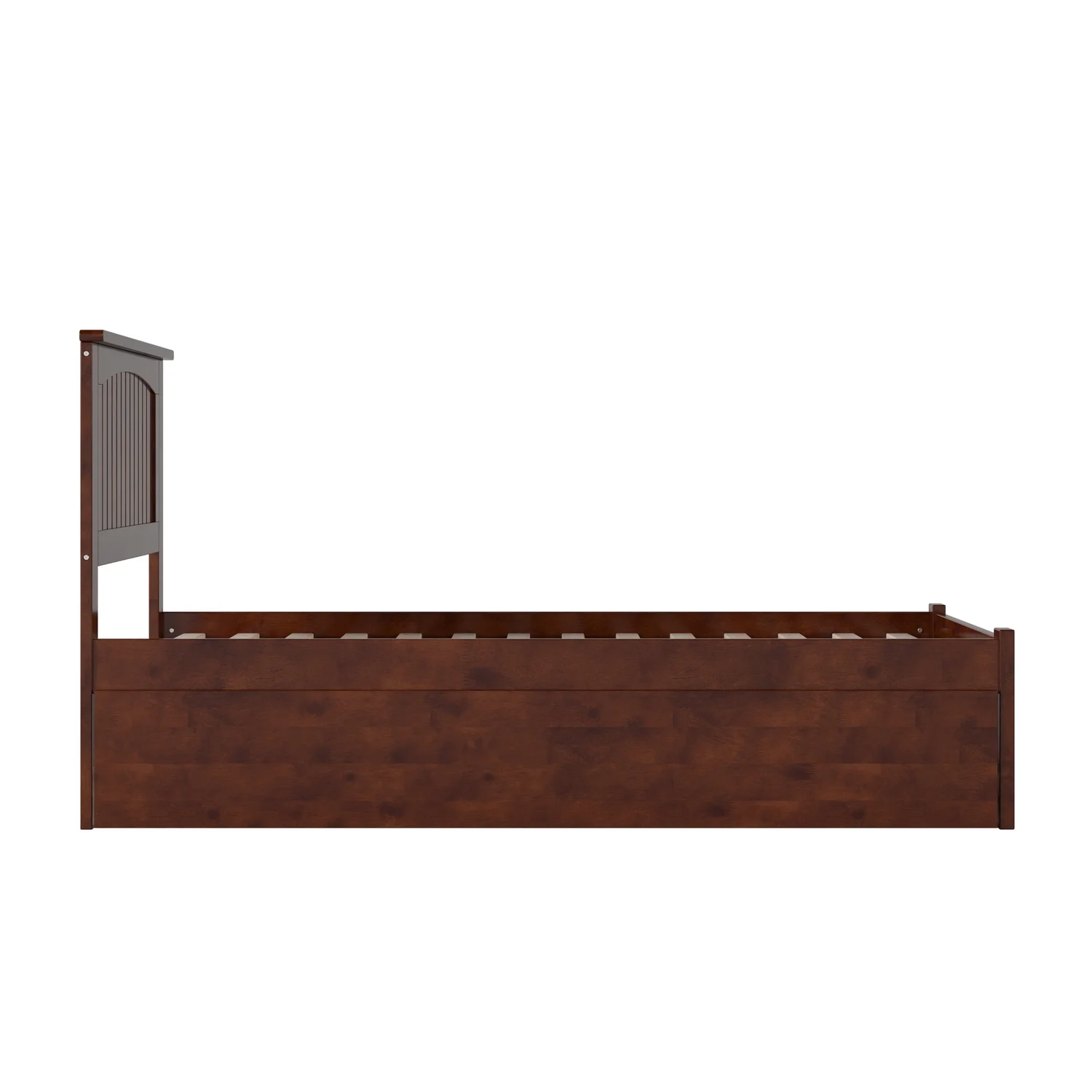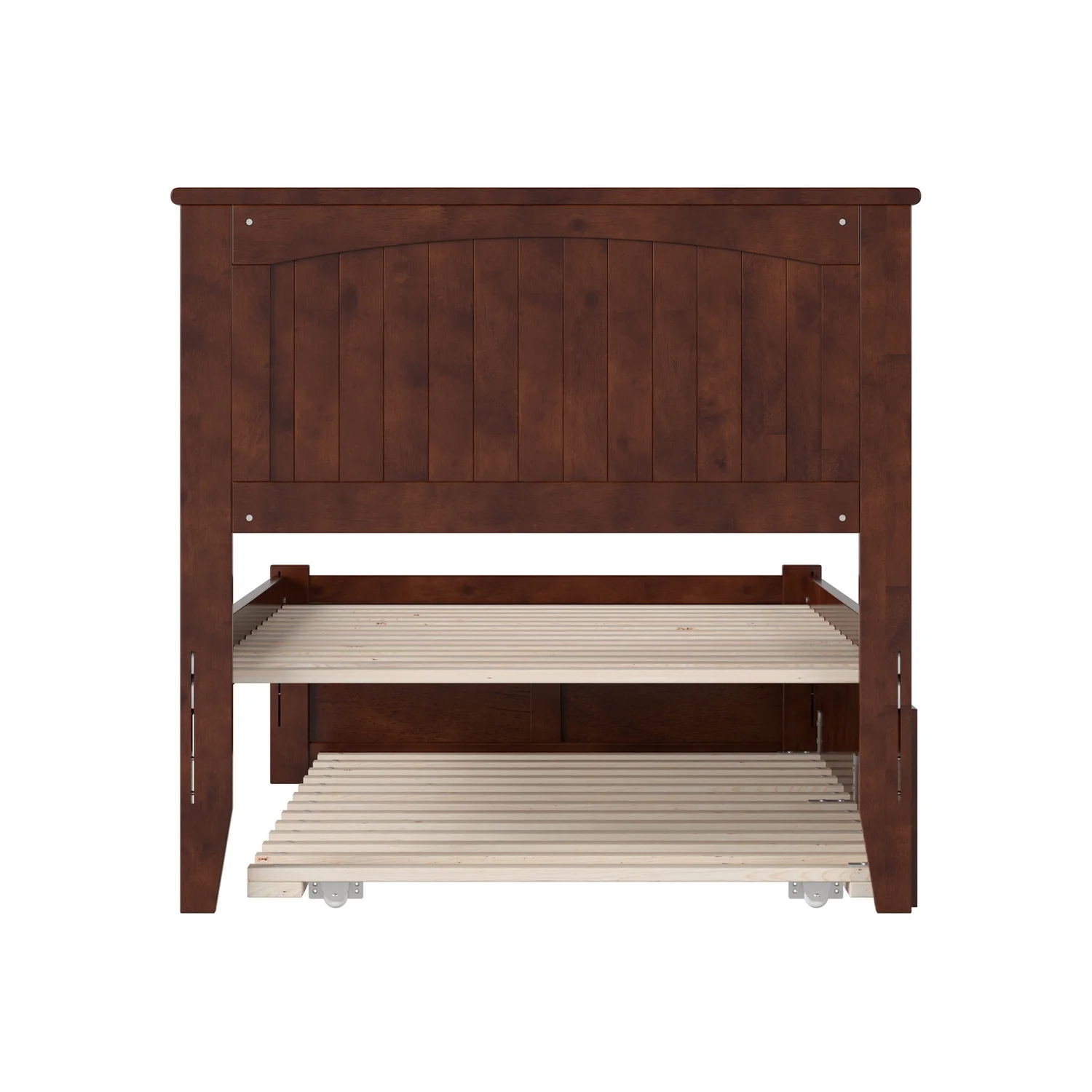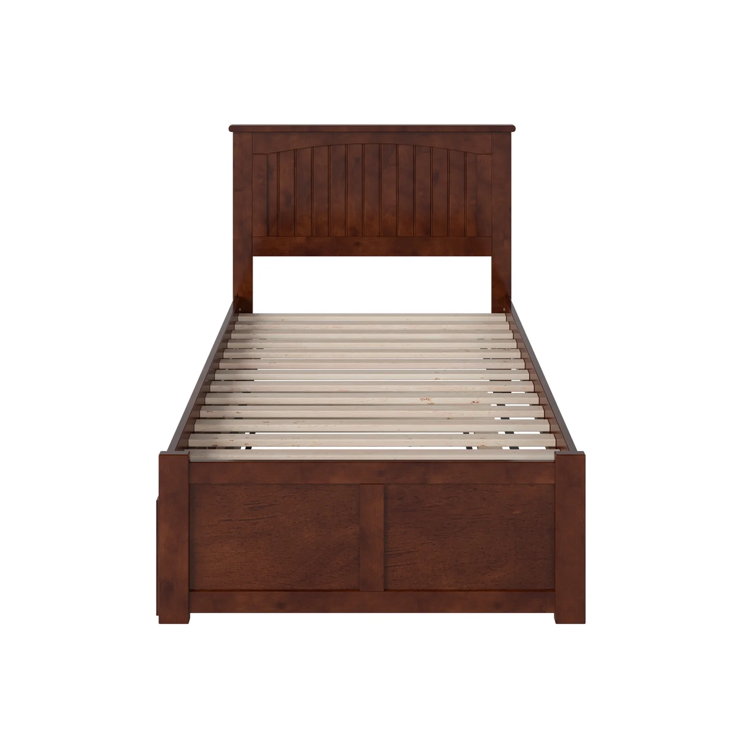 Nantucket Twin Wood Platform Bed with Footboard and Twin Trundle in Walnut