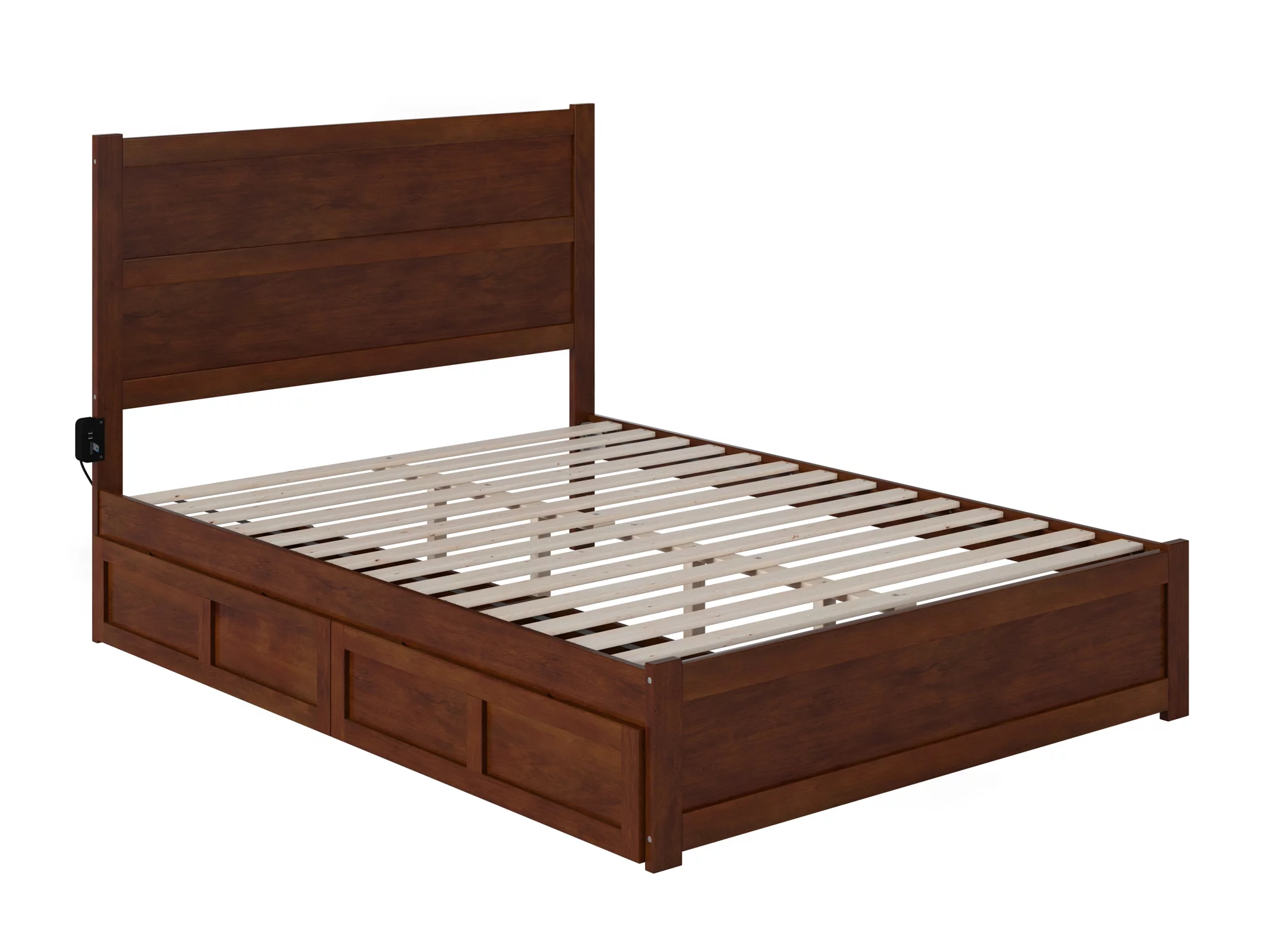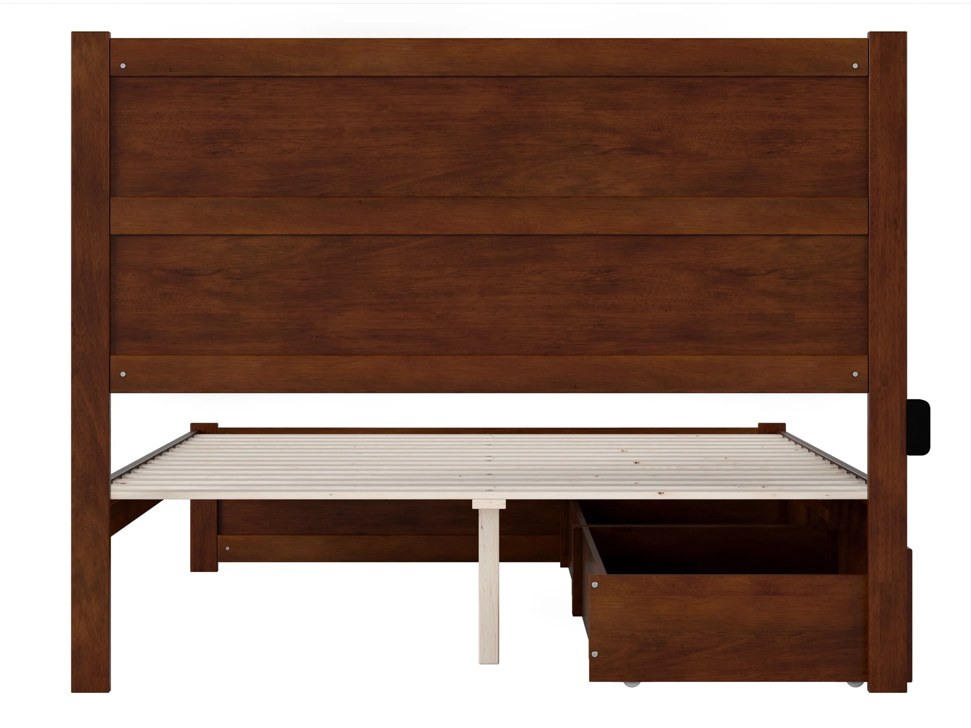 AFI NoHo Queen Wood Platform Bed with Headboard Footboard & 2 Storage Drawers, Walnut