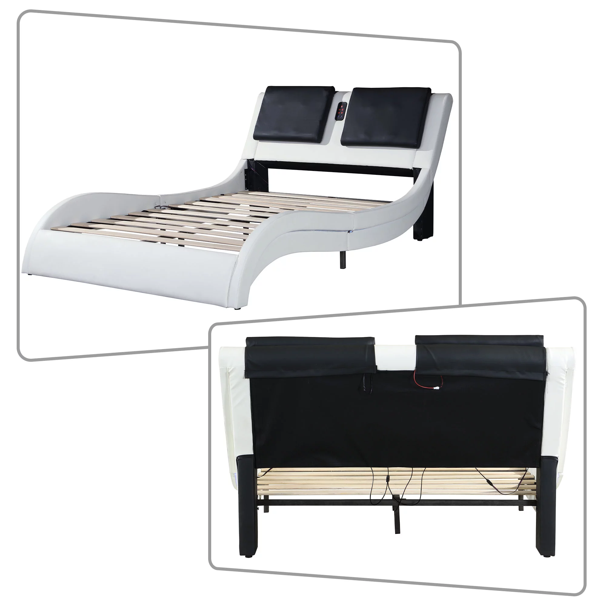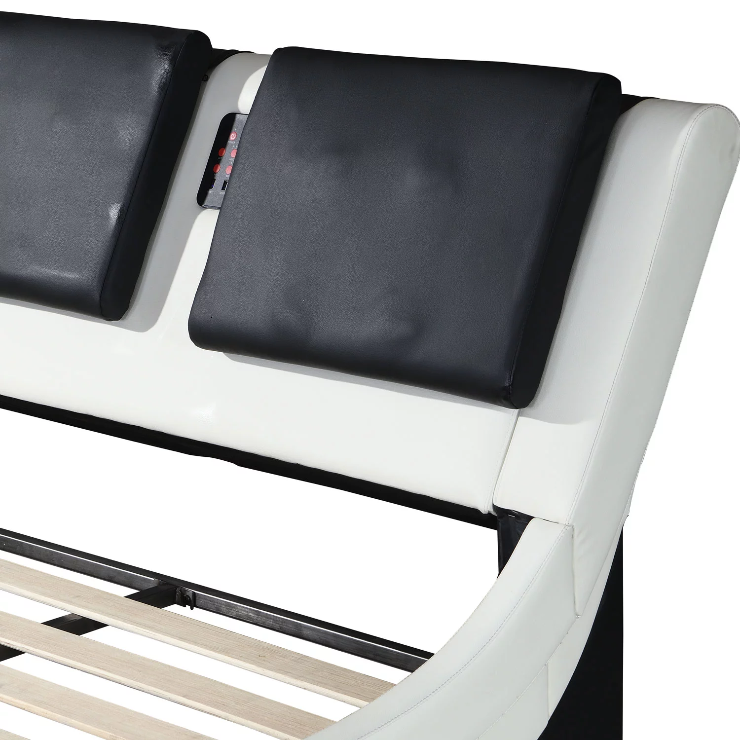 Modern Multifuntional King Size Faux Leather Upholstered Platform Bed with Curved Design and Wood Slat Support, White