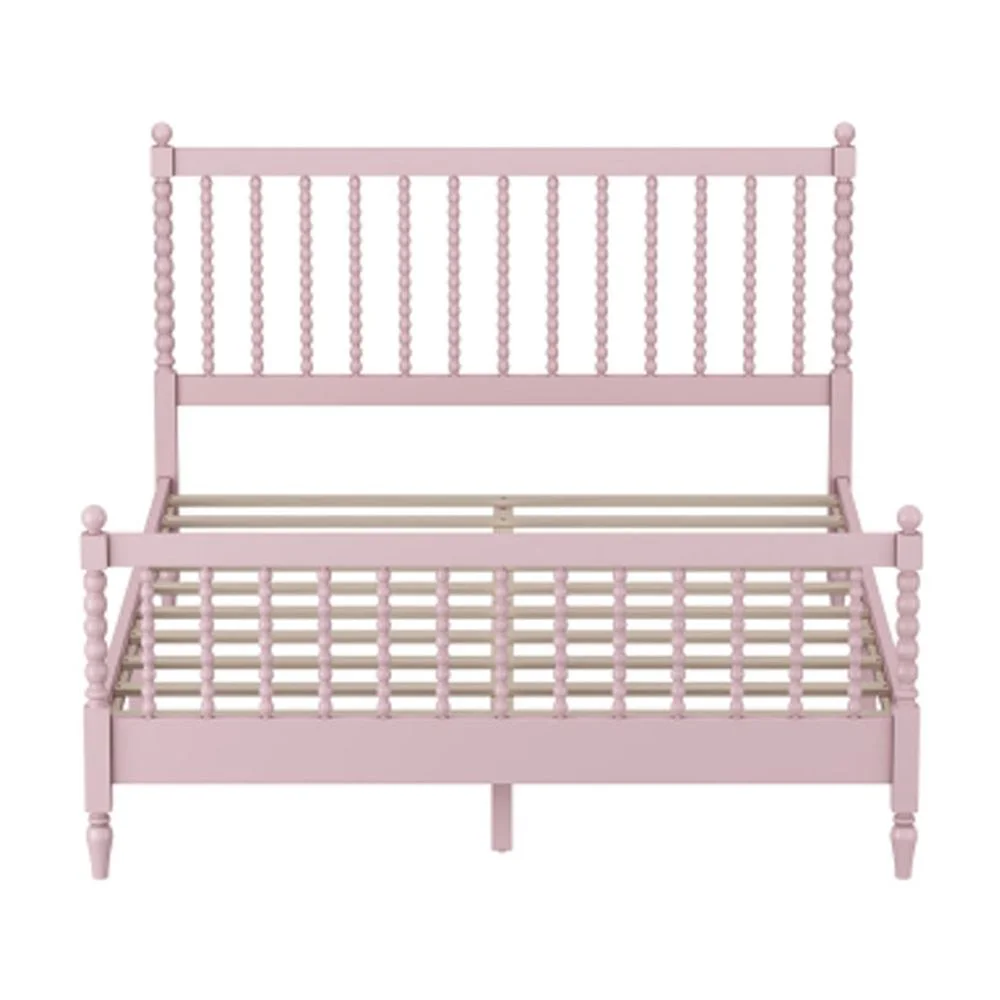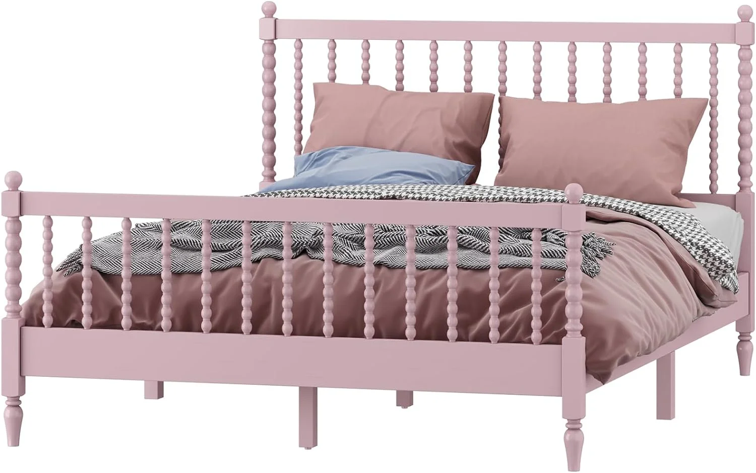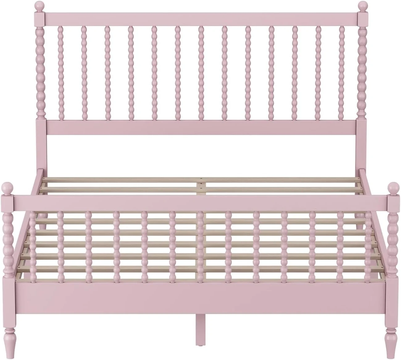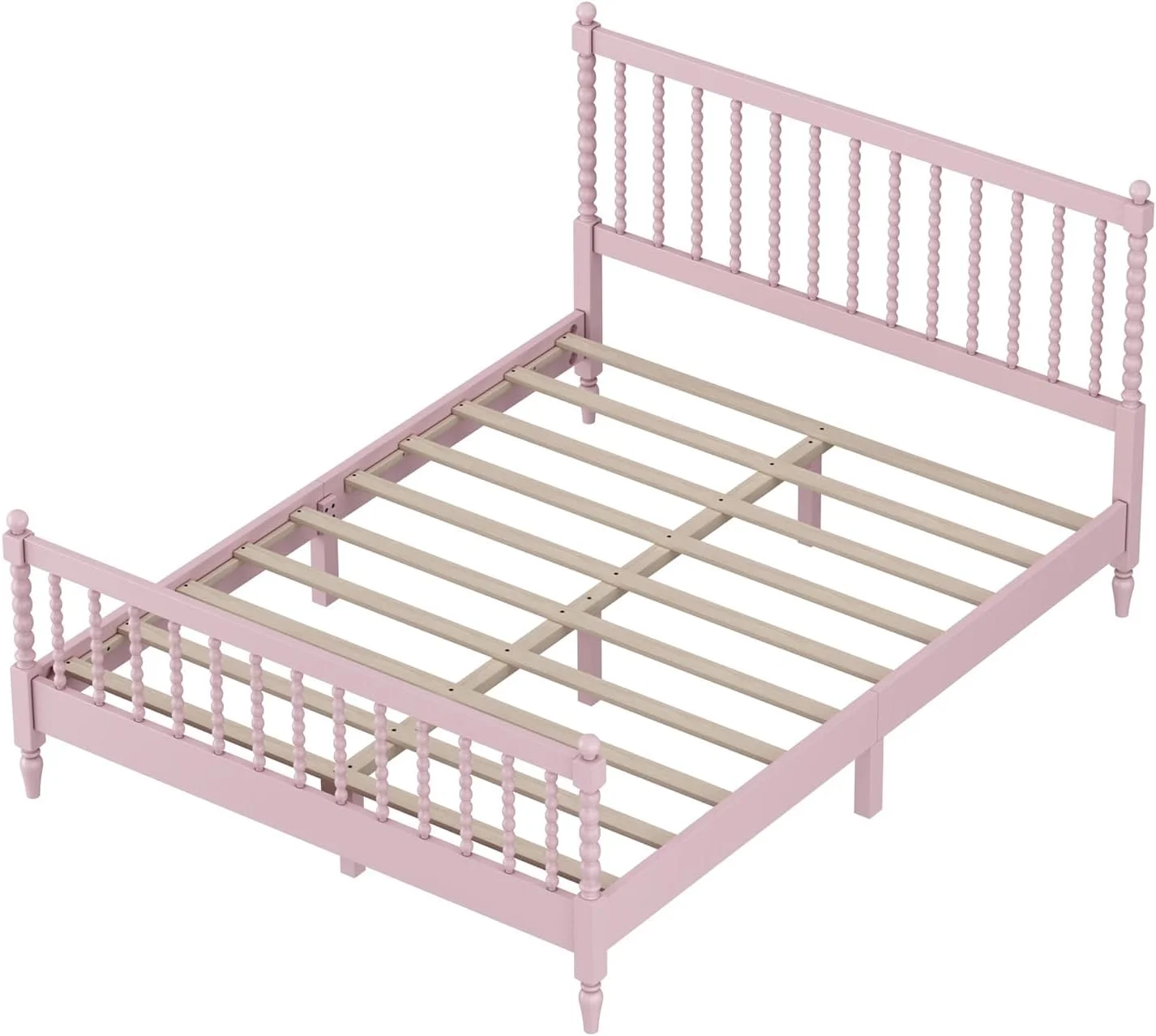 Queen Size Wood Platform Bed with Gourd Shaped Headboard and Footboard, Pink
