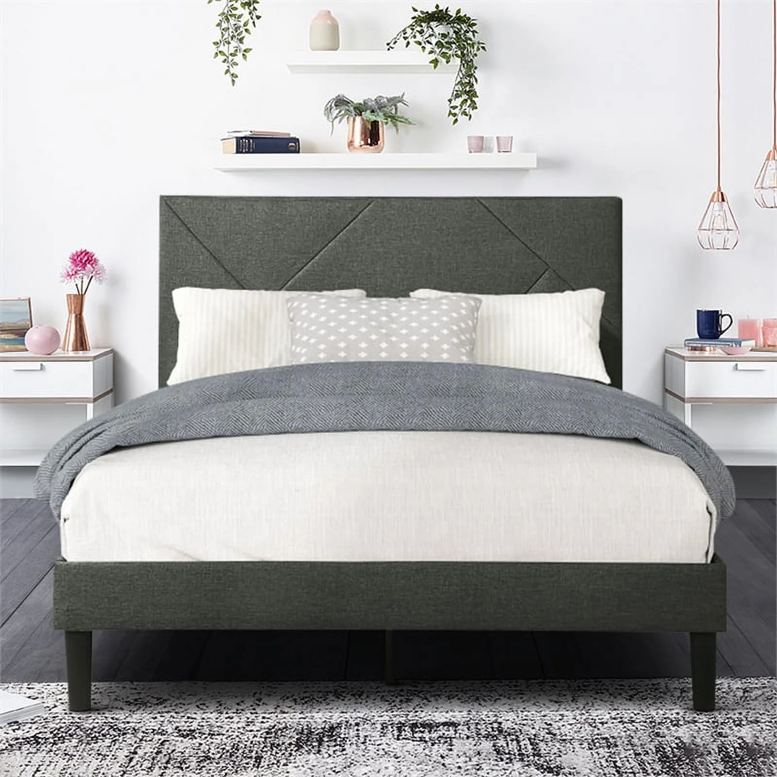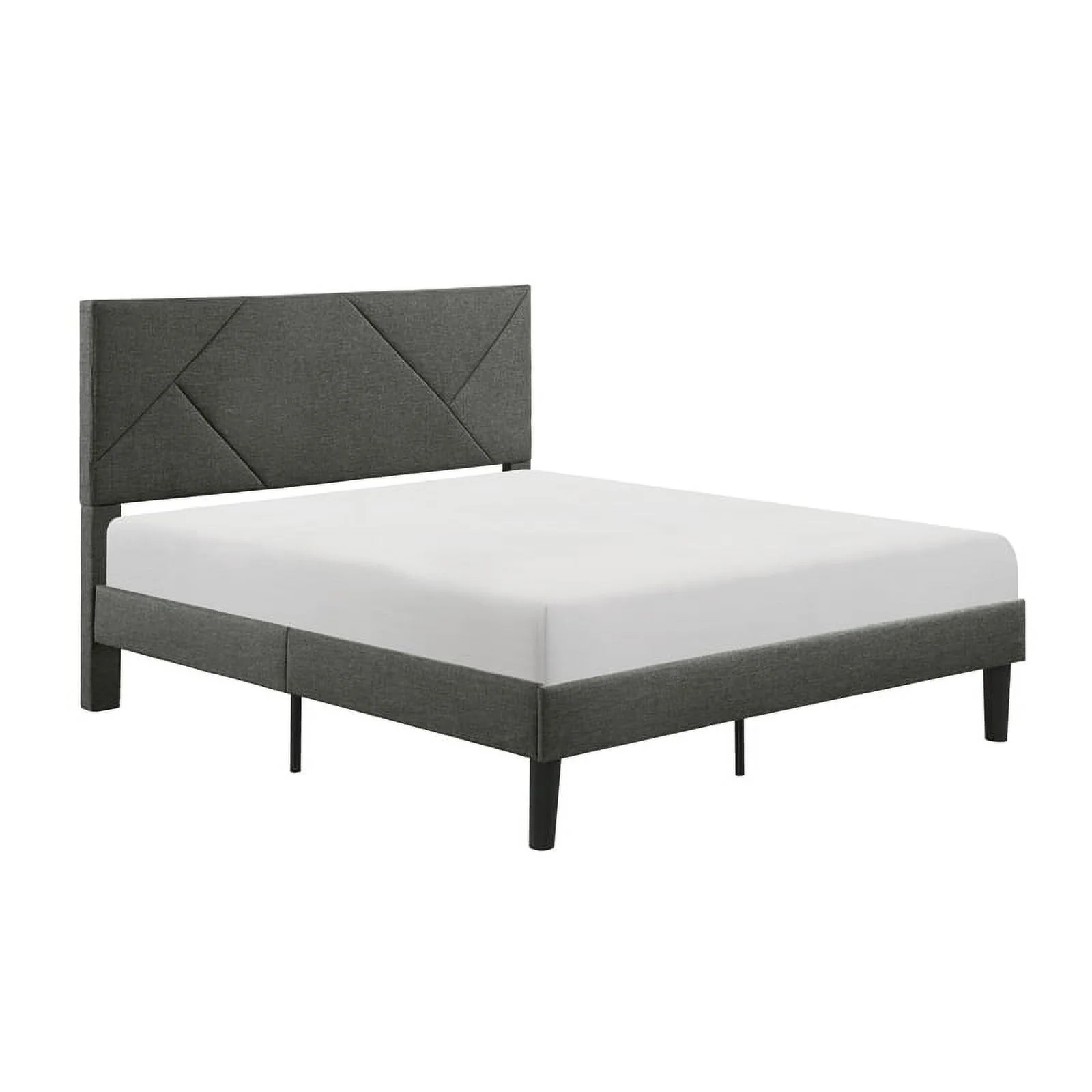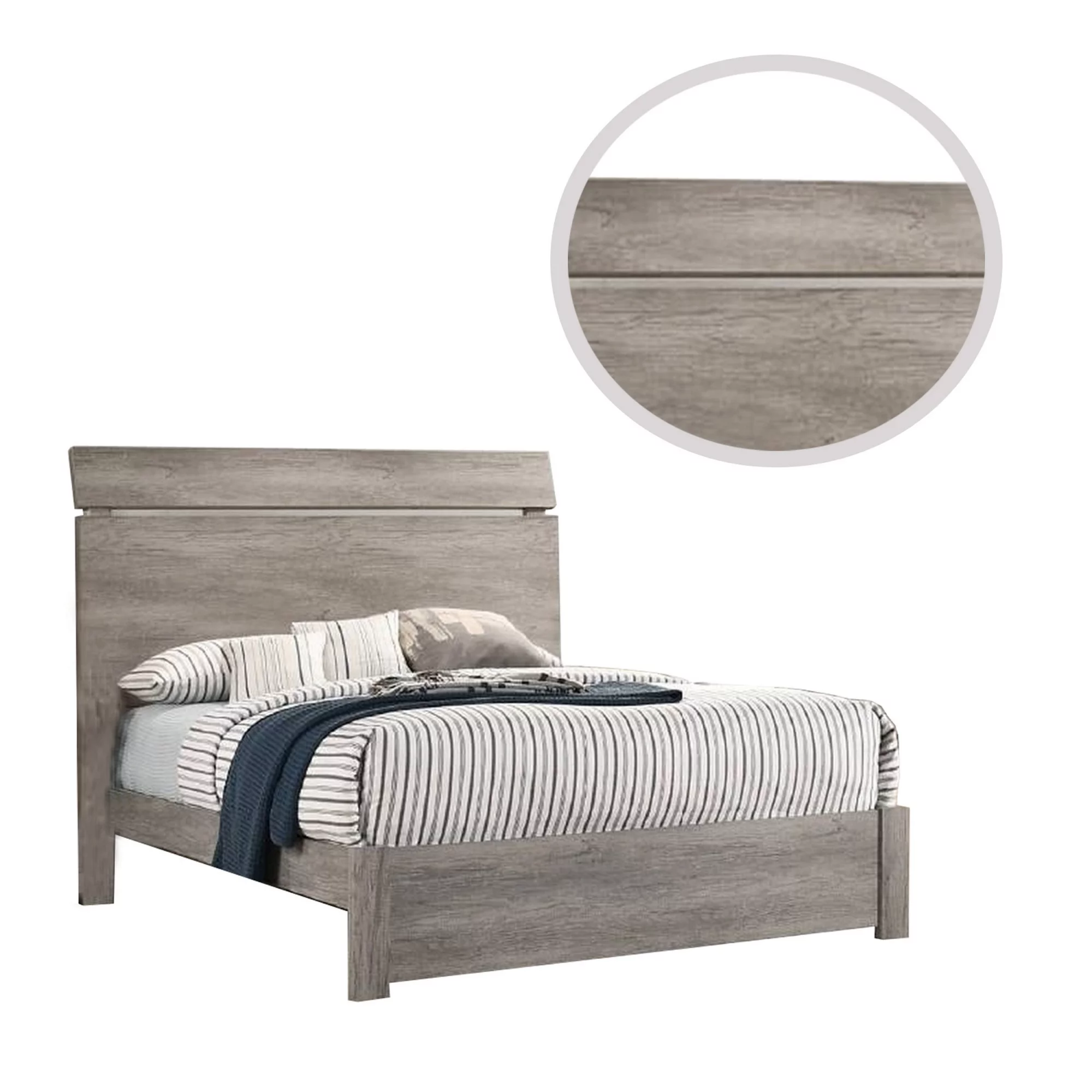 Benjara Posy Platform California King Bed, Split Headboard, Distressed Gray Wood