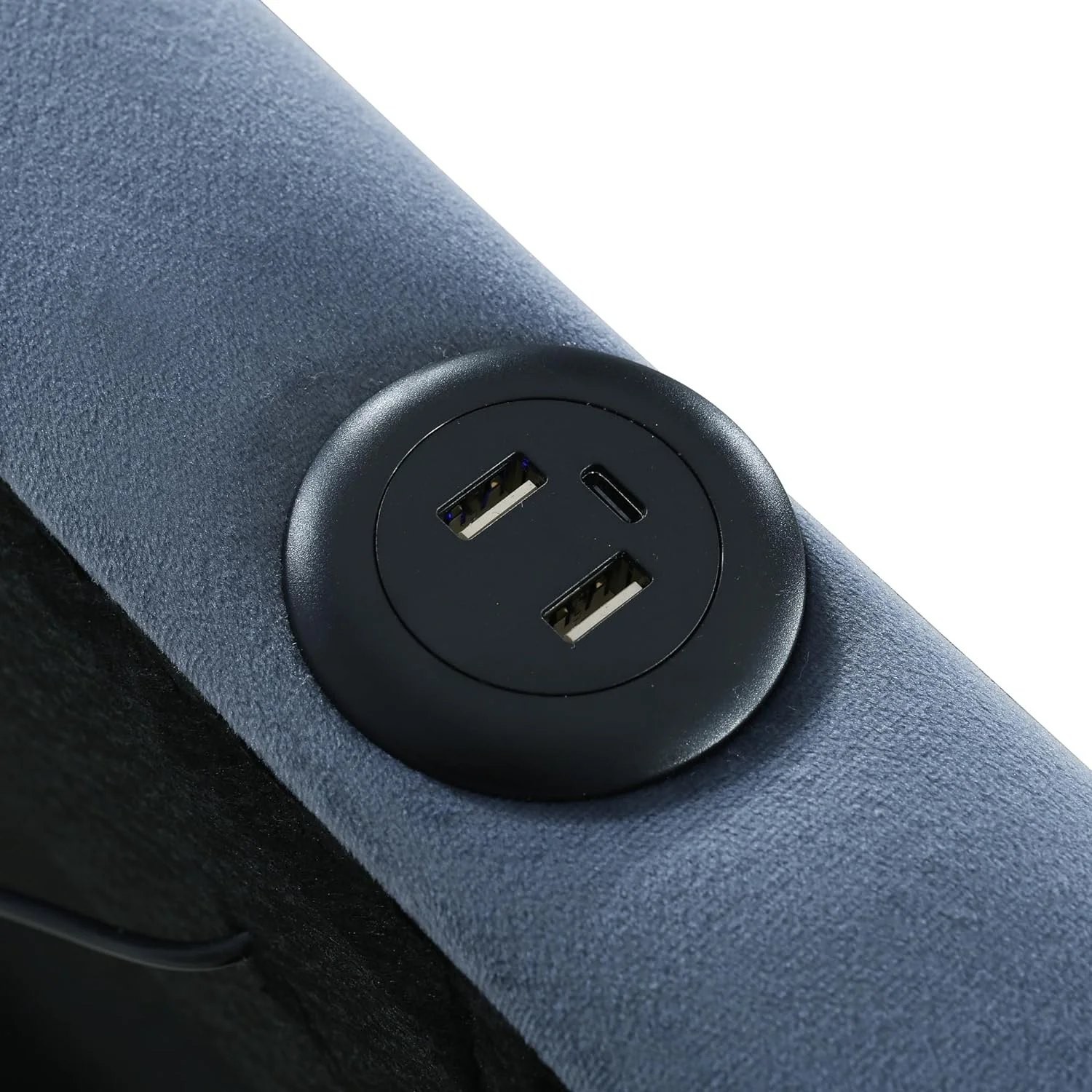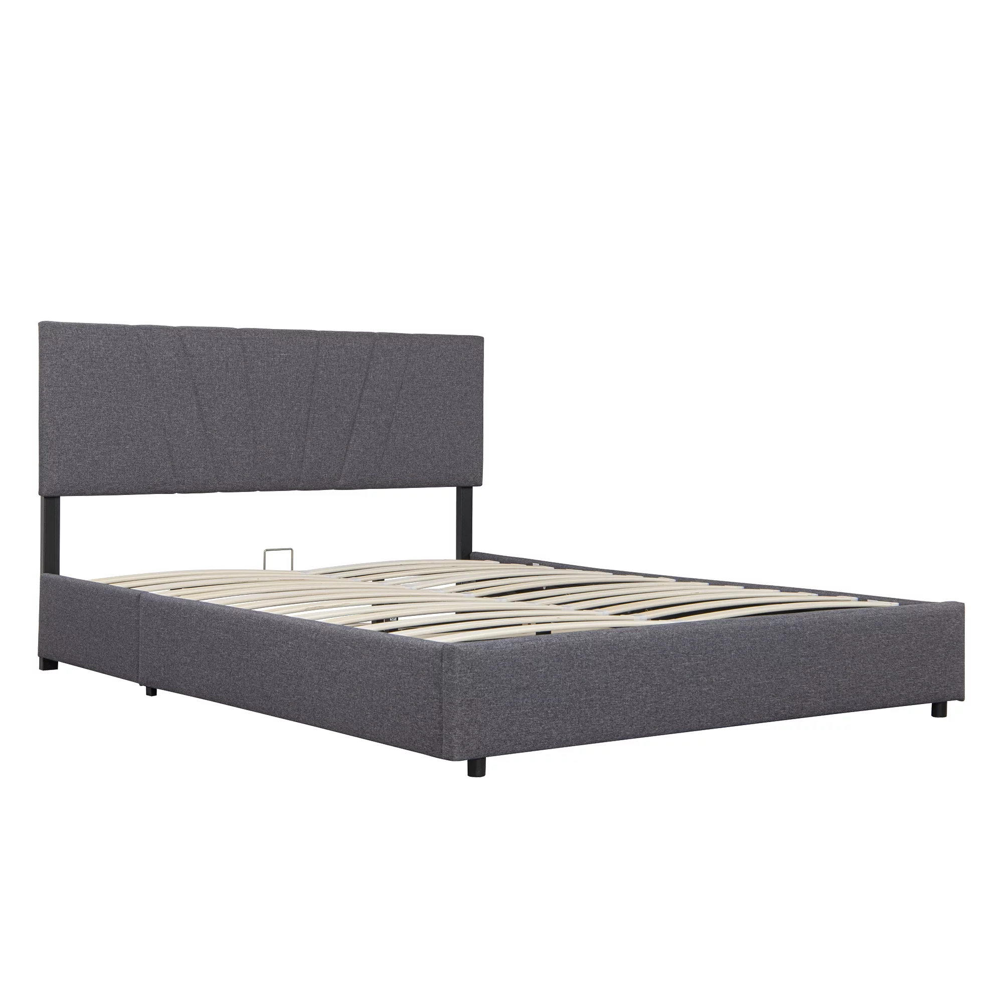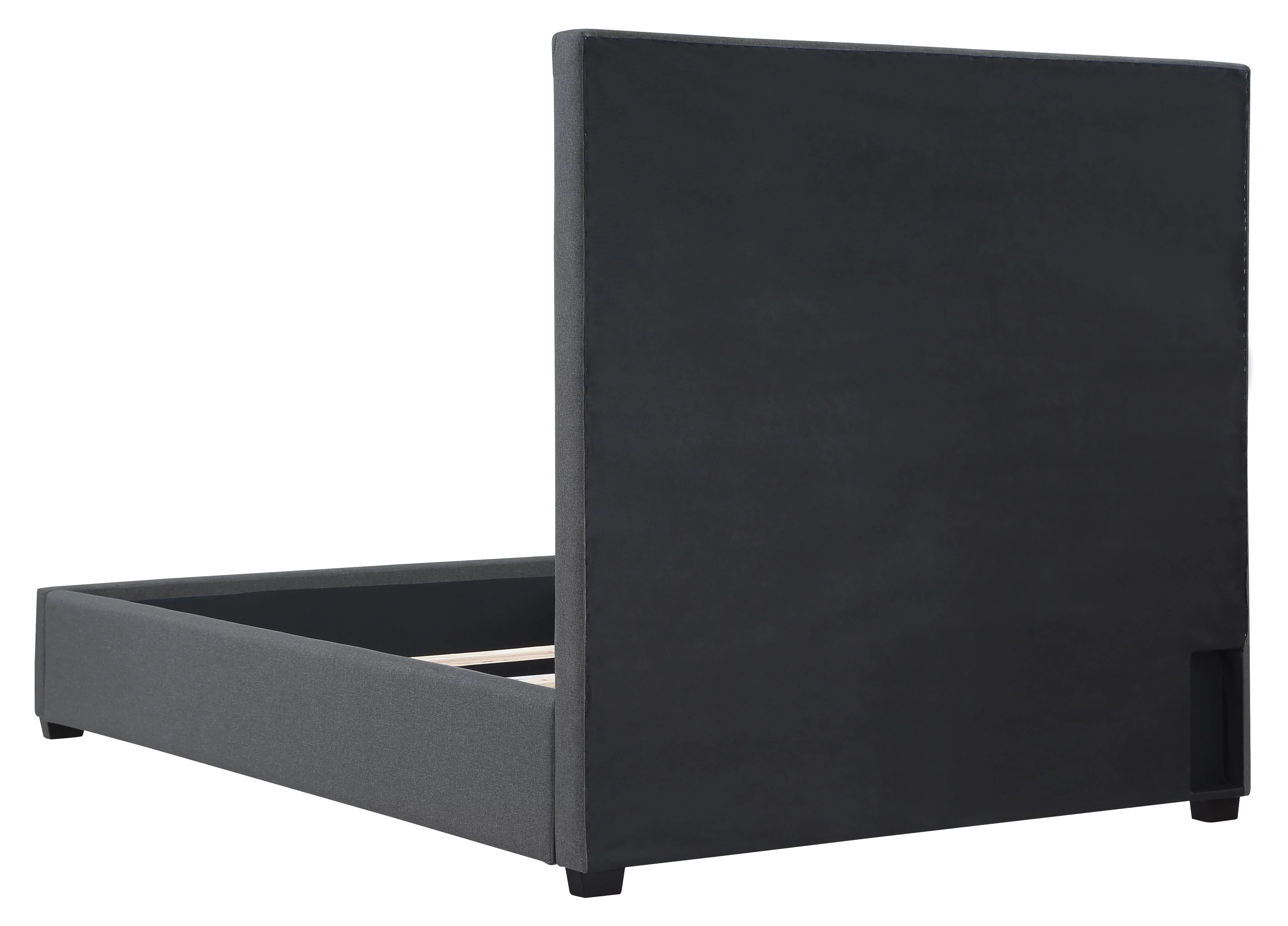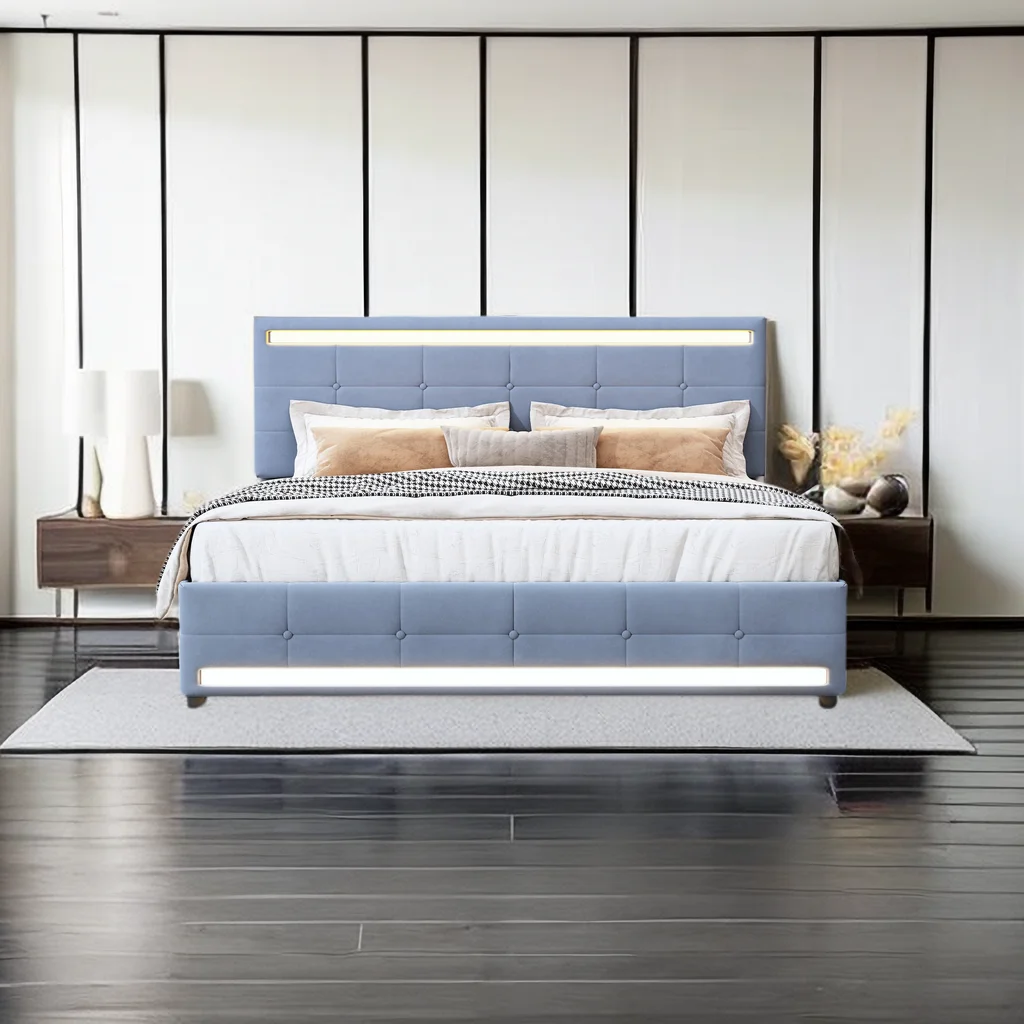 Benjara BM214065 Wooden California King Size Bed with Padded Headboard & LED Lights - Gray
