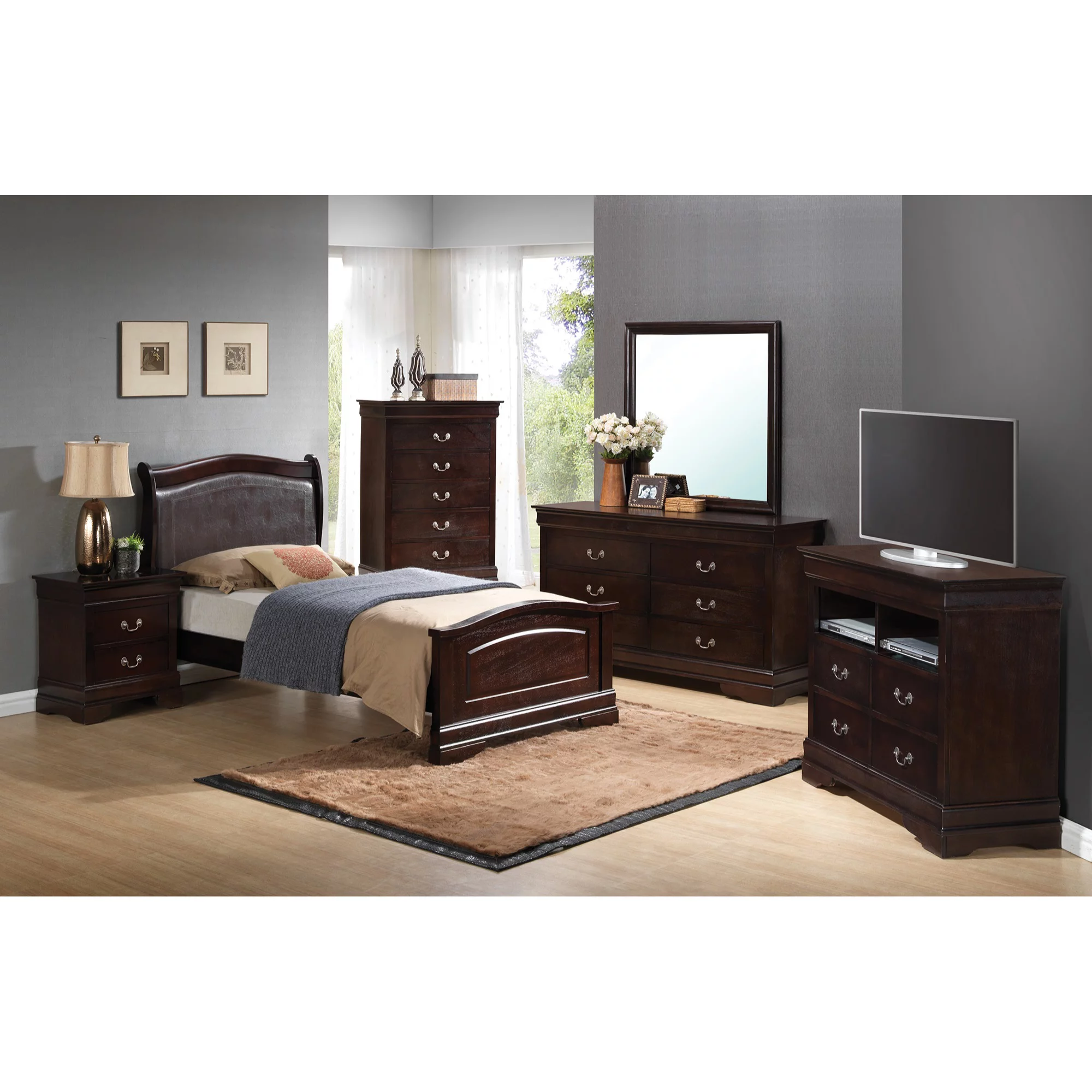 Passion Furniture Louis Philippe Cappuccino Upholstered Twin Panel Bed