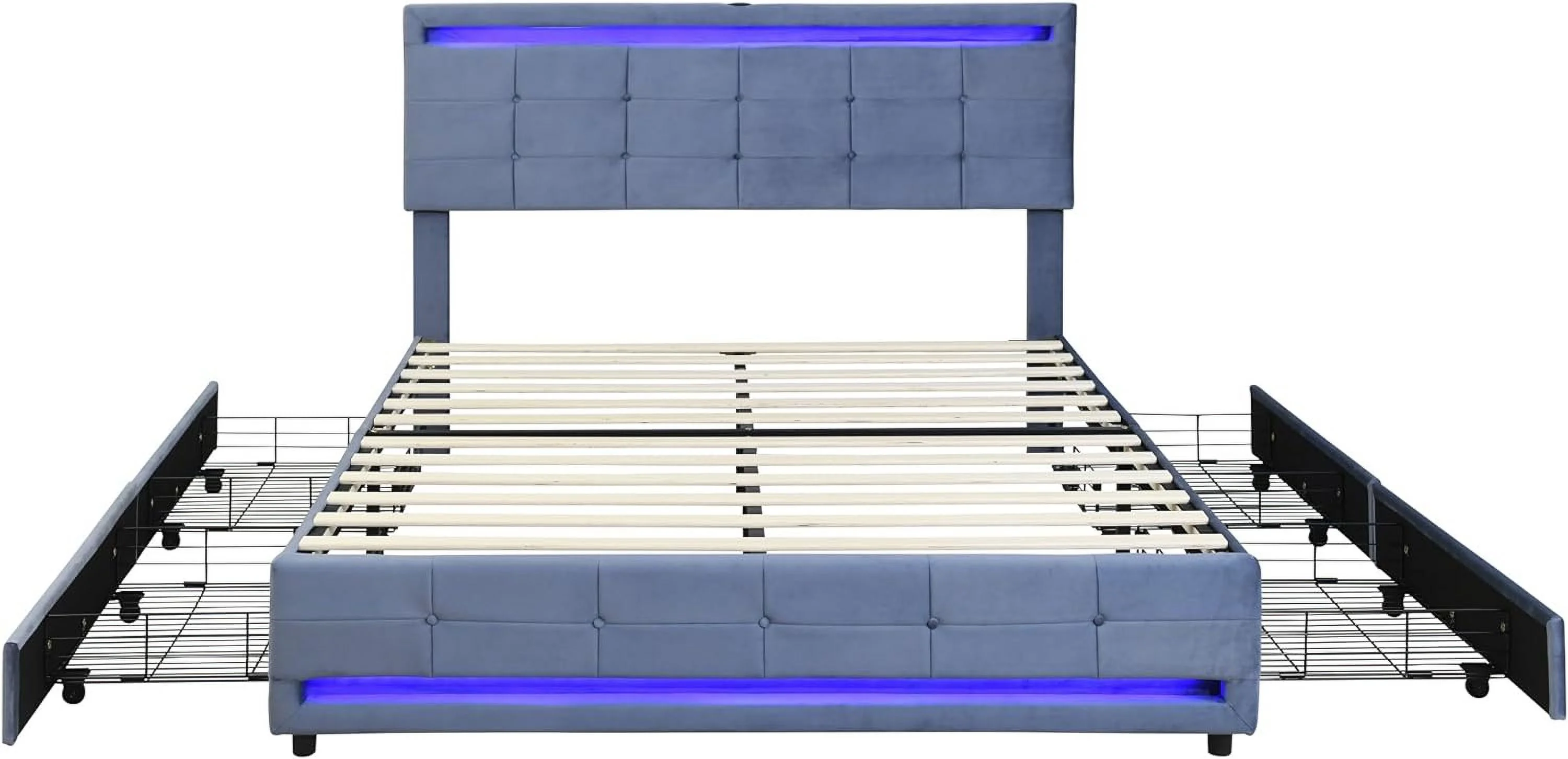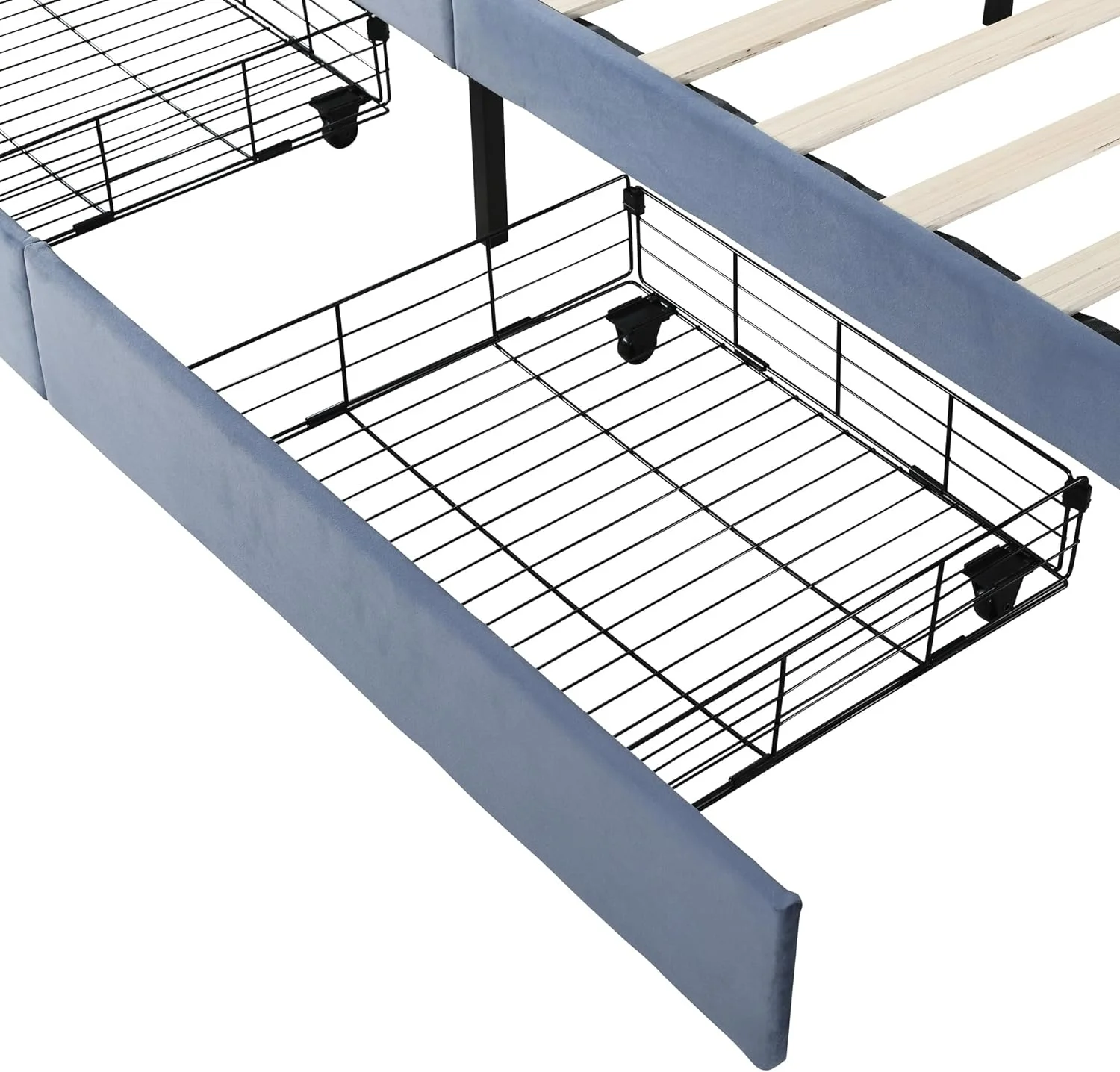 CoSoTower Queen Size Wood Platform Bed with 4 Drawers and Streamlined Headboard & Footboard, White