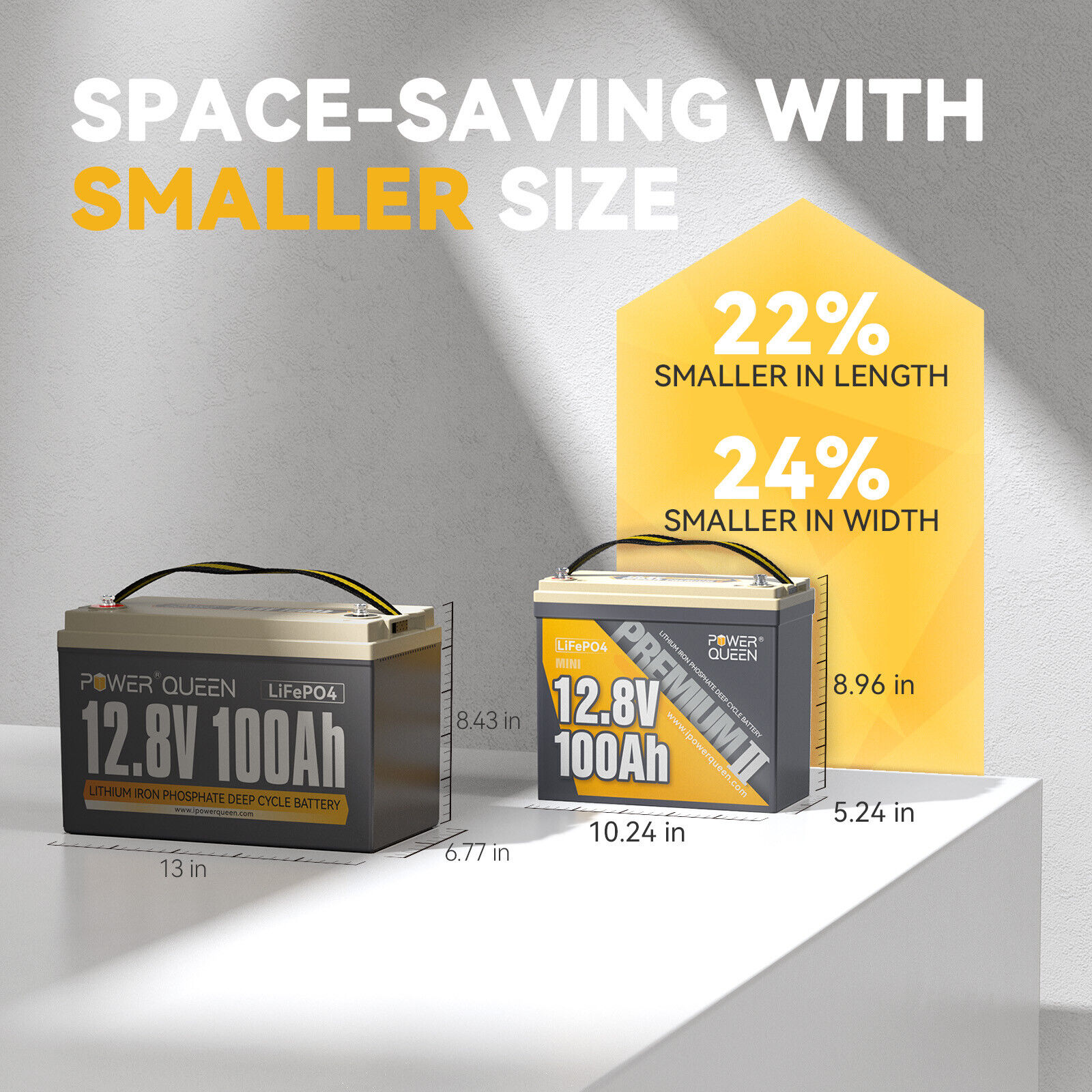 Power Queen 12V 100Ah Mini LiFePO4 Lithium Battery 1280Wh Deep Cycle For RV Trailer Solar Off-grid Trolling Motor