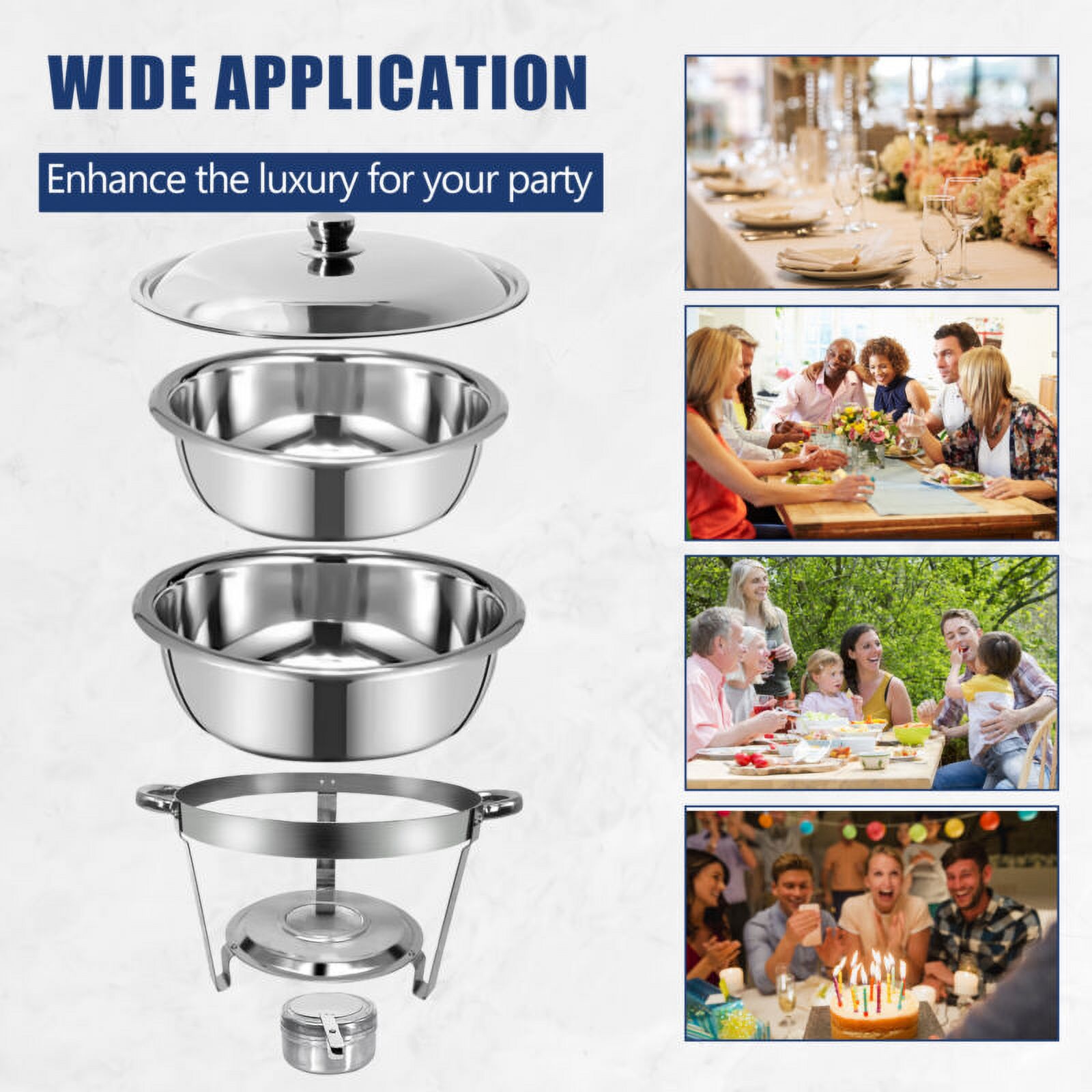 JSTUOKE Chafing Dish Set 10 Pack,2 Full Pan+4 1/3 Pan Rectangular 8QT +4 Round 5QT for Catering Party Festival