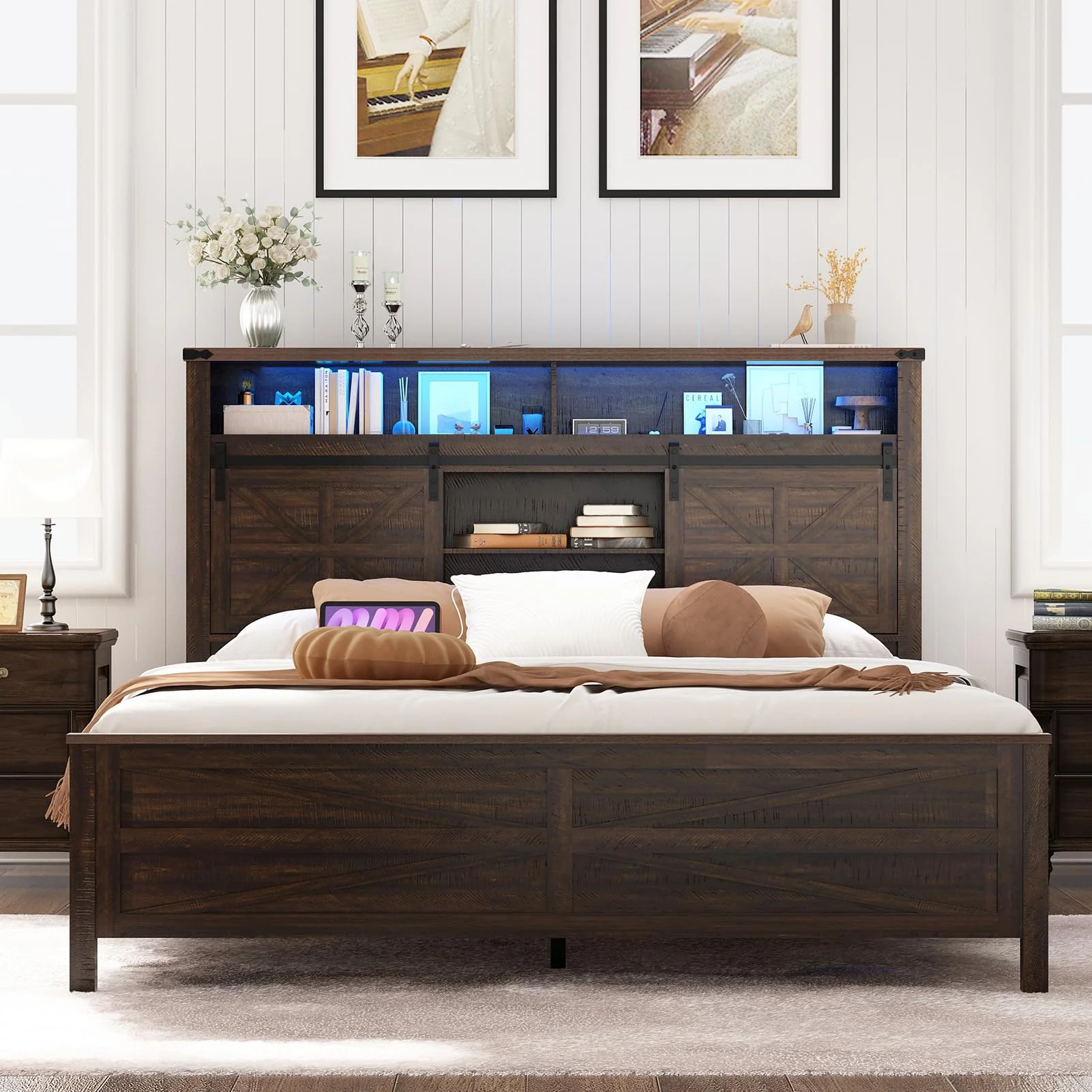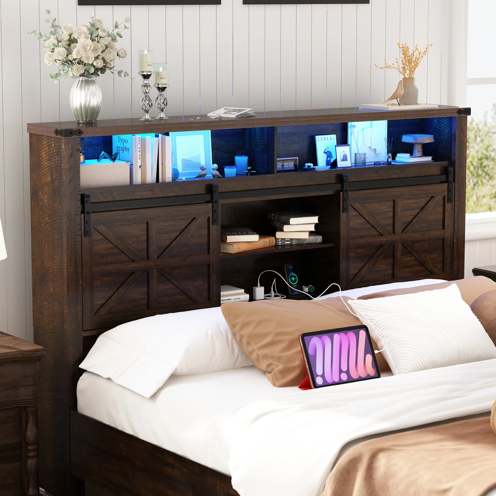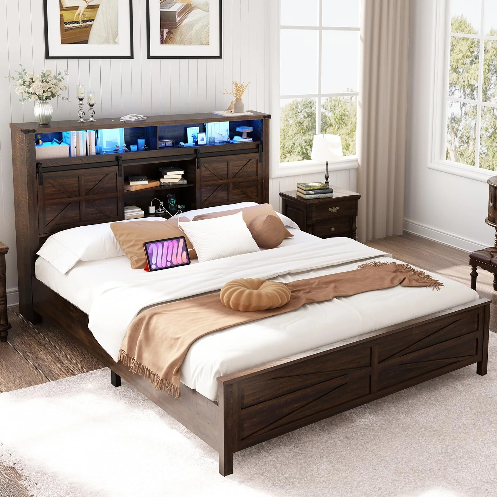 Afuhokles Full Bed Frame with Charging Station, Headboard Storage and 2 Drawers LED Lights, Dark Gray