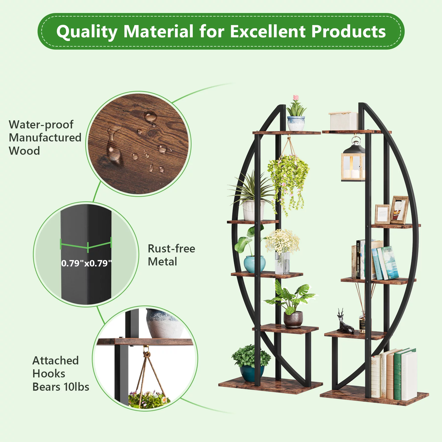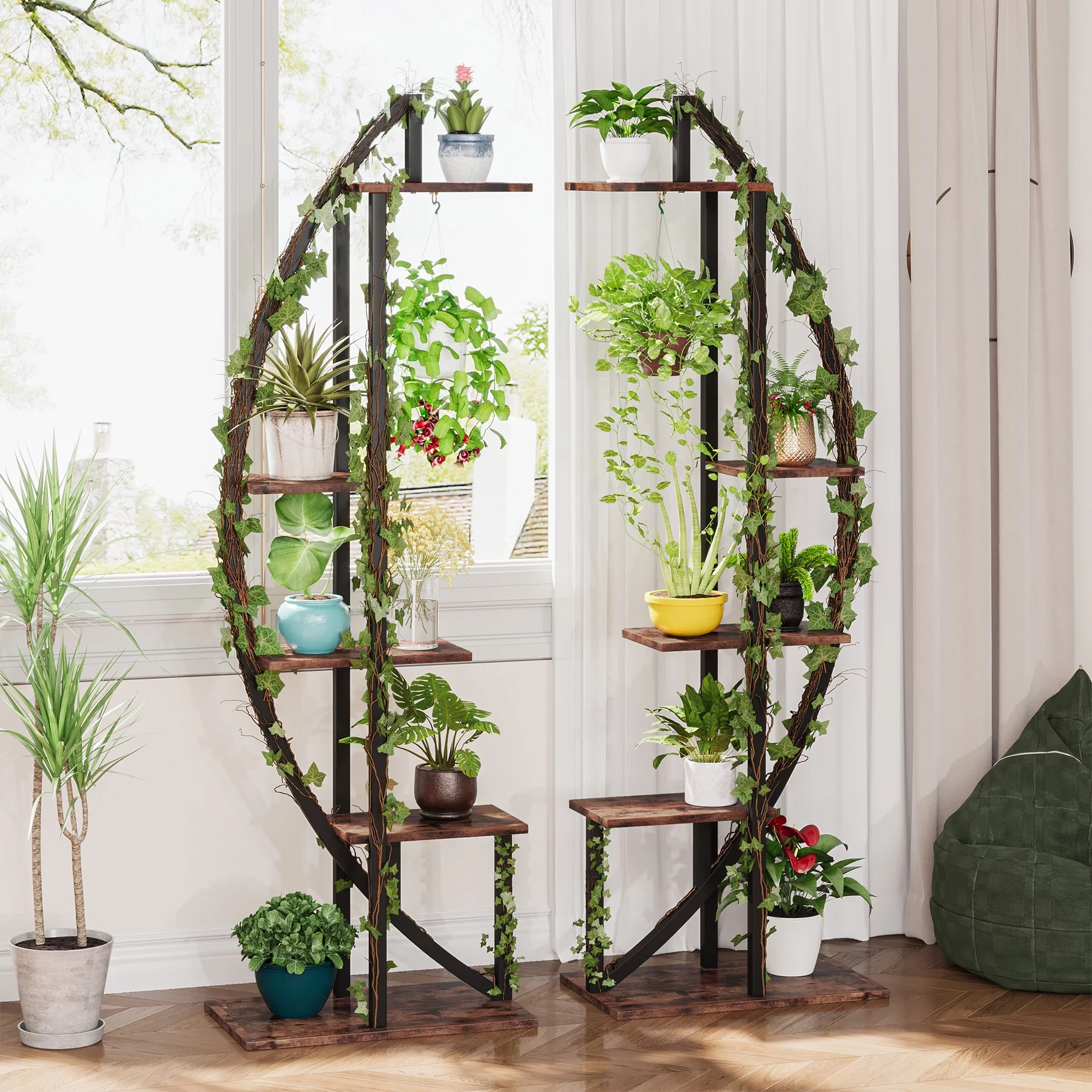 TribeSigns 63" x 20" x 12" 5 Tier Brown Wood Modern Plant Stand (2 Pack)