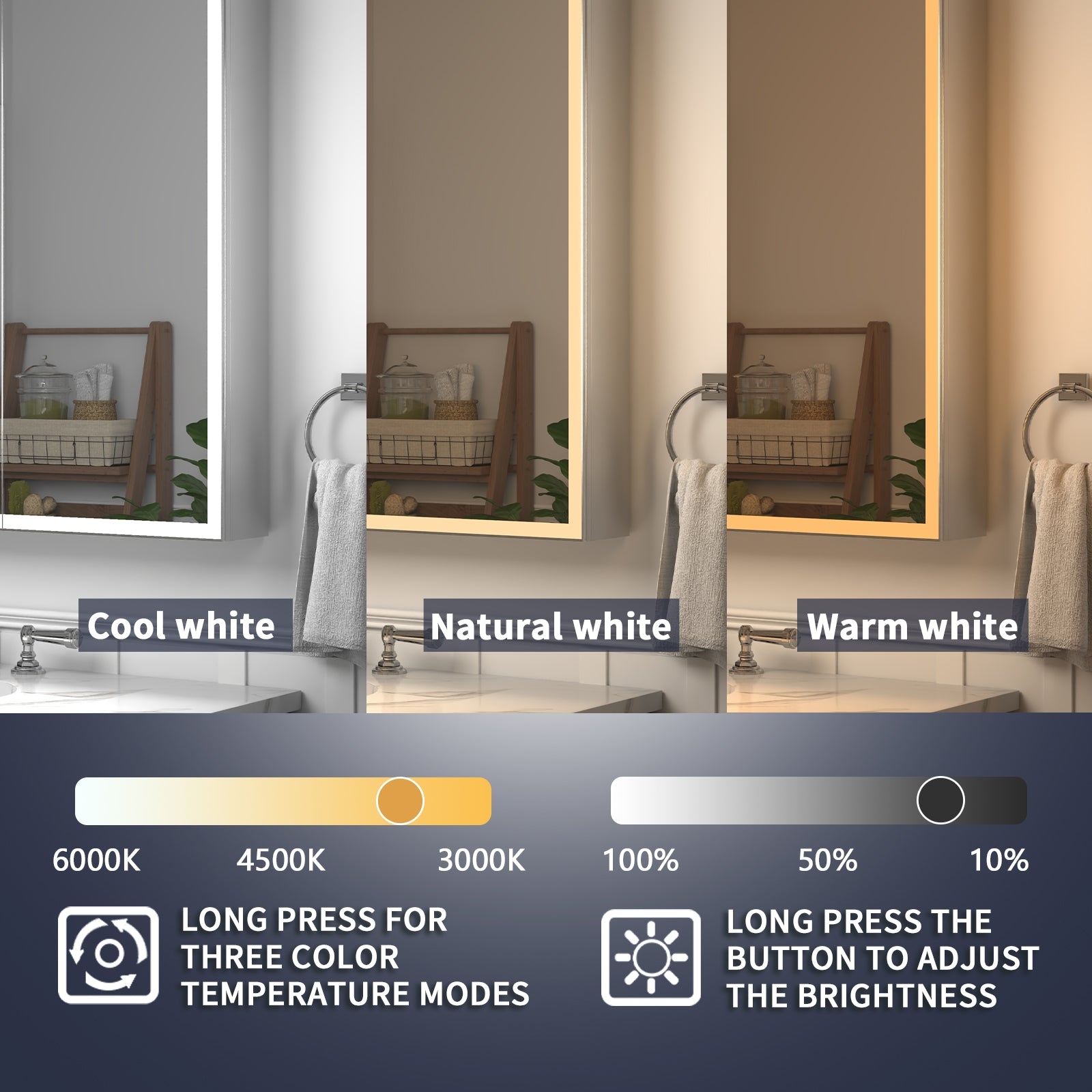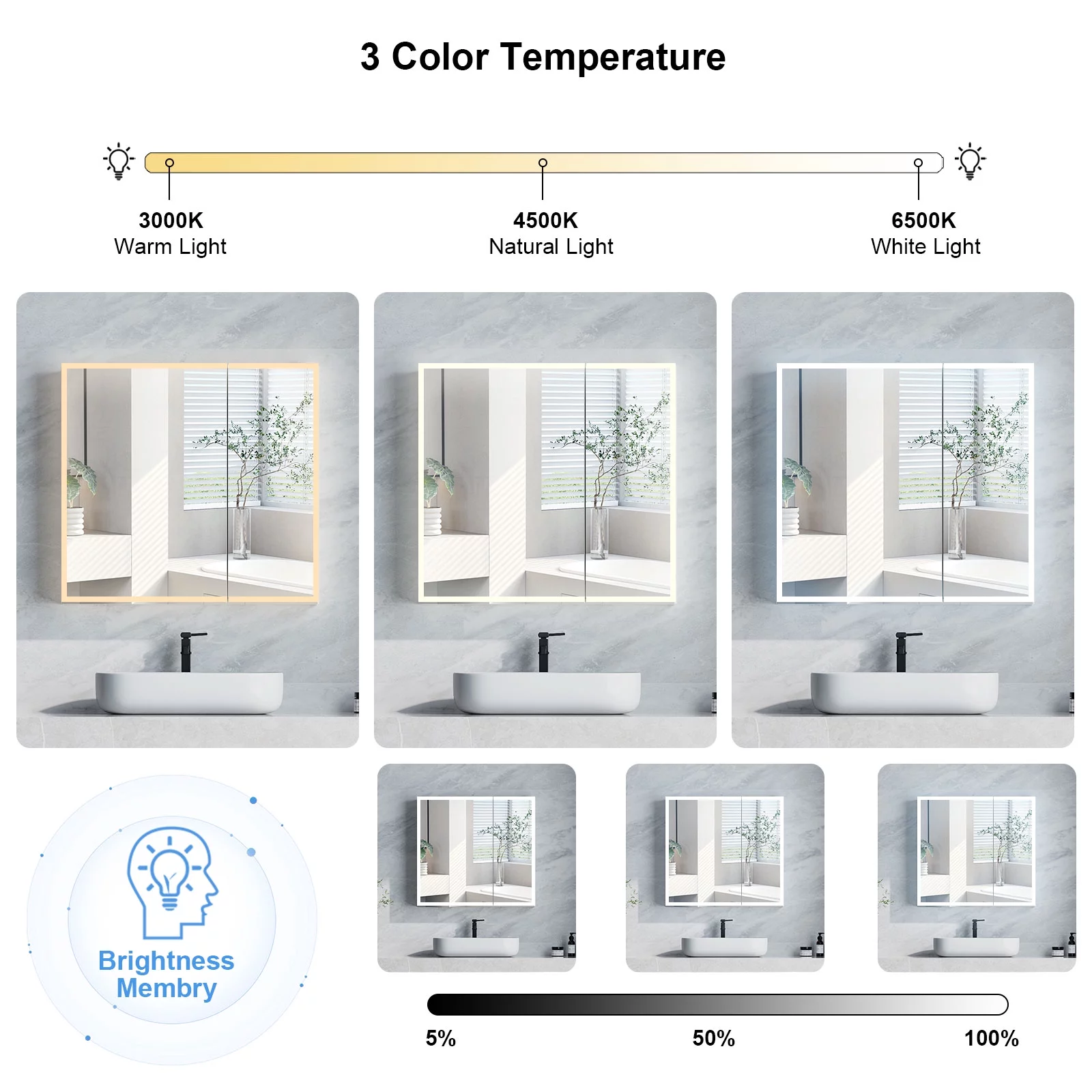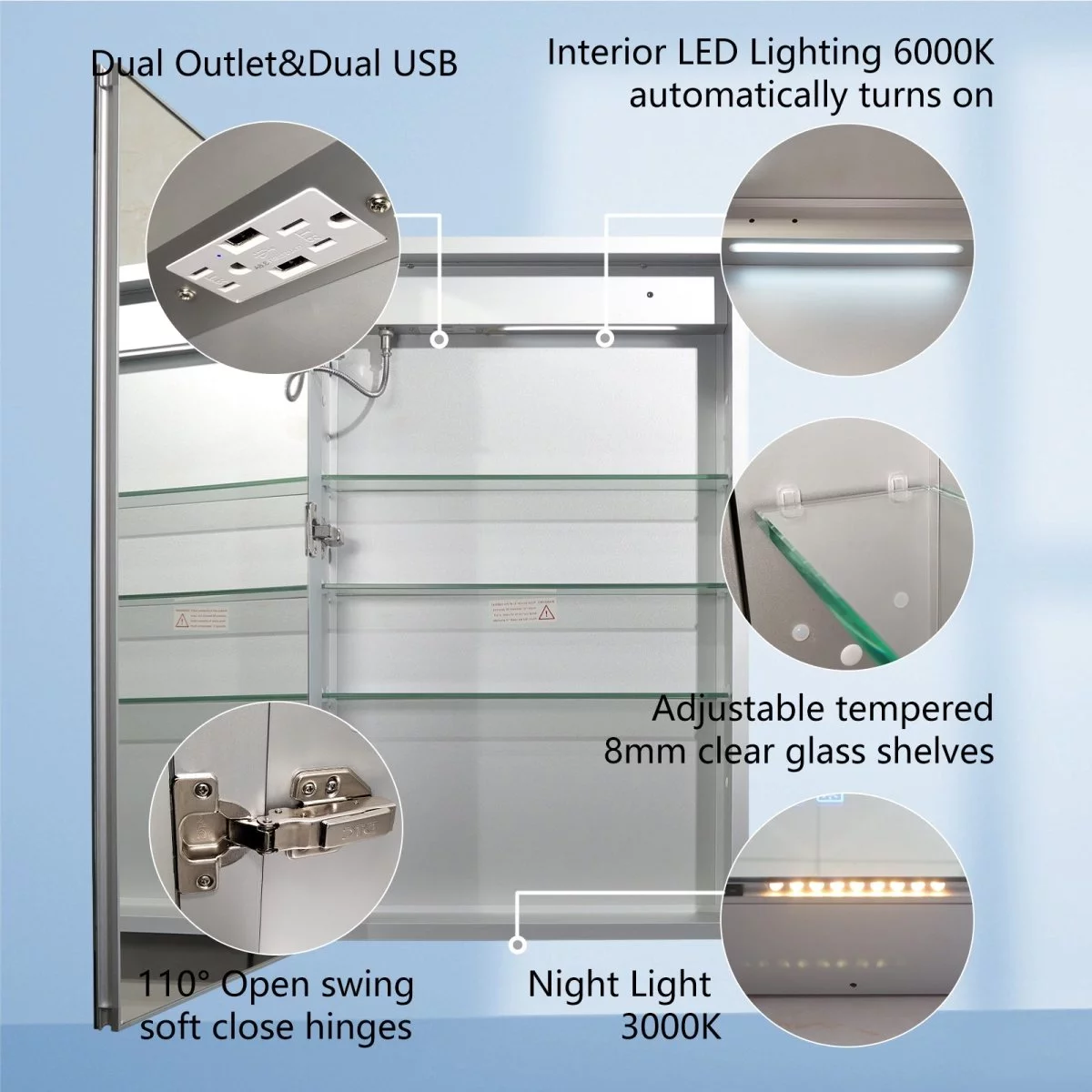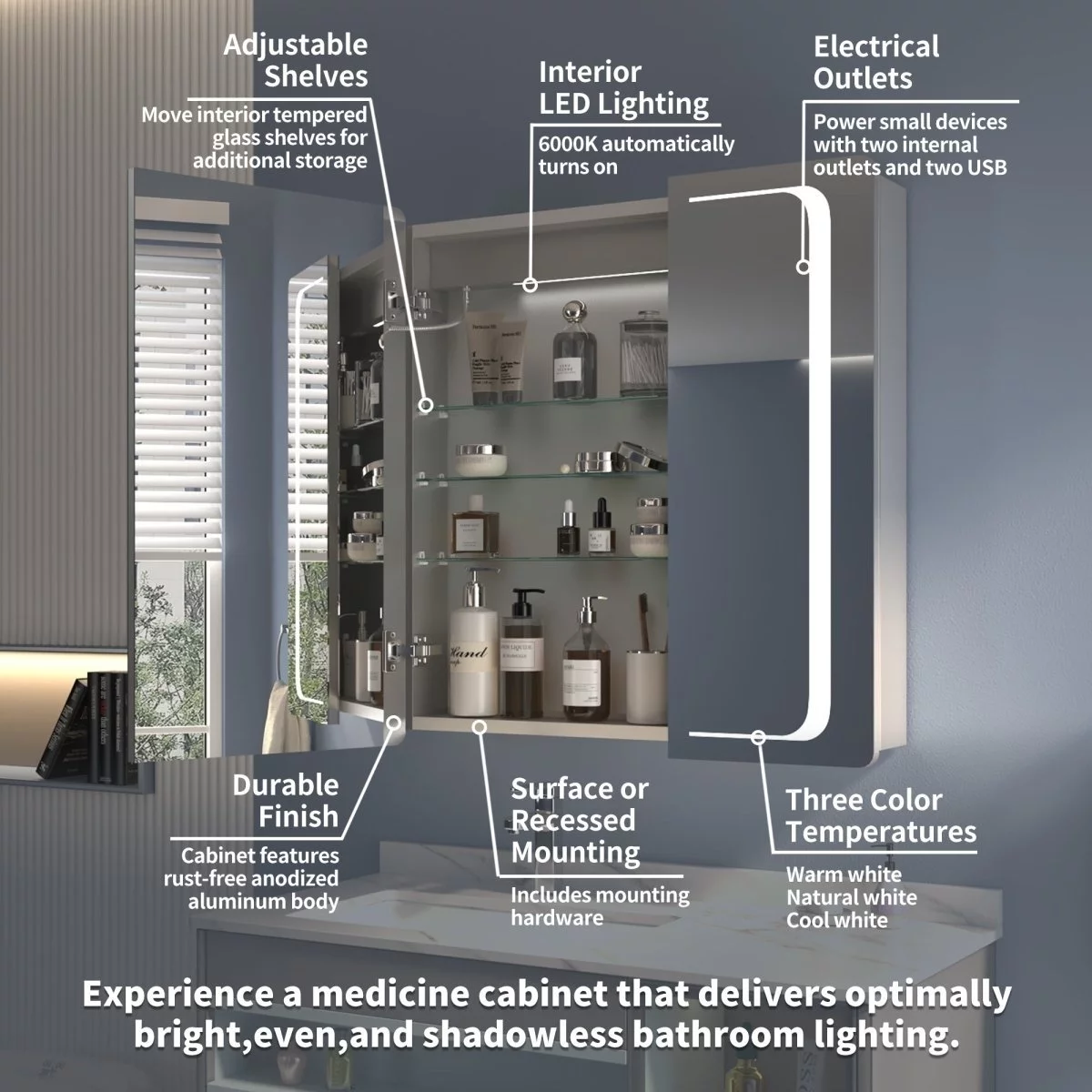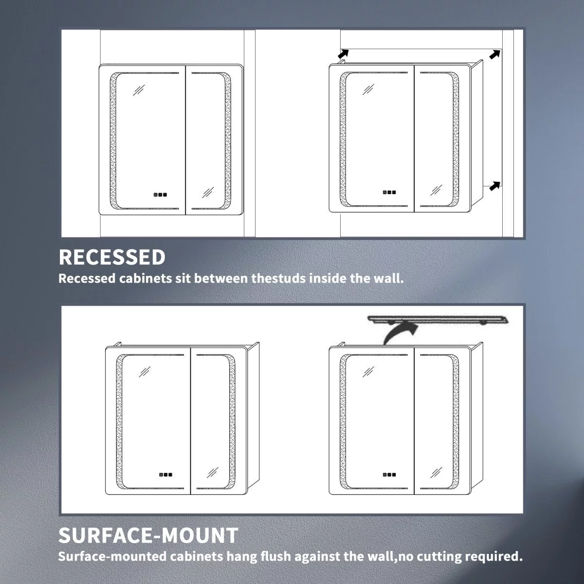ExBrite 30" W x 32" H LED Lighted Bathroom Medicine Cabinet with Mirror Recessed or Surface Mounted LED Medicine Cabinet